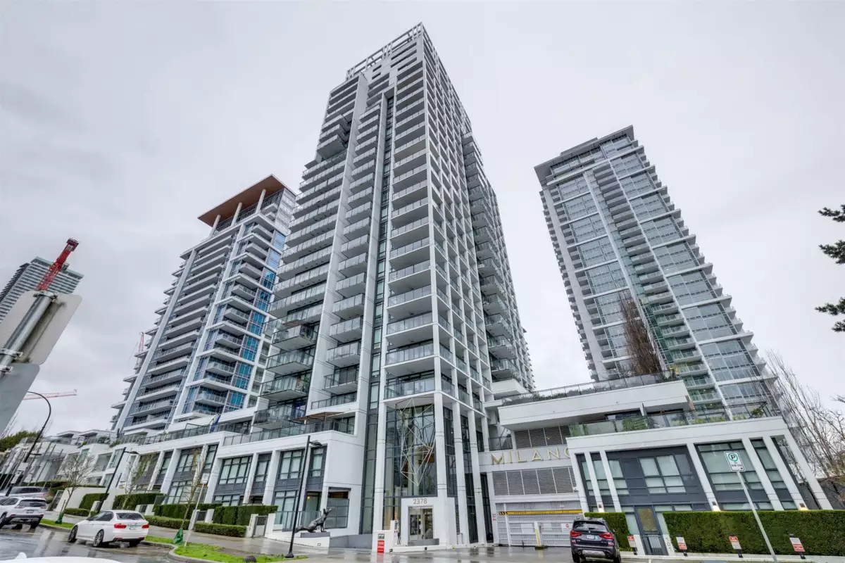 Welcome to this mint-condition home at the Milano by Solterra! This spacious 860 sq-ft 2 bed, 2 bath corner-unit features central air-conditioning, high-end stainless steel appliances, extra high floor-to-ceiling windows showcasing city and mountain views, and a large 213 sq ft wrap around balcony. 1 extra-large parking & 1 storage locker are included. Just steps away from the Amazing Brentwood shopping mall and Skytrain Millennium Line with lots of shopping, restaurants, Whole Foods, Costco, and over 60 brand name stores nearby. Amenities include a rentable guest suite, recreation room with kitchen, stylish lounge areas, game room, an outdoor courtyard with a putting green, fitness center, hot tub and 8 EV charging stations. OPEN HOUSE: Mar 7, Sat, from 2pm to 4pm