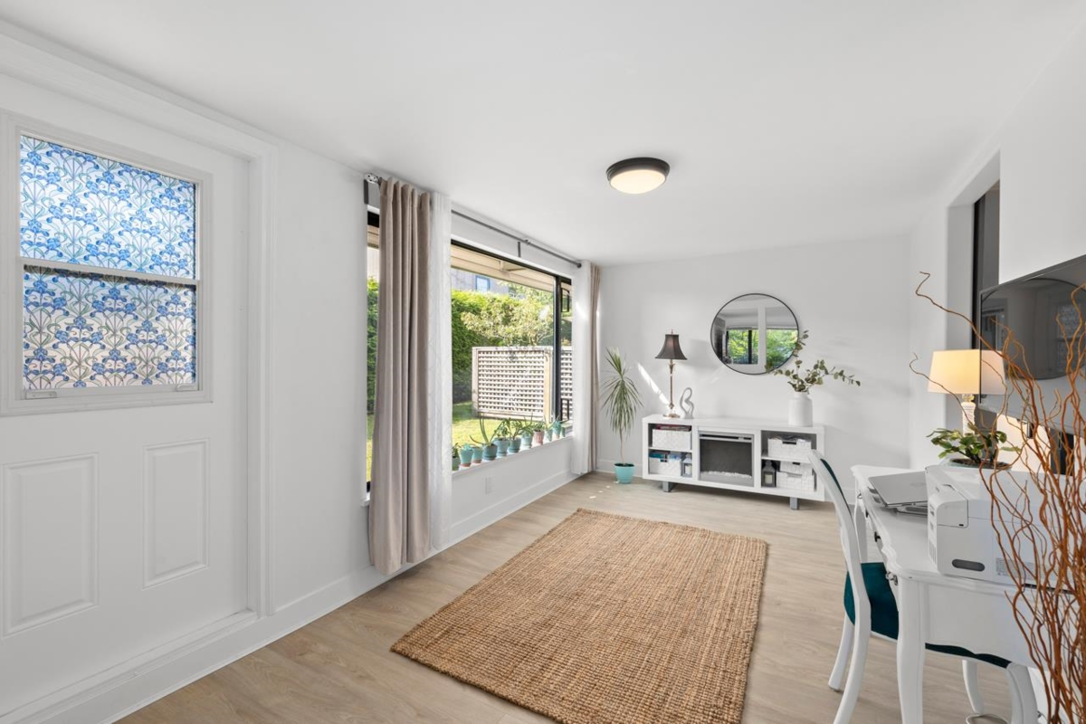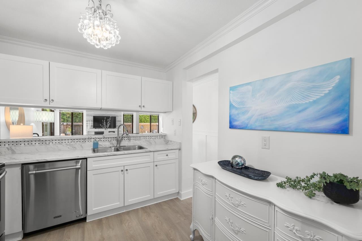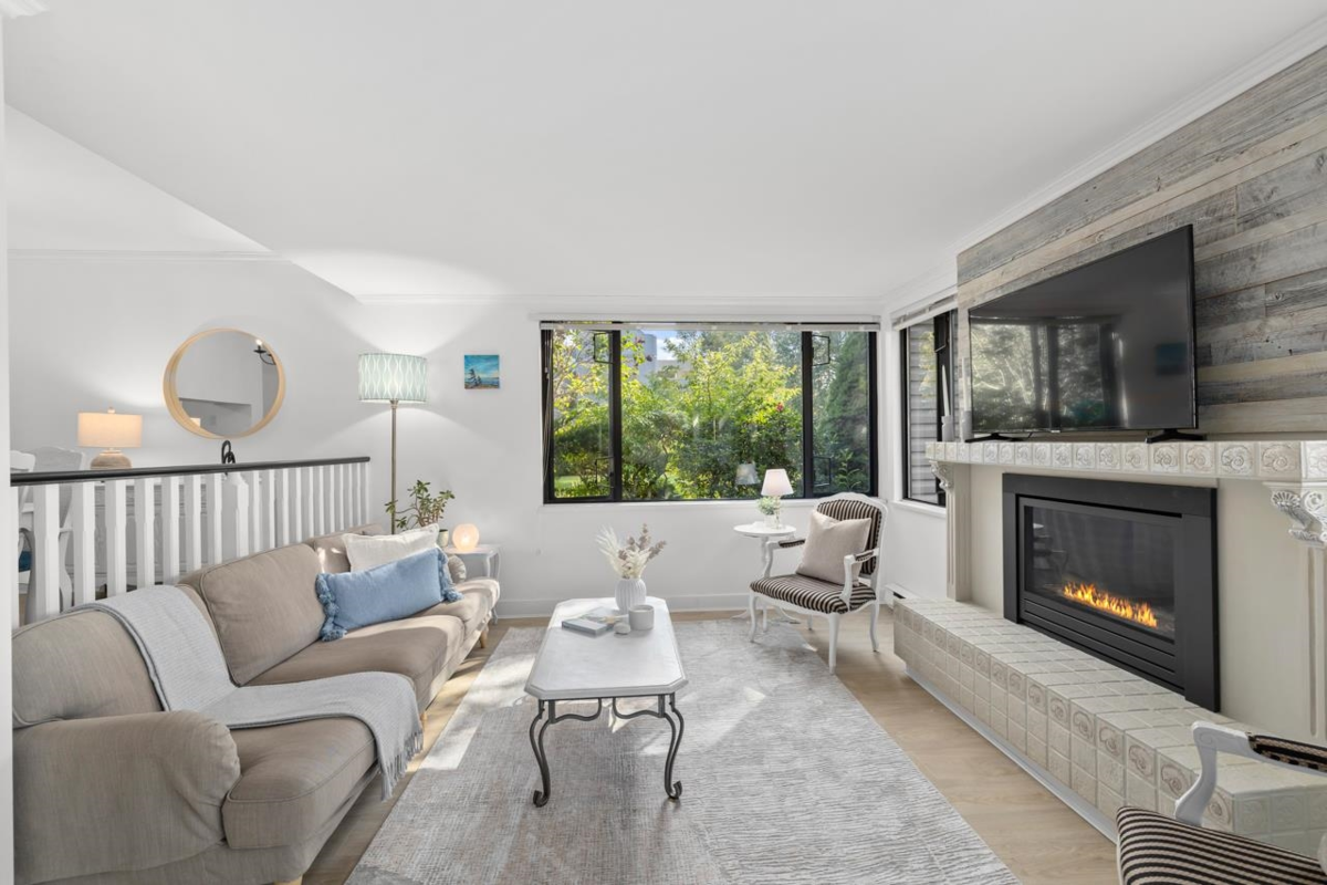 Welcome to Village Terrace, offering a beautifully renovated condo in an amazing location. This bright and open condo features a spacious, updated kitchen with ample storage and an adjoining pantry. The unit offers two generously sized bedrooms with California Closets along with a bonus flex room perfect for a home office. A large laundry room with extra storage adds to the convenience. Enjoy the natural light that floods the main living room from its southwest exposure. This cozy space also includes a new gas fireplace and luxury vinyl plank flooring. Step outside onto your huge, private, and quiet 300sqft patio—perfect for relaxing and entertaining. Located in a prime South Surrey neighborhood, just steps away from restaurants, Bakerview Park, Semiahmoo Shopping Mall and White Rock Beach