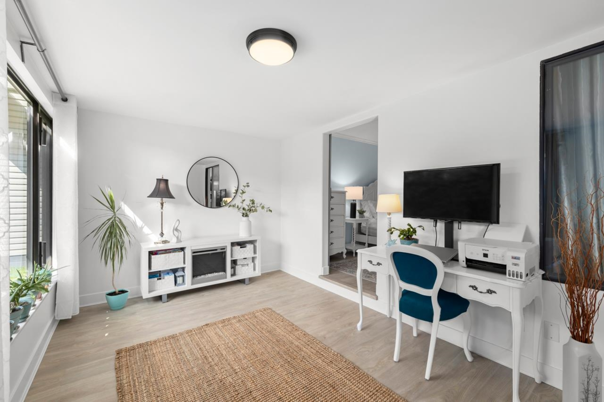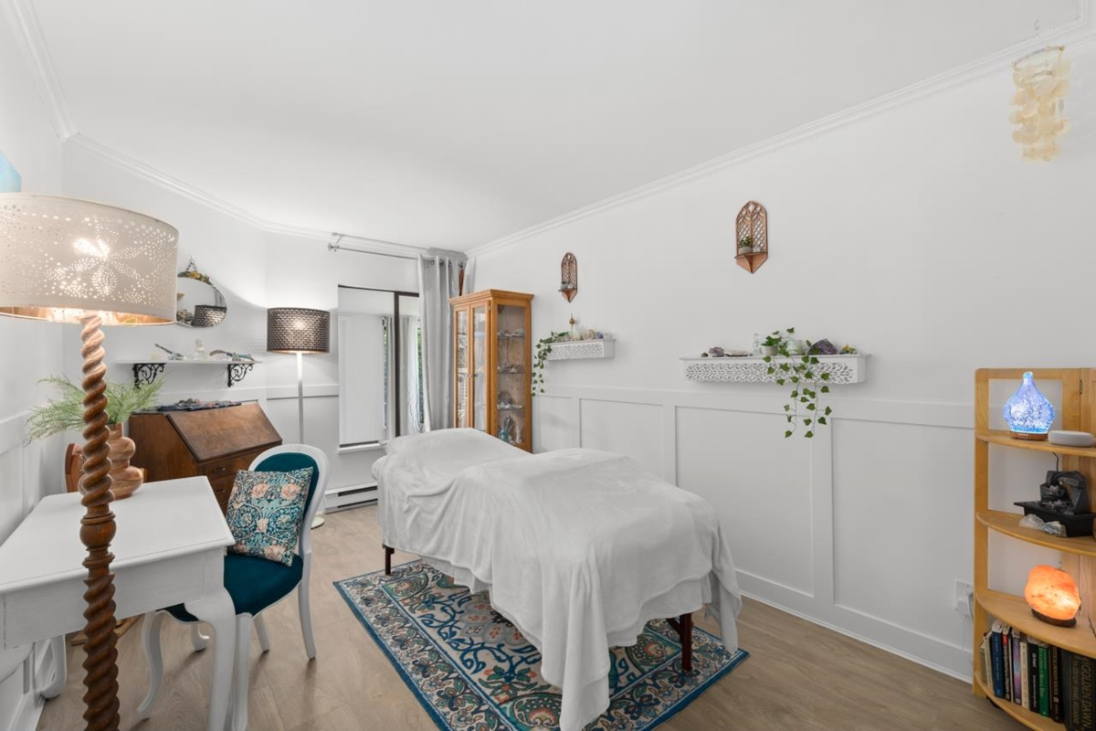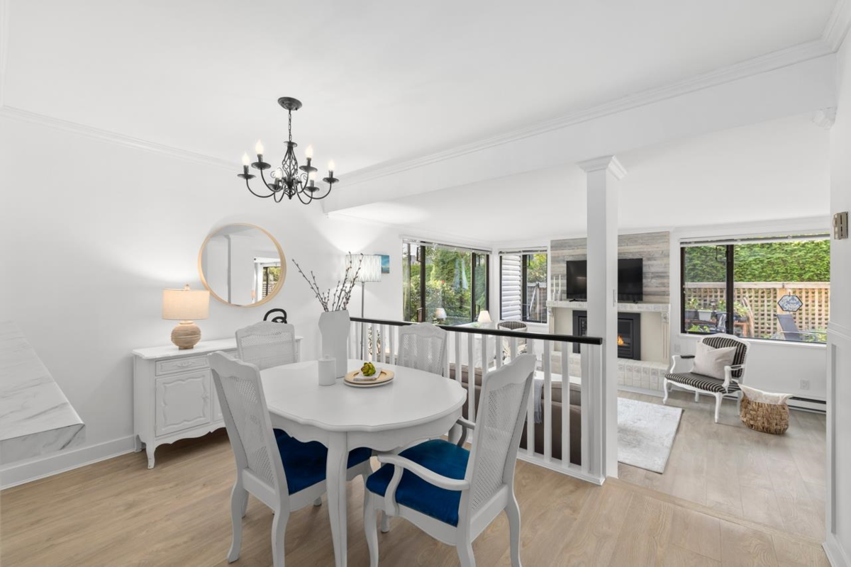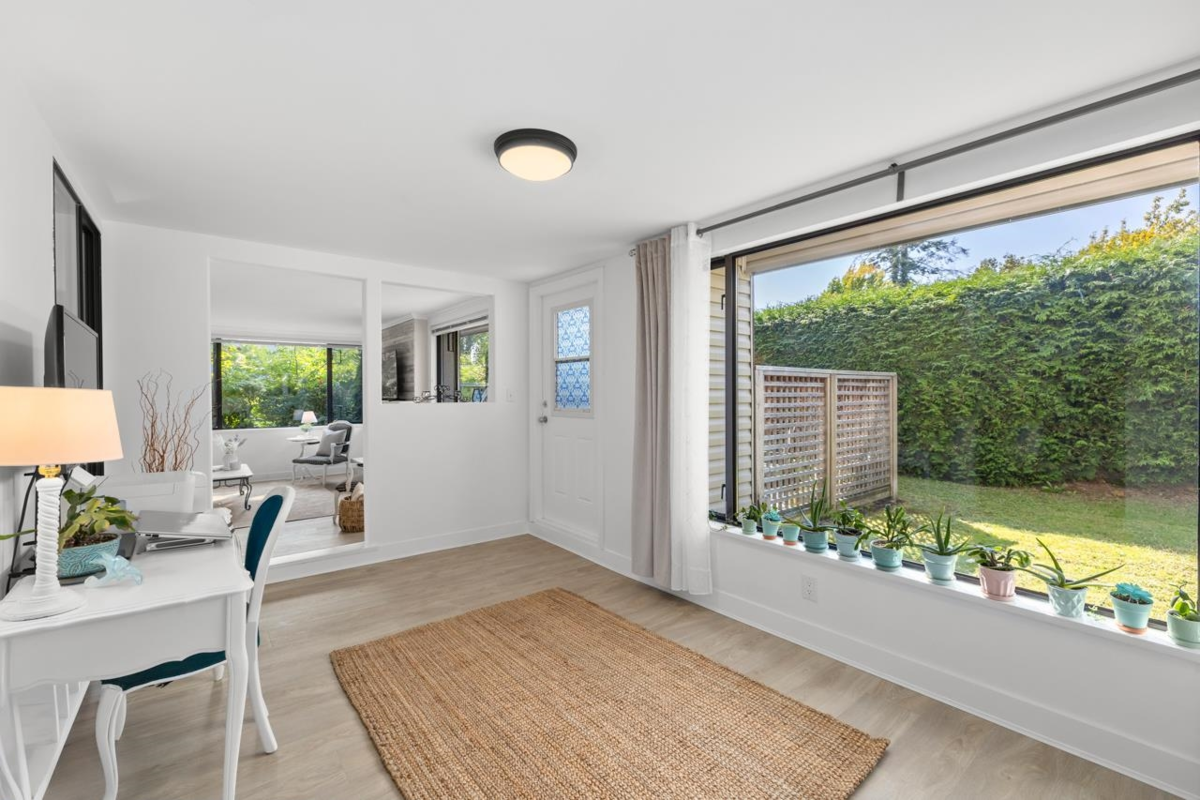 Welcome to Village Terrace, offering a beautifully renovated condo in an amazing location. This bright and open condo features a spacious, updated kitchen with ample storage and an adjoining pantry. The unit offers two generously sized bedrooms with California Closets along with a bonus flex room perfect for a home office. A large laundry room with extra storage adds to the convenience. Enjoy the natural light that floods the main living room from its southwest exposure. This cozy space also includes a new gas fireplace and luxury vinyl plank flooring. Step outside onto your huge, private, and quiet 300sqft patio—perfect for relaxing and entertaining. Located in a prime South Surrey neighborhood, just steps away from restaurants, Bakerview Park, Semiahmoo Shopping Mall and White Rock Beach