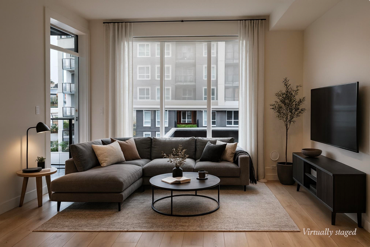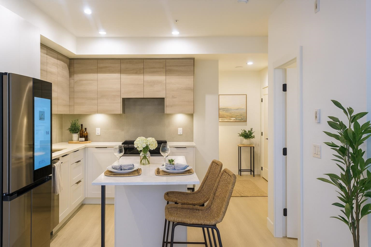 Welcome to Highstreet Village—Abbotsford’s newest master-planned community! This modern 1-bed, 1-bath home offers bright, open-concept living with a designer kitchen featuring a gas range, stainless steel appliances, a smart fridge, quartz counters, and a large island. Enjoy air conditioning, quality finishes, and a layout that feels spacious and comfortable. Steps to Highstreet Shopping Centre, restaurants, and everyday essentials, with quick access to Highway 1 and only minutes to Abbotsford International Airport. Move-in ready with quick completion available!