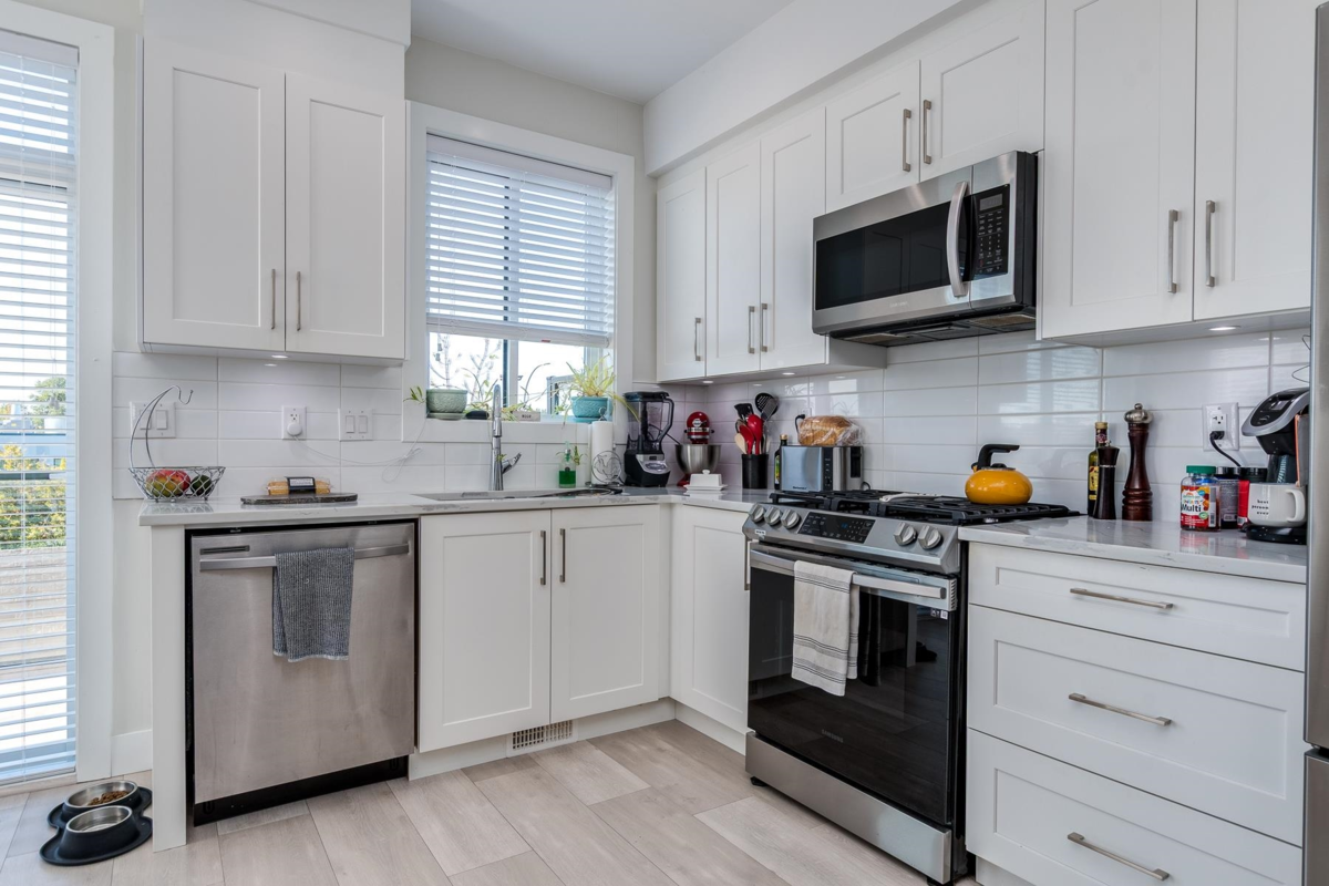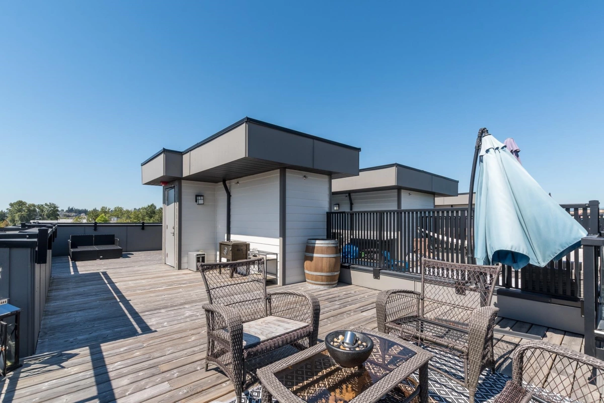 This spacious Corner next to a dead end street is Bright .2 bed / 3 bath,3 year old unit with 1501 sq ft,Primary bedroom has double closets,Extra corner window ,2nd bedroom is good size with 3 closets,Both rooms are practical. Double tandem garage currently part of it is used as a workshop area in the garage. Roof top deck approx 500 sq ft. Sundeck off the nook area. Bright Kitchen with gas Range, quartz countertops, engineered laminate flooring, frameless glass showers, custom wooden cabinets, stainless steel appliances,Clean and fresh, making this all ready for your family.Enjoy Air conditioning, Gas forced air furnace.Excellent value. Located in Langley City close to shops, restaurants, shopping, recreation and the newly expected Skytrain Station