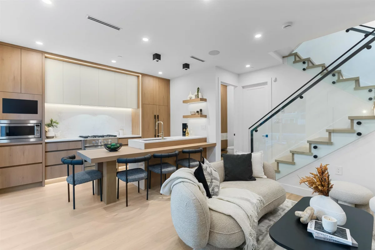 Come discover this new FRONT unit duplex in prime Renfrew/Grandview location! Designed + built to perfection by an experienced builder, this 3 bed 4 bath home is a showcase of uncompromising quality. Every detail speaks to craftsmanship w/bespoke millwork, tasteful colour palette + stylish lighting. Elevated comfort year-round w/dual heating system (radiant floor + energy-efficient heatpump), F&P appliance package w/built-in dining area, spacious bedrooms w/top floor balcony + seamless indoor-outdoor living w/ private fenced yard perfect for entertaining! Single-car garage parking + add'l outdoor carport, a rare offering providing 2 stalls. Premier area w/easy access to Commercial Dr, DT, shops, cafes + schools. A beautiful statement of design, quality and modern living. Call for showings!