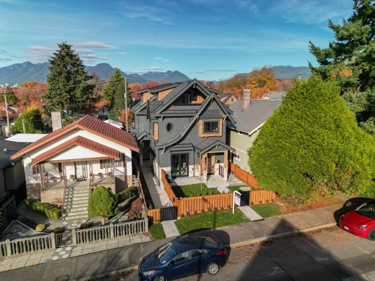 Exclusive opportunity to secure a front 1/2 duplex in one of East Vancouver’s most vibrant and connected neighbourhoods. Enjoy luxury living with this top of the line build. Immaculate views of the North Shore Mountains and Downtown Skyline. This 3 bed, 3 bath home features high end finishes, custom millwork, hardwood floors, Fisher & Paykel appliances, curated lighting, a detached garage with roll-up door, and ample storage. Radiant heating and an electric fireplace for chilly nights and A/C for those hot summer days. Steps to local favourites like Pallet Coffee and Tacofino, with easy access to Pandora Park and Hastings Park. Nearby schools include Hastings Elementary, Templeton Secondary, and Notre Dame Secondary. Open House Sunday 2-4.