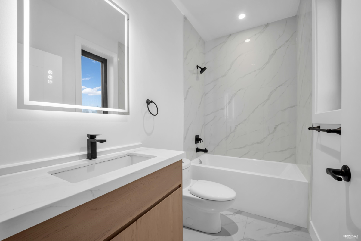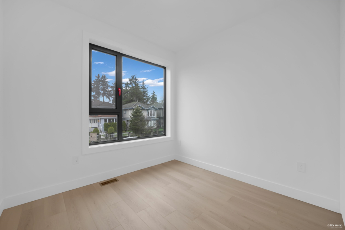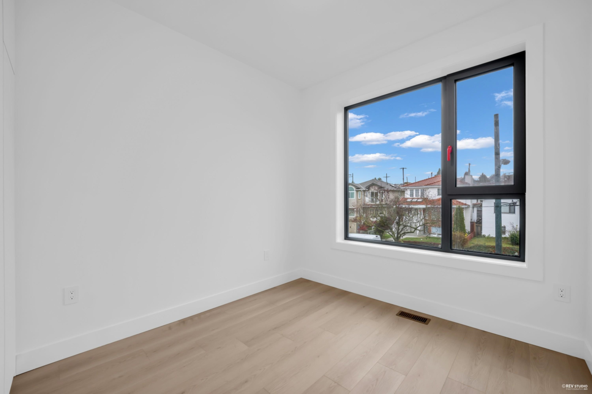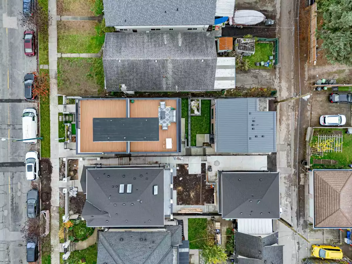 Modern 3 BDRM/2.5 BATH unit in a premier 4-plex, combining style, comfort & convenience. Only 1 min walk to bus stop w/direct access to Skytrain & Vancouver waterfront, 5 mins walk to restaurants & Canadian Superstore. Contemporary design features clean lines, open-concept layout, triple-glazed metal frame windows & energy-efficient systems. Enjoy private yard, alarm, sprinkler & security cameras with back lane access open parking with EV Charging. Inside: gas stove, heat pump (heating/cooling) & 450sqft rooftop patio w/ unobstructed city & mountain views. No Strata Fee!