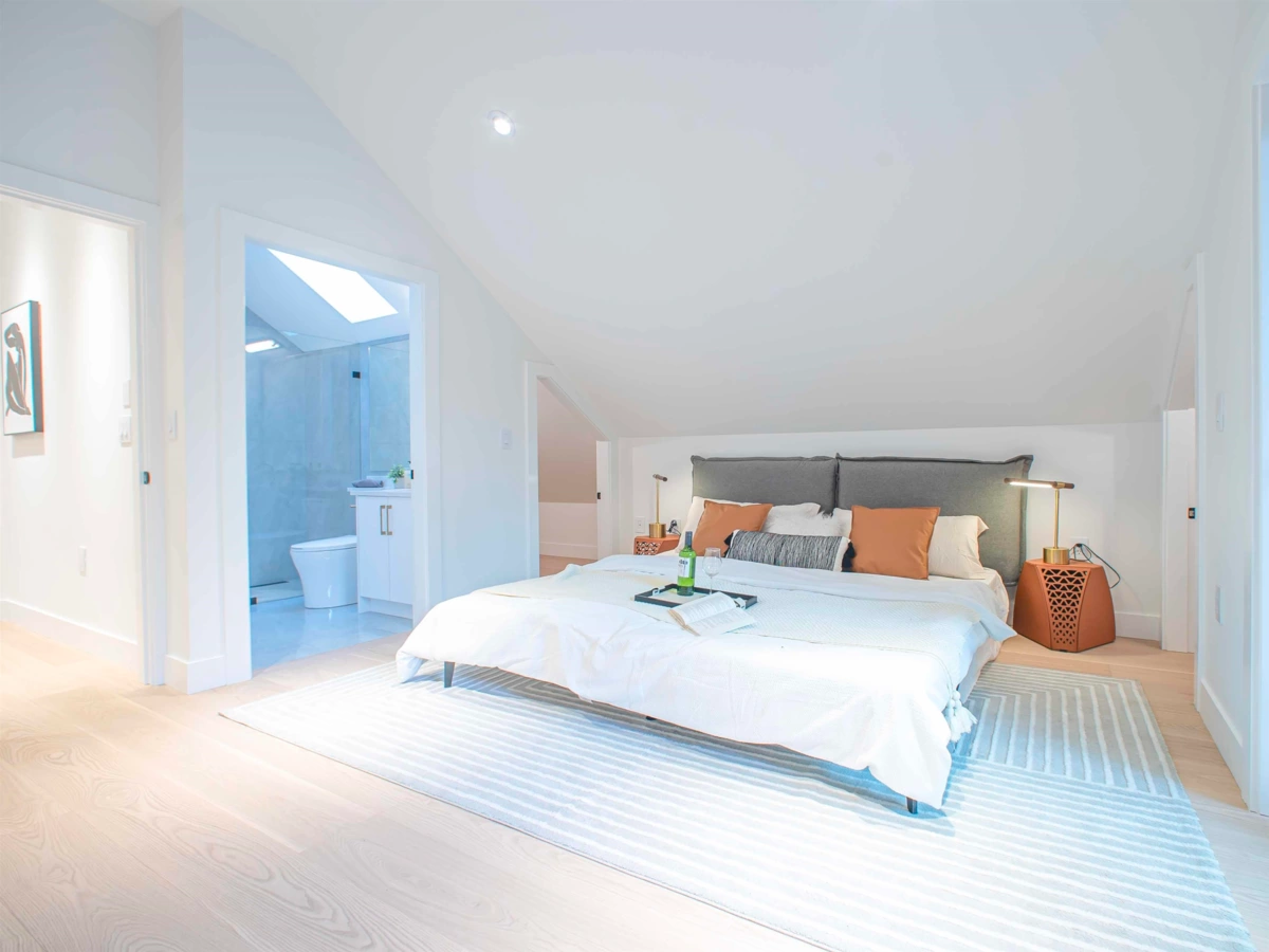 Brand new front duplex in Vancouver West’s coveted Arbutus neighbourhood. 1,834 sq. ft. with 4 bedrooms, 4 baths, bright open layout, hardwood floors, vaulted primary bedroom ceiling, and large covered deck. Tons of storage on multiple levels, private landscaped yard with cedar hedges, air conditioning, HRV, and Fisher & Paykel’s award-winning luxury kitchen appliances. Detached garage is insulated, heated, and EV-ready. In top school catchments: Trafalgar Elementary (K–7), Prince of Wales Secondary (8–12), Kitsilano Secondary (French Immersion 8–12). Close to parks, shopping, transit, and private schools—perfect family home. OPEN HOUSE: Nov. 30th (SUN) 2–4PM