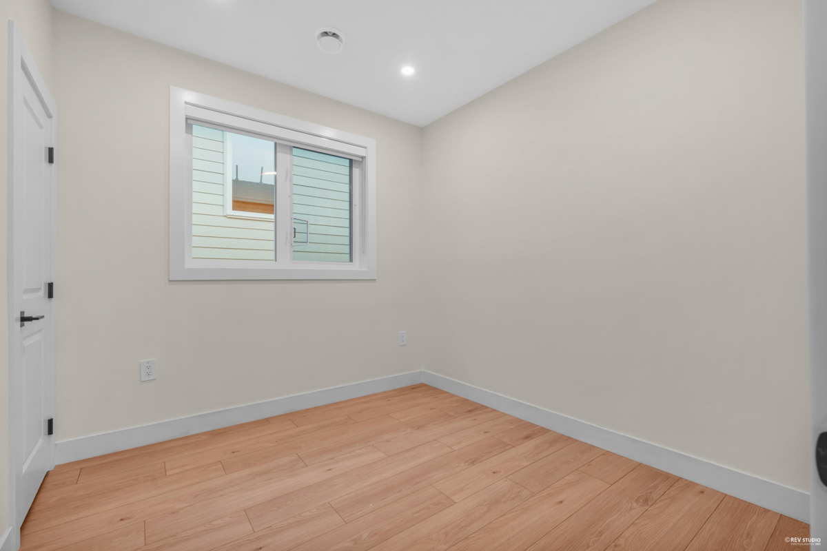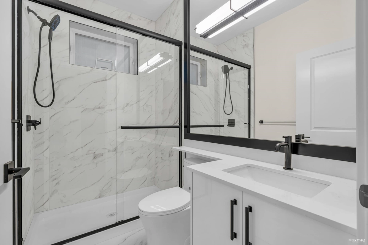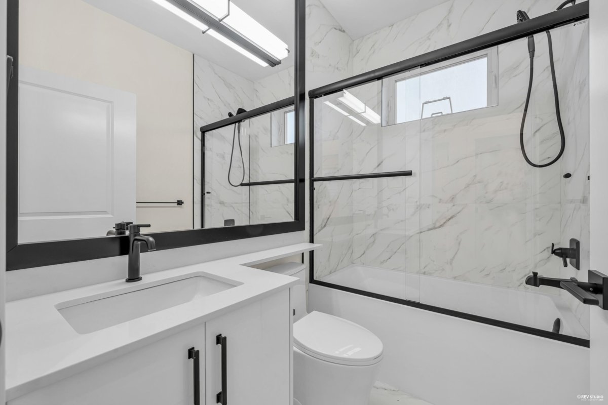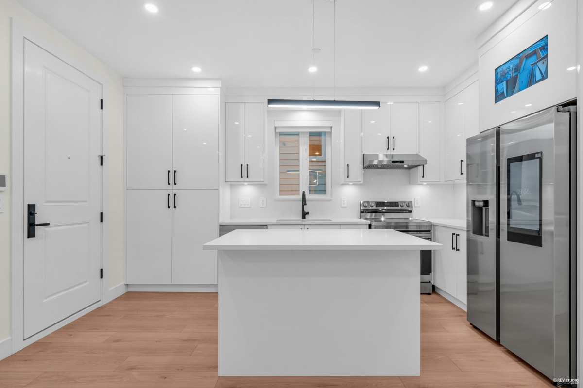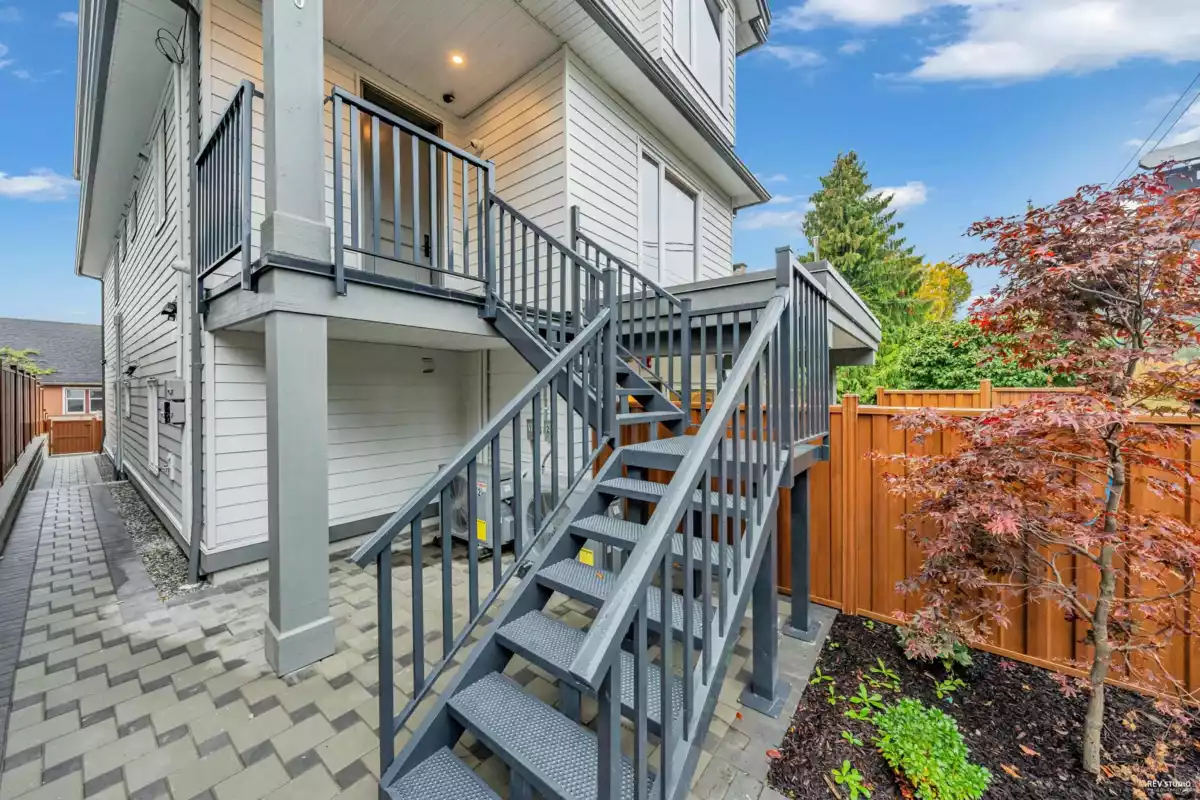 NO STRATA FEE! Modern front-unit home in a brand-new triplex. This 2-storey home offers 3 spacious bedrooms and 3 full baths in Joyce-Collingwood Vancouver. Features a stylish living room with custom TV cabinet, sleek kitchen with S/S appliances and large island, plus A/C, HRV, heat pump, security system, EV-ready parking, and fenced front & back yards. Includes ensuite laundry, ample storage, and 2/5/10 warranty. Convenient location near schools, parks, and SkyTrain stations. Built by a reputable builder. Easy to show.