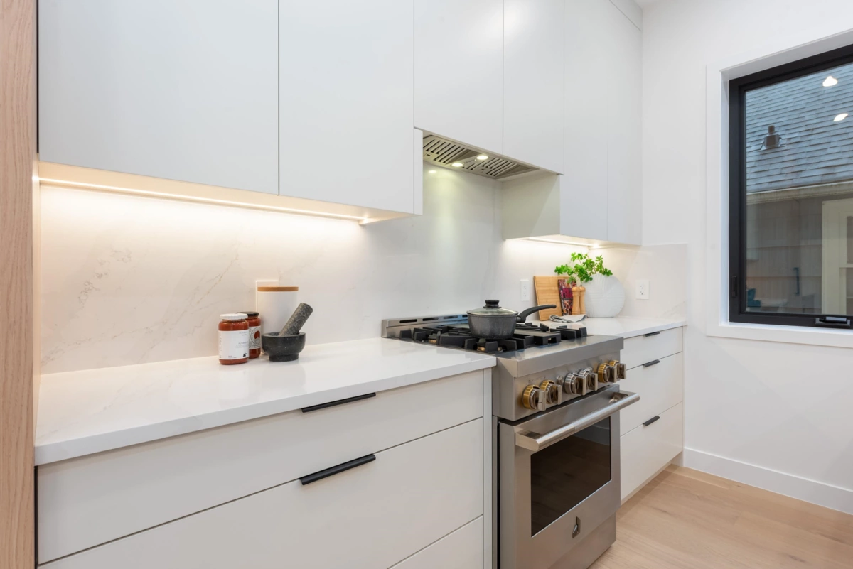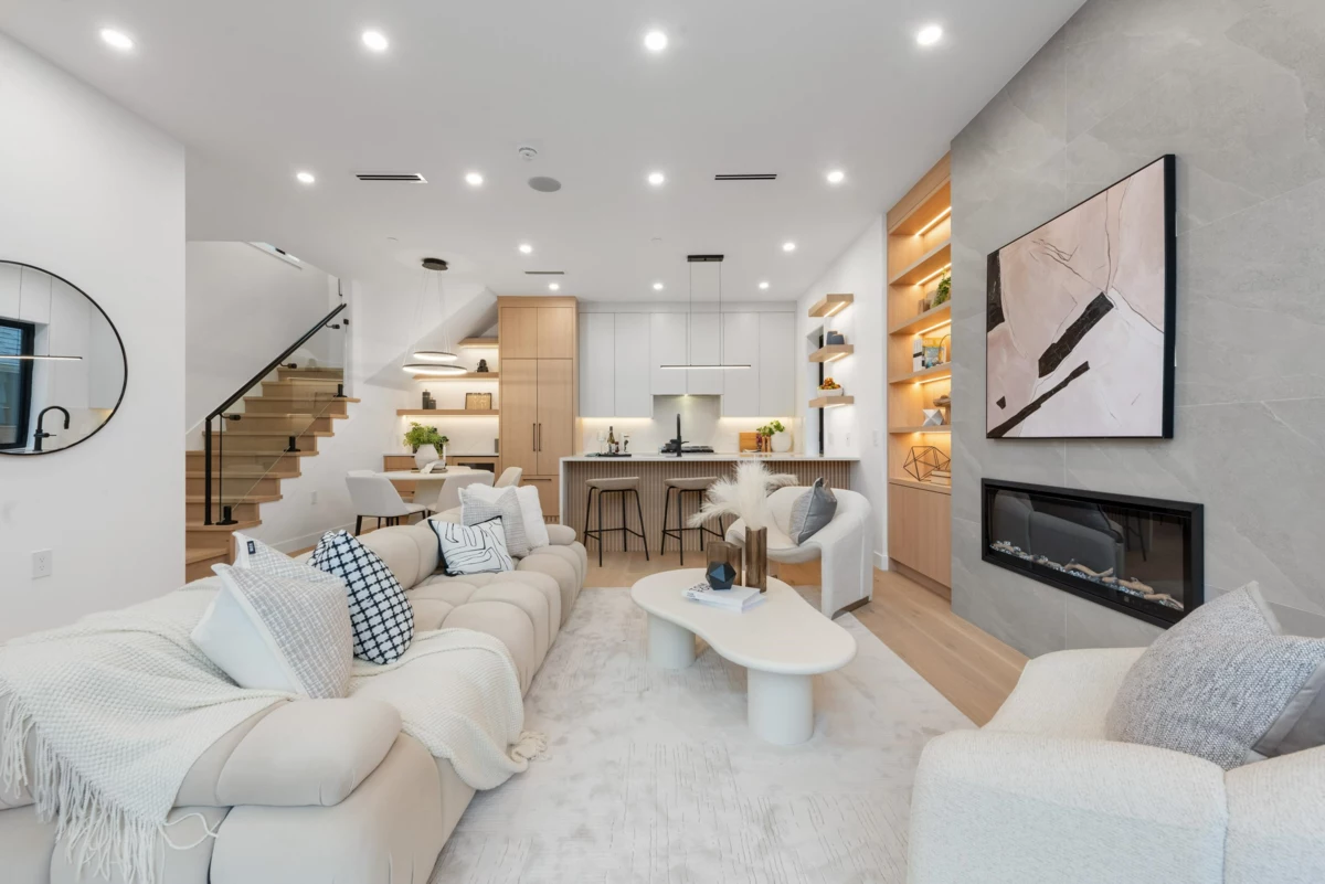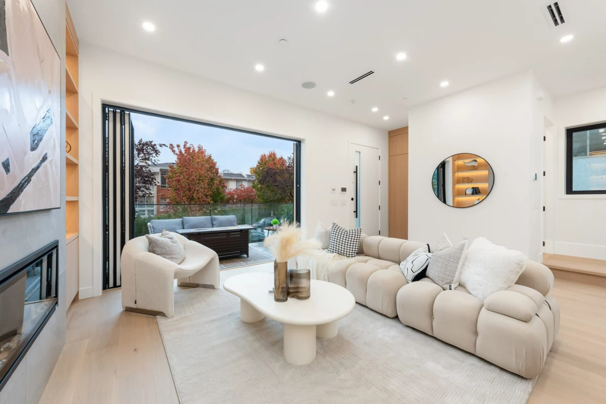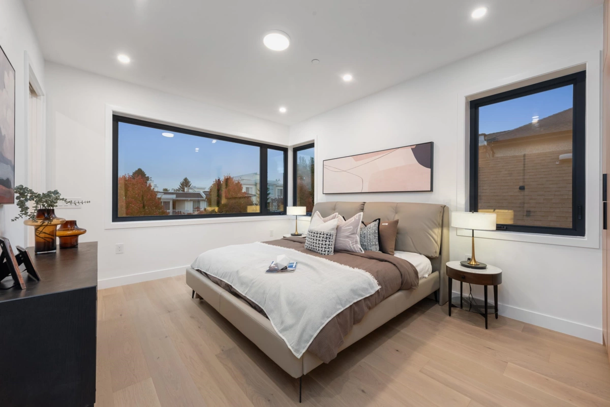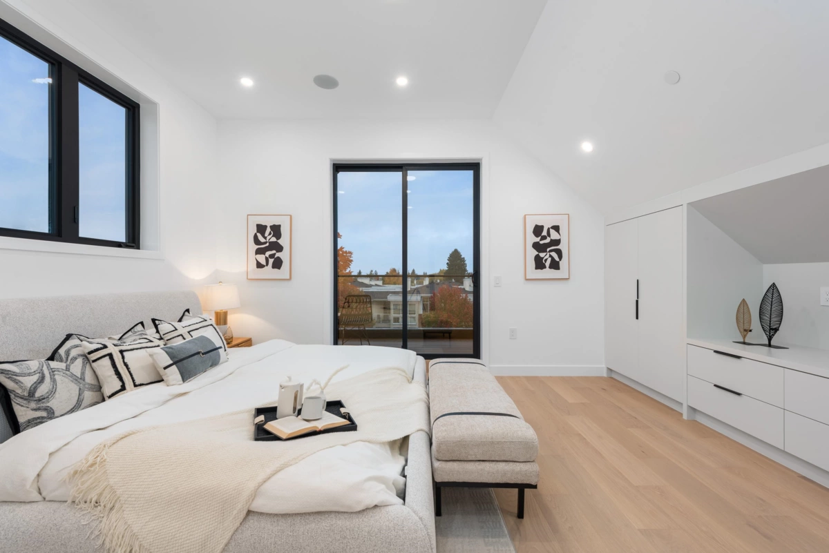 GDG Developments presents a stunning front unit duplex offering over 1,500 sqft of thoughtfully designed living space. This home features a fully finished crawl space & a garage equipped with built-in shelving, overhead storage, and an exhaust fan, ensuring exceptional storage throughout. Interior finishes include Ecobee smart thermostats, Silestone countertops from Spain, a built-in speaker system, solid core doors, painted cabinets, & engineered hardwood flooring. Enjoy year-round comfort with both radiant in-floor heating and a heat pump system. Located on a quiet, tree-lined street just steps from Hillcrest Community Centre, Queen Elizabeth Park, and the vibrant shops and restaurants of Main Street, this home seamlessly combines style, function, and an unbeatable location.