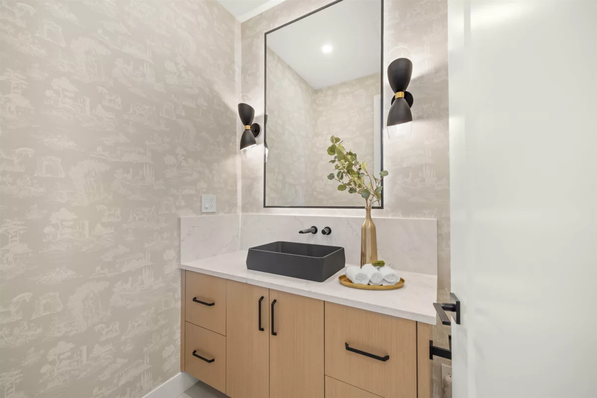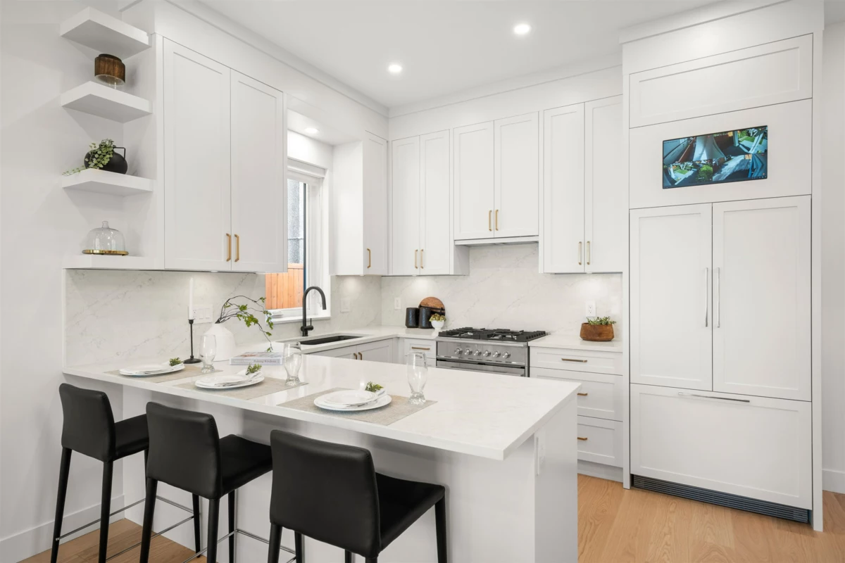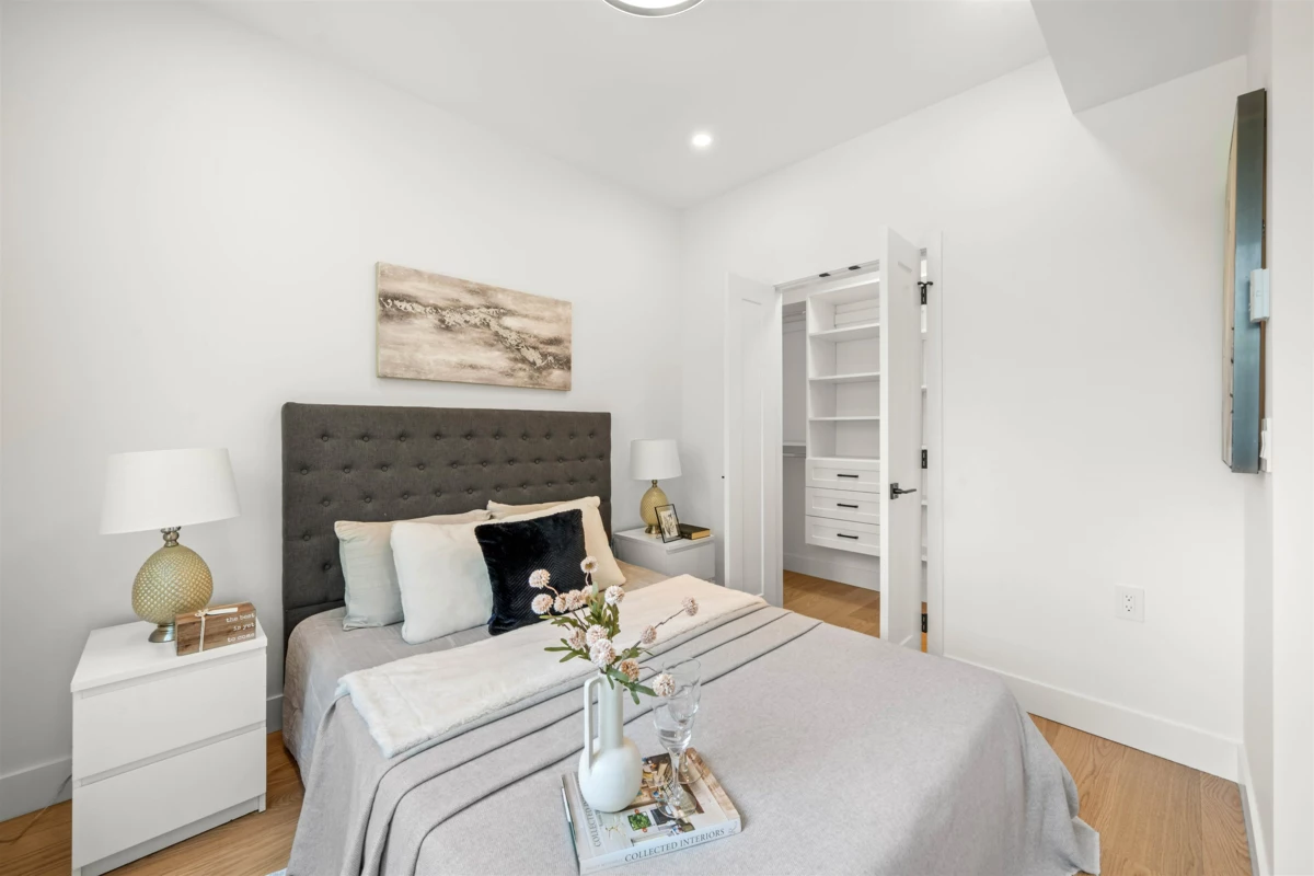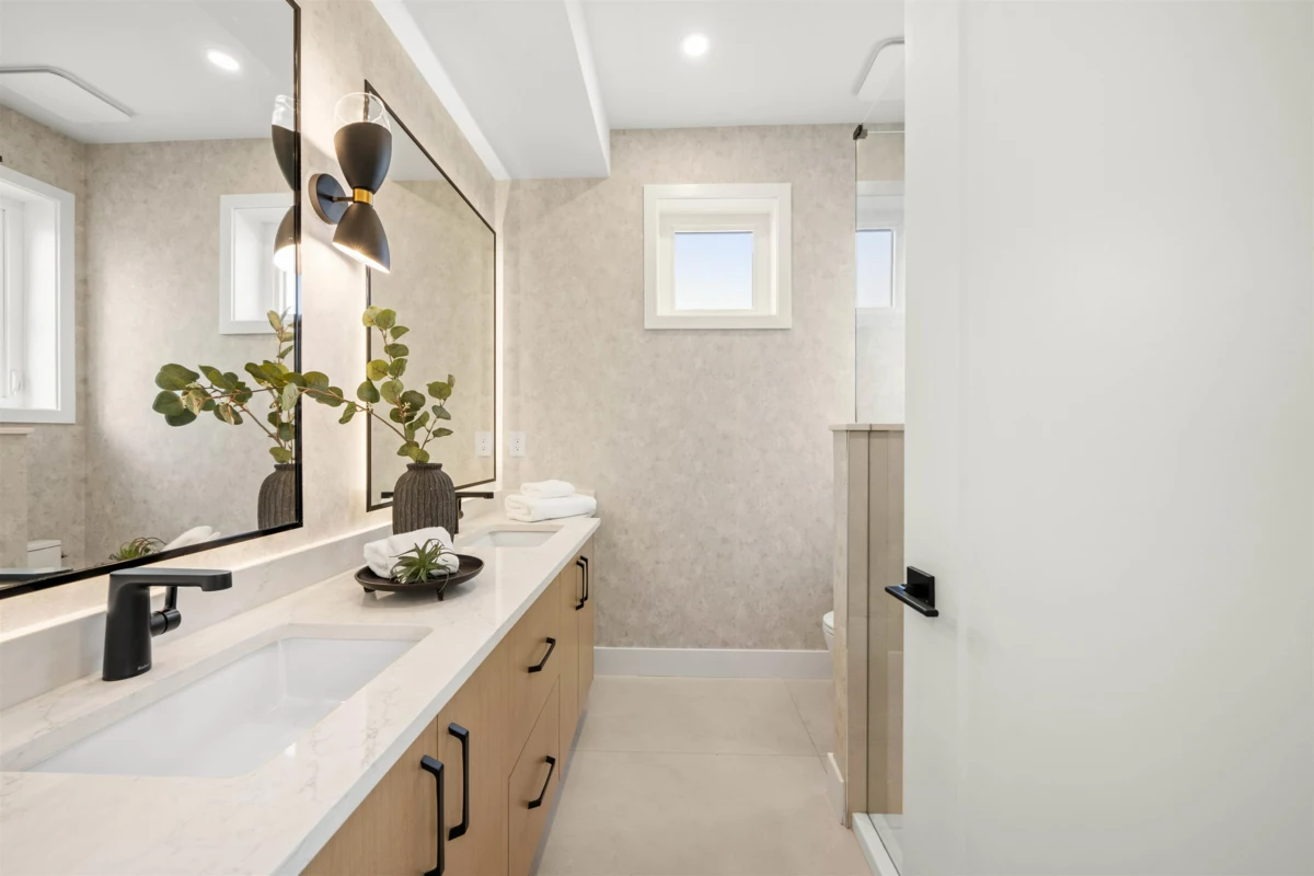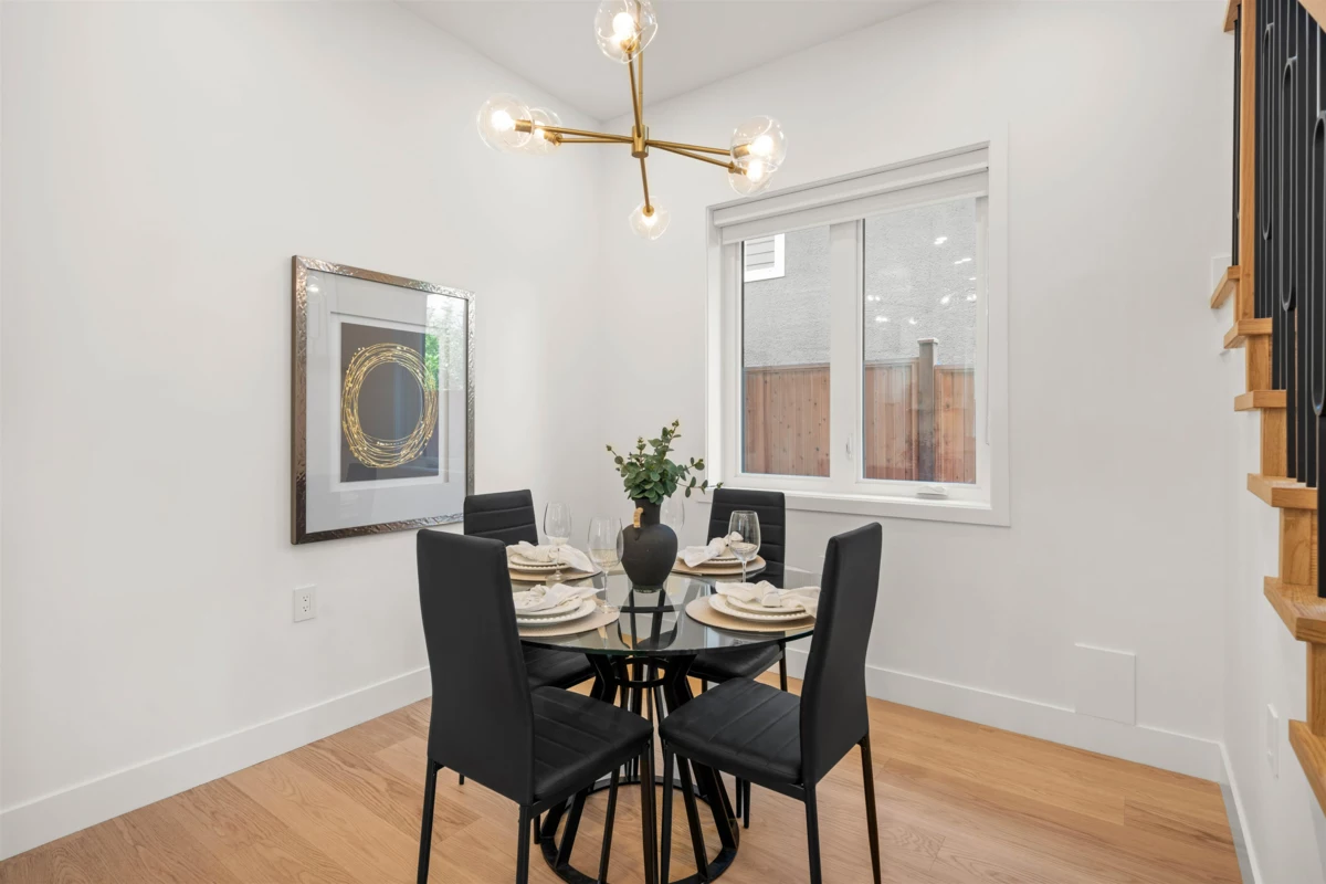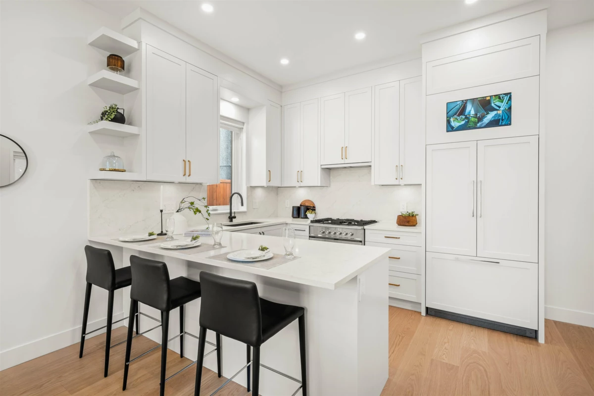 Enjoy stunning mountain views from this brand-new front duplex in the vibrant Main Street neighbourhood. Spanning three levels, this home offers 3 bedrooms and 3.5 baths with thoughtful design throughout. The main floor features 10’ ceilings, hardwood flooring, a gas fireplace, Fisher & Paykel appliances, and custom built-ins. Upstairs includes two bedrooms, each with its own ensuite and built-in dressers, while the top floor showcases a private bedroom with ensuite and a balcony overlooking the mountains. Located close to shops, restaurants, golf course, John Henderson Elementary and John Oliver Secondary catchments.Complete with A/C, HVAC, security system, and an EV-ready single garage.
