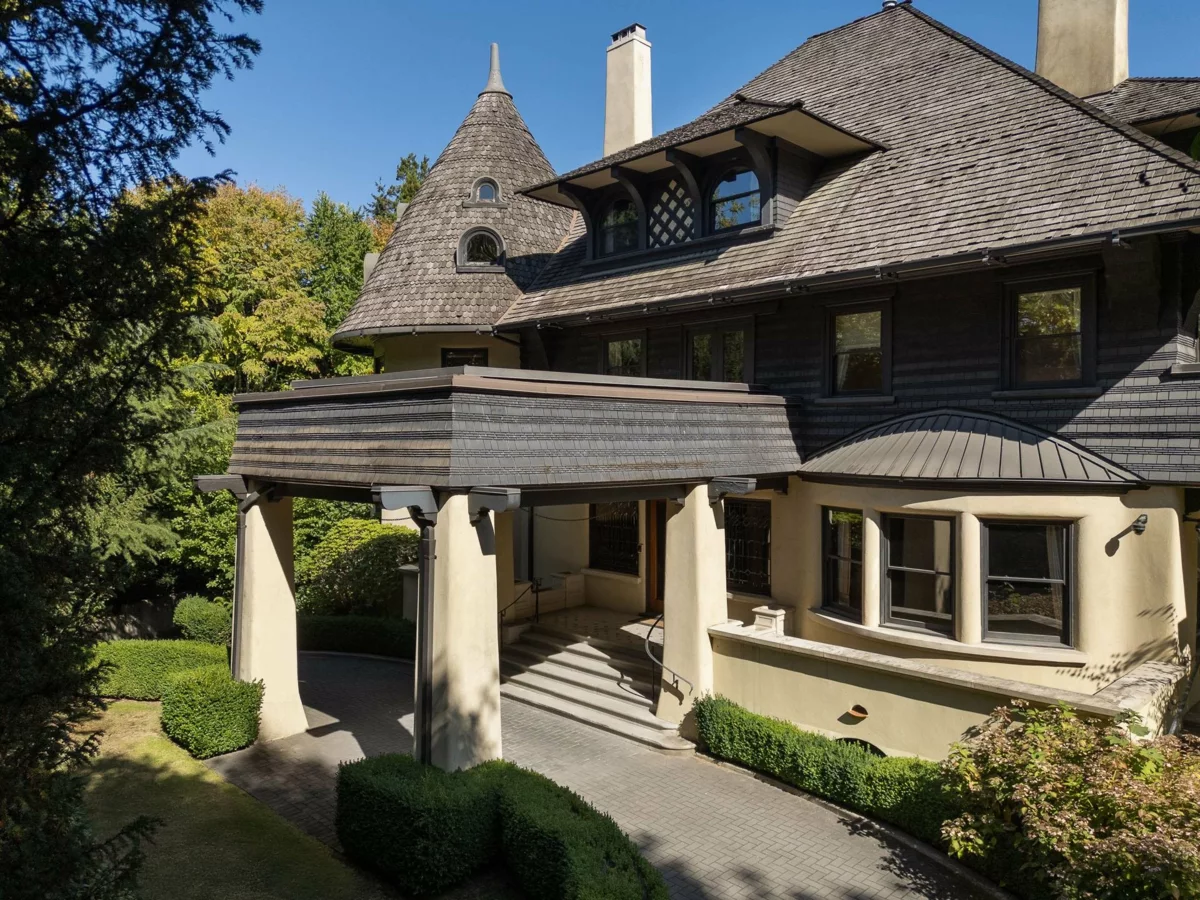Greencroft Estate - A rare opportunity to acquire one of Vancouver's most significant historic & architectural estates. Built in 1912 & designed by architect Thomas Hooper, this 'Heritage A' masterpiece was first home to Lt. Governor Eric Hamber. Blends Tudor & Gothic Revival w/ Arts & Crafts detailing; ft. oak floors, oak panelled elevator, stained glass & tapered port cochere columns. Restored & updated in 2003, this ~15,800SF residence is stratified into a side-by-side duplex w/ internal connectivity offering total 9 bdrms, 13 baths, 3 kitchens & underground parkade fitting ~6 cars in the heart of prestigious First Shaughnessy. Listing price/SF is for Unit1 only, (Unit 2 MLS R3055339). COURT ORDERED SALE.