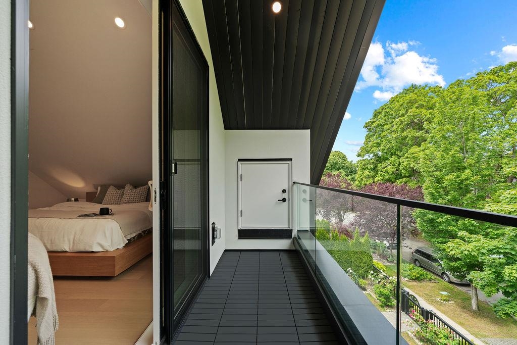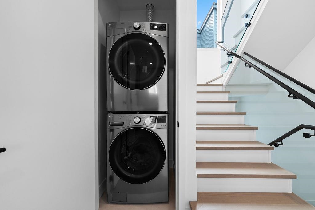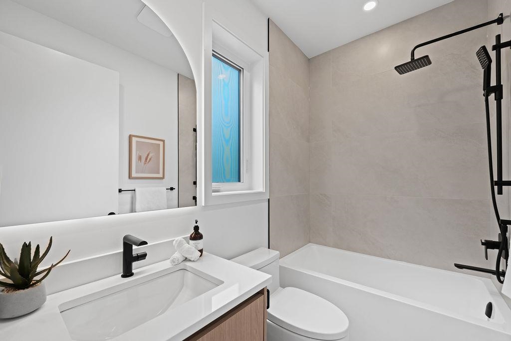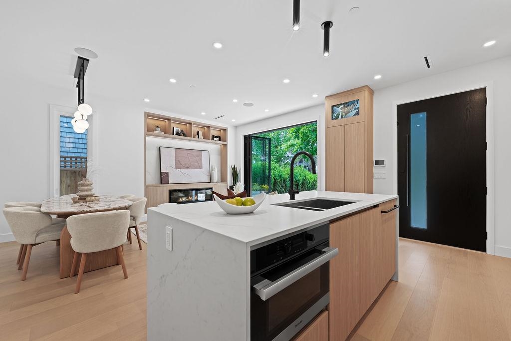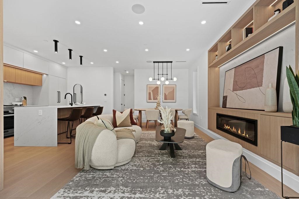 Welcome to this exquisite front 1/2 duplex in the heart of Dunbar, built by renowned Westside builder Mann Bros Construction. Offering almost 1600sq.ft of living space across 3 levels, this home is a masterpiece of design & craftsmanship with no detail spared & only the best materials used. The main floor boasts an expansive, open-concept layout that seamlessly connects the living, dining & kitchen areas. Large eclipse doors open to a lovely front yard. Upstairs, you'll find 3 generously sized bdrms, each with its own luxurious ensuite & custom cabinetry. The top floor is a versatile space, ideal as a bdrm, home office or rec room & it includes its own private balcony. Additional features include a one car garage, in-floor radiant heat , A/C & a security system.