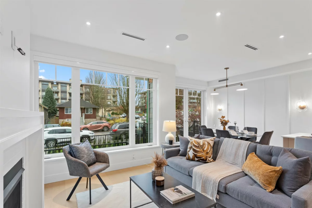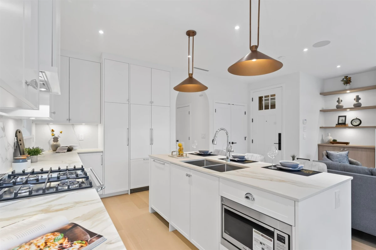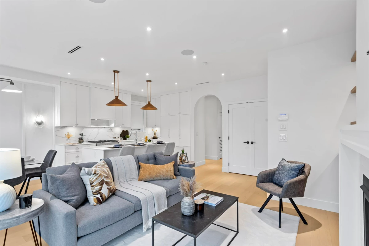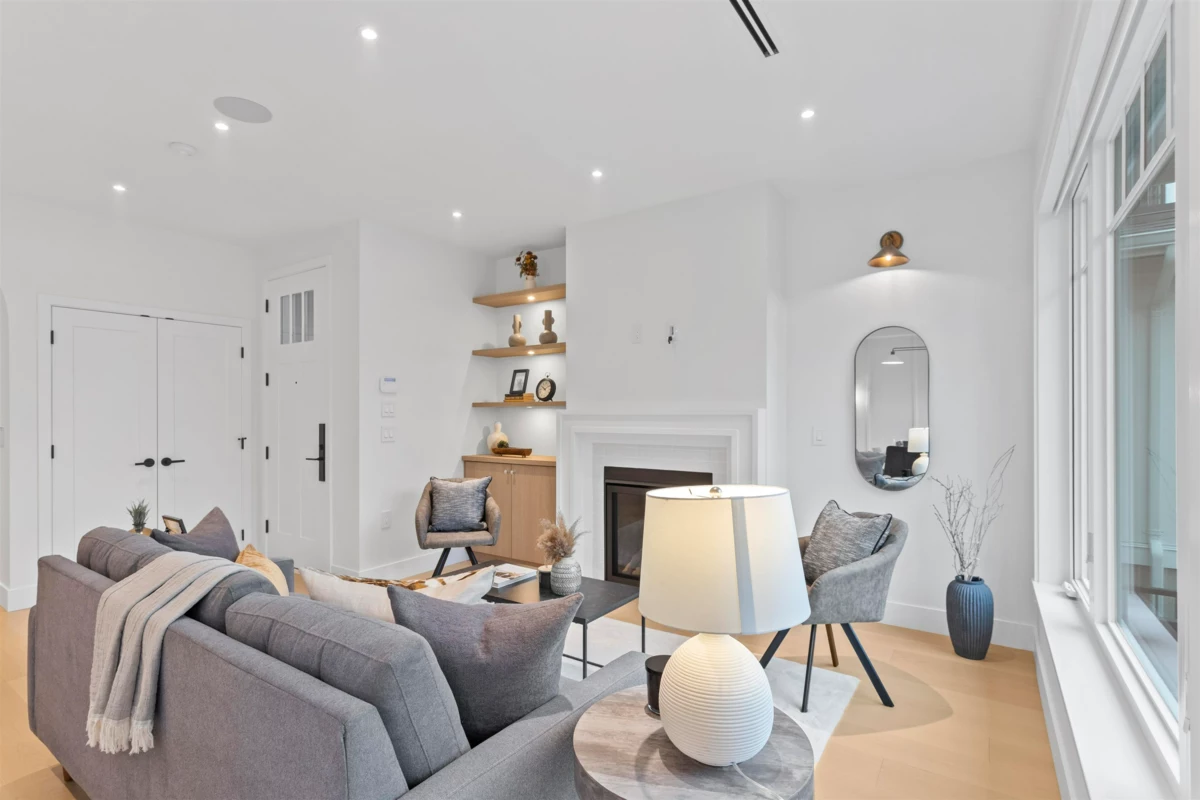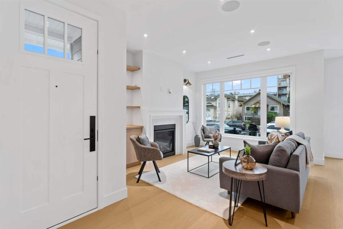 Welcome to this farmhouse-style half duplex located in the heart of Vancouver Heights, built by Case Moderna. Offering under 1,900 sq ft of beautifully finished living space. The open-concept main floor showcases wide plank hardwood flooring thru out the main & upper floor, stone kitchen countertops, wainscoting walls and premium built-in Fisher & Paykel appliances, plus gas washer, dryer, stove and fireplace. French doors off the main-floor open to the outdoors, built-in speakers, security cameras, HRV, gas furnace and a heat pump with A/C ensure comfort and peace of mind. Upstairs includes a spacious floor plan with a larger primary bedroom, extra closet space leading to a lux ensuite with a second bedroom and bathroom, Vaulted ceilings and a bright spacious one-bedroom suite.