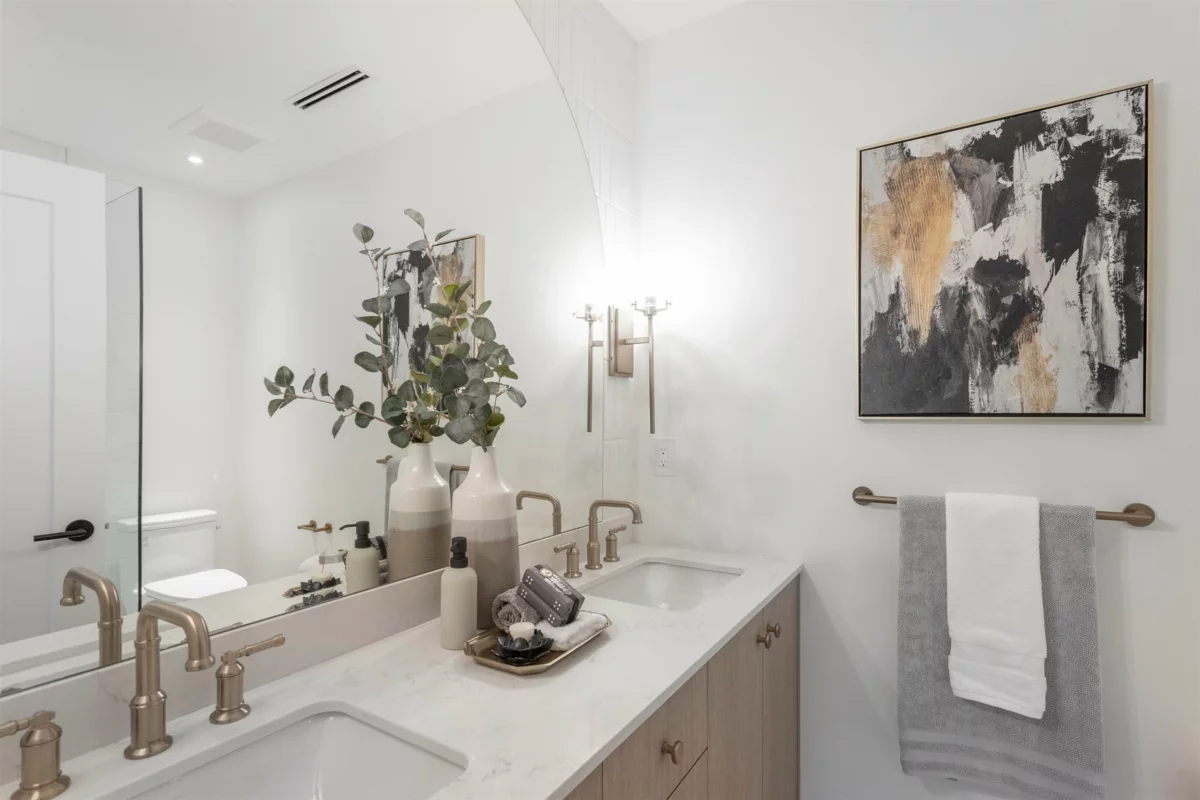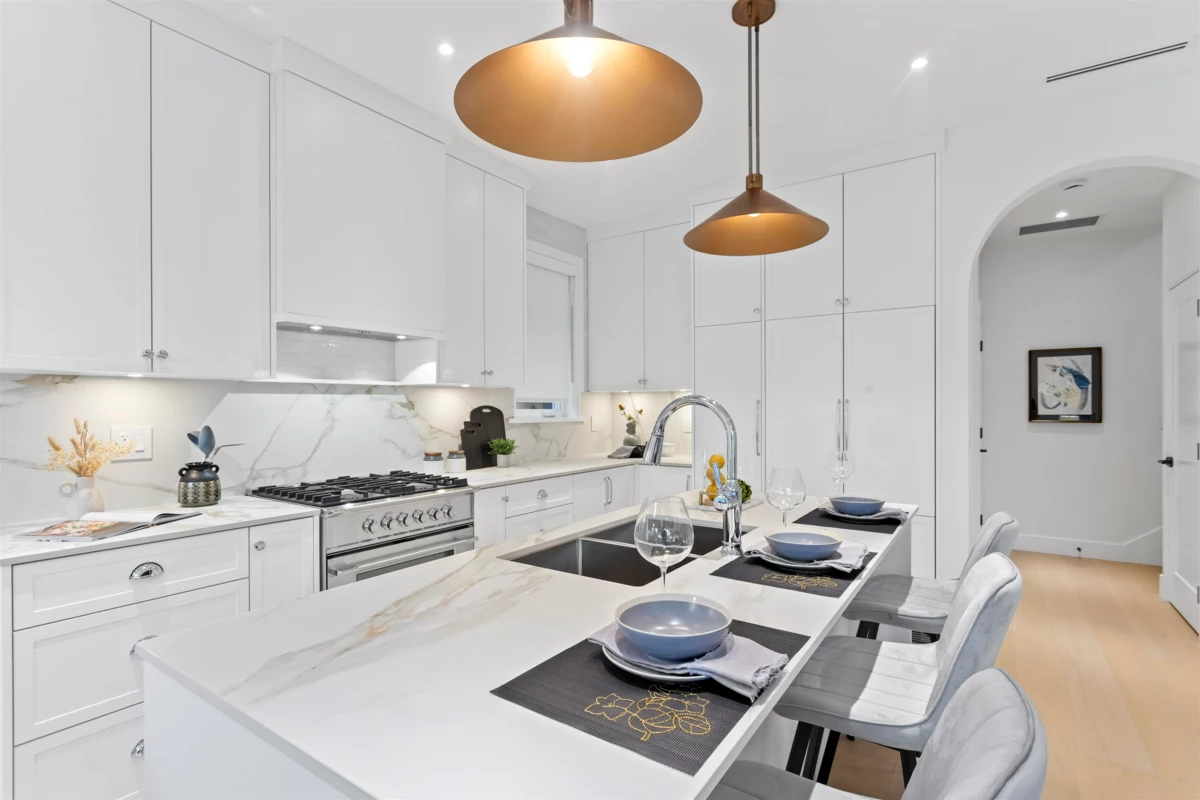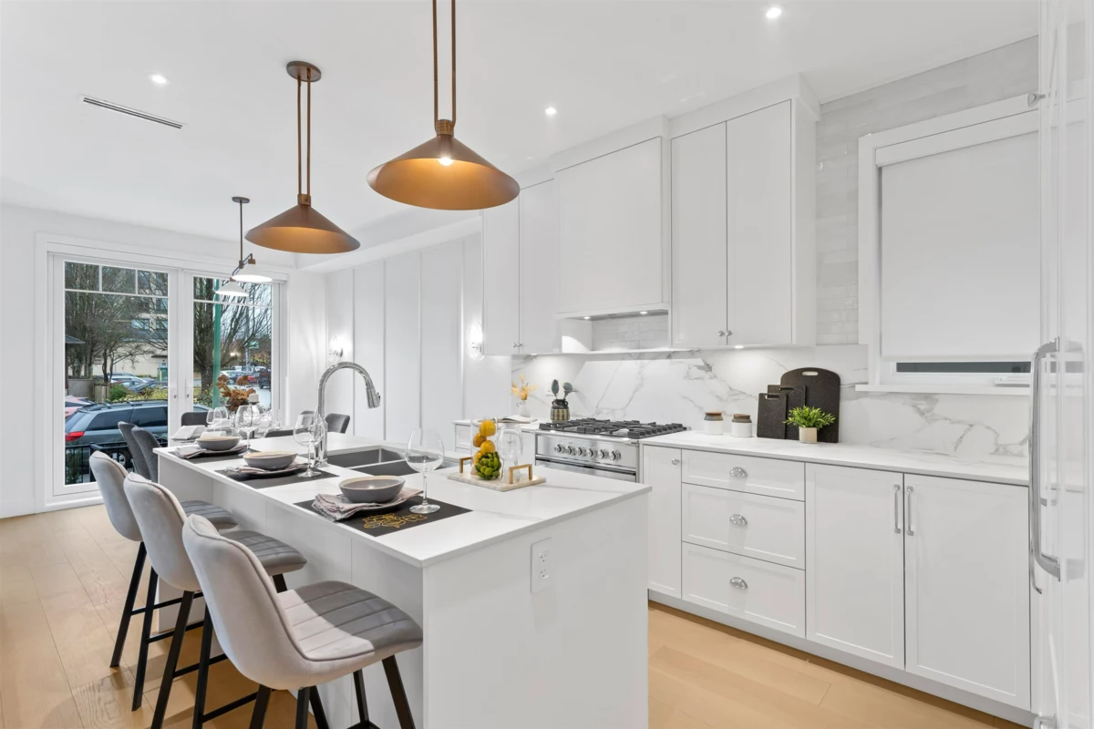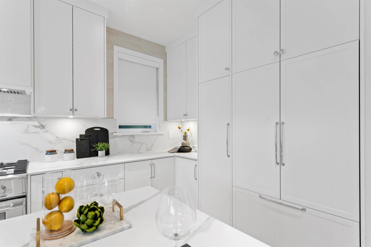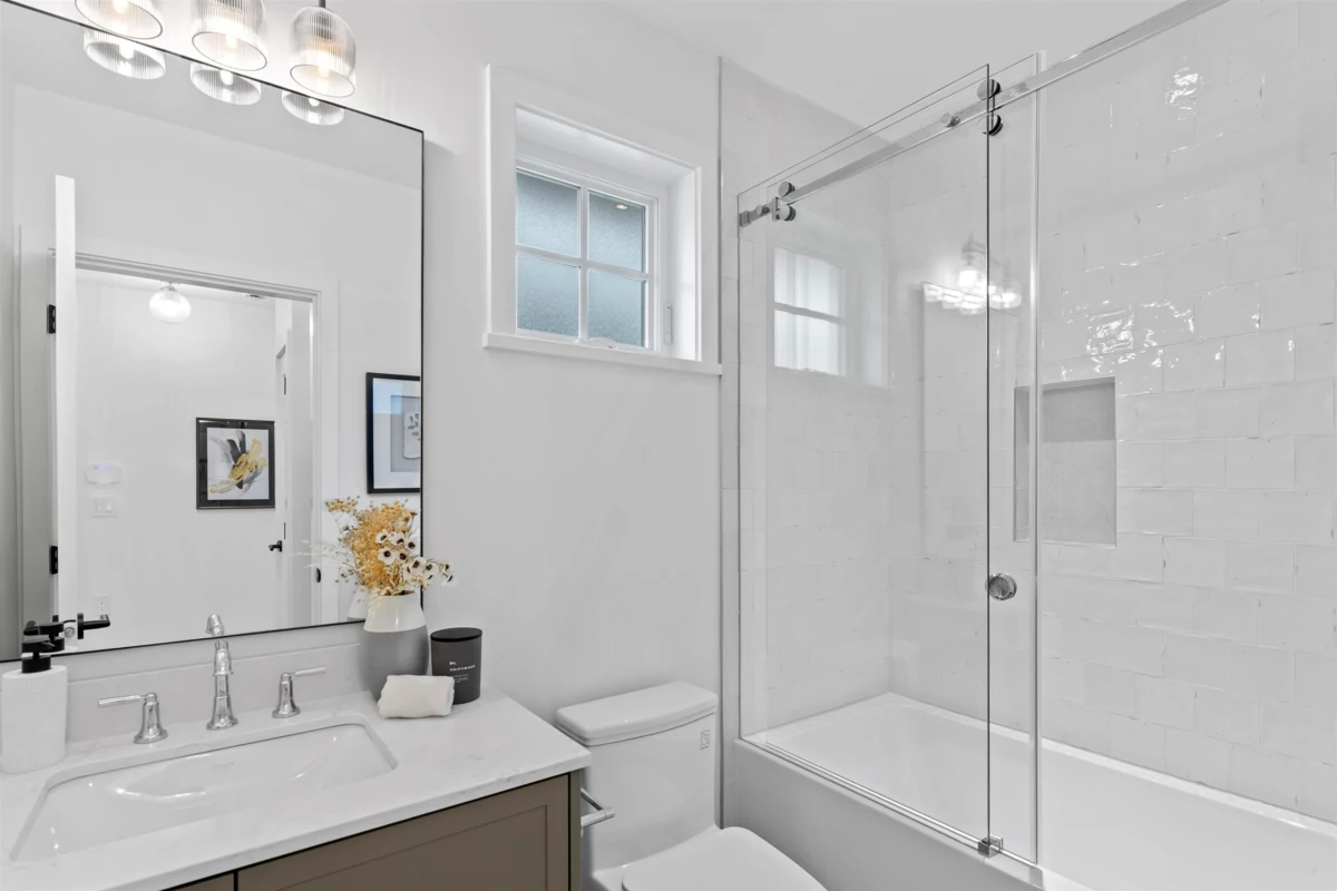 Welcome to this farmhouse-style half duplex located in the heart of Vancouver Heights, built by Case Moderna. Offering under 1,900 sq ft of beautifully finished living space. The open-concept main floor showcases wide plank hardwood flooring thru out the main & upper floor, stone kitchen countertops, wainscoting walls and premium built-in Fisher & Paykel appliances, plus gas washer, dryer, stove and fireplace. French doors off the main-floor open to the outdoors, built-in speakers, security cameras, HRV, gas furnace and a heat pump with A/C ensure comfort and peace of mind. Upstairs includes a spacious floor plan with a larger primary bedroom, extra closet space leading to a lux ensuite with a second bedroom and bathroom, Vaulted ceilings and a bright spacious one-bedroom suite.