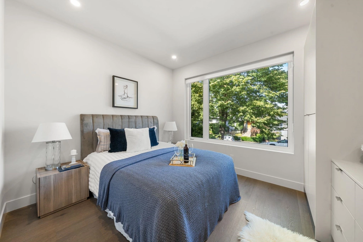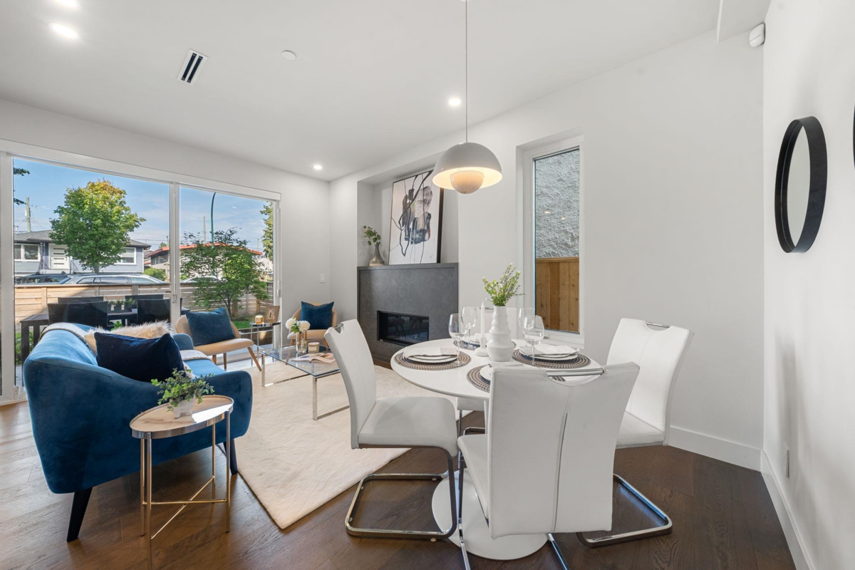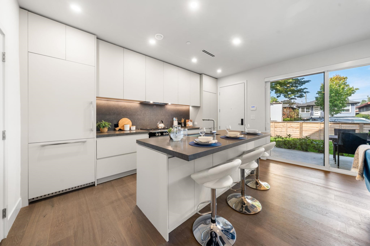Welcome to Fraser Residences, where modern living meets neighborhood charm in the vibrant Fraser Street and East 49th Avenue area. Surrounded by authentic eateries, local markets, and parks, this community blends urban convenience with a strong sense of connection. These thoughtfully designed homes feature open-concept layouts with a quartz island, Fisher & Paykel appliances, and brushed oak engineered hardwood flooring. The spa-inspired ensuite includes a frameless glass shower, deep soaker tub, and elegant fixtures. Built with sustainability in mind, each home offers a high-efficiency boiler, air conditioning, full alarm system, roller blinds, and private outdoor space. Fraser Residences is the perfect blend of style,function, and comfort.