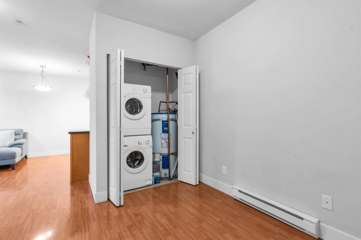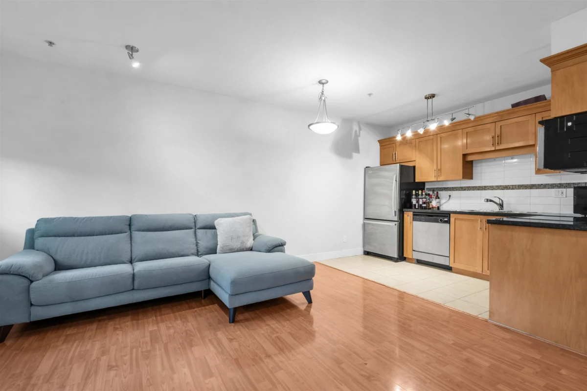 Court order sale. Unbeatable location & PRICE! This affordable unit is walkable to everything, Richmond Center shopping, transportation, park, school. This quiet side 1 bedroom + den is equipped with laminate floors, stainless steel kitchen appliances and granite top. Fully rainscreened. Parking #33 NO locker.