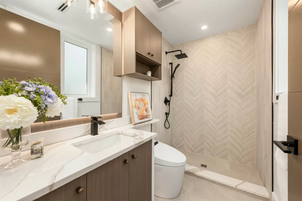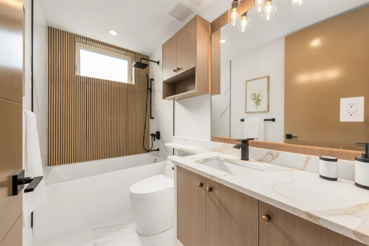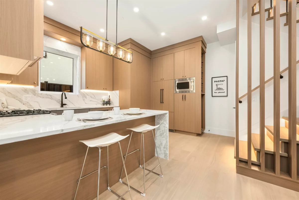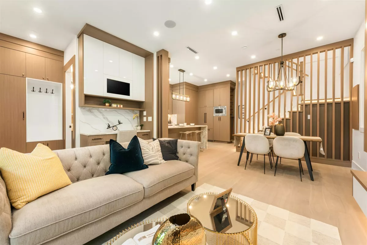 Beautiful FRONT DUPLEX in PRIME location. As soon as you walk through the front door, you will instantly be impressed with the QUALITY of construction and MODERN finishings. The main floor features 10' HIGH CEILINGS, ENGINEERED HARDWOOD flooring, CUSTOM BUILT-INS, a great layout with dedicated living & dining room space, & OVERSIZED BI-FOLD WINDOWS that provide the ultimate INDOOR/OUTDOOR experience. The 2nd floor offers 3 bedrooms on the SAME LEVEL, perfect for family living; while the level above boasts a large 4th bedroom with a FULL BATH and BALCONY. Can also be used as a, REC ROOM, OFFICE, STUDENT RENTAL, or NANNY SUITE. Located just a block & a half from Fraser St & a short walk to the future Mount Pleasant SKYTRAIN STATION, you don't have to sacrifice LOCATION for SPACE and QUALITY.