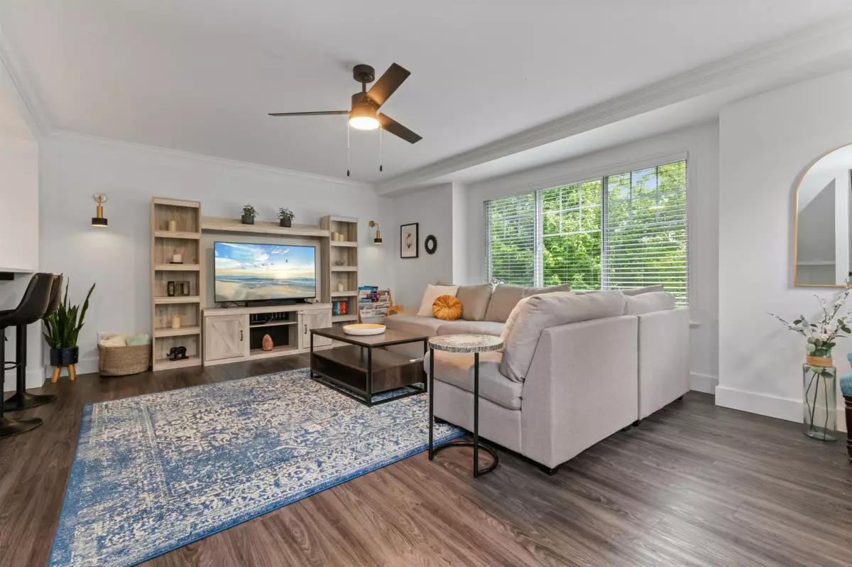 Immaculate end-unit w/ nearly 2000 sq ft of bright, inviting living space & 3 beds + den & 3 bathrooms. The spacious living room offers a cozy NG fireplace, while the beautiful kitchen impresses w/ custom white quartz counters, ample cabinets, pantry & large island. A formal dining area opens to the patio w/ NG hookup. Main floor also features a generous den & newer floors. Upstairs boasts a large primary with WIC & ensuite, plus 2 more beds, 2nd bath & laundry. Bathrooms also have new white quartz counters & elegant tile floors. Below the main is a huge rec room also with newer floors and 2-piece bathroom with matching white quartz counters! Stay cool with the new AC installed & enjoy your double garage with 2 more parking out front! Fully fenced yard w/ newer panels.