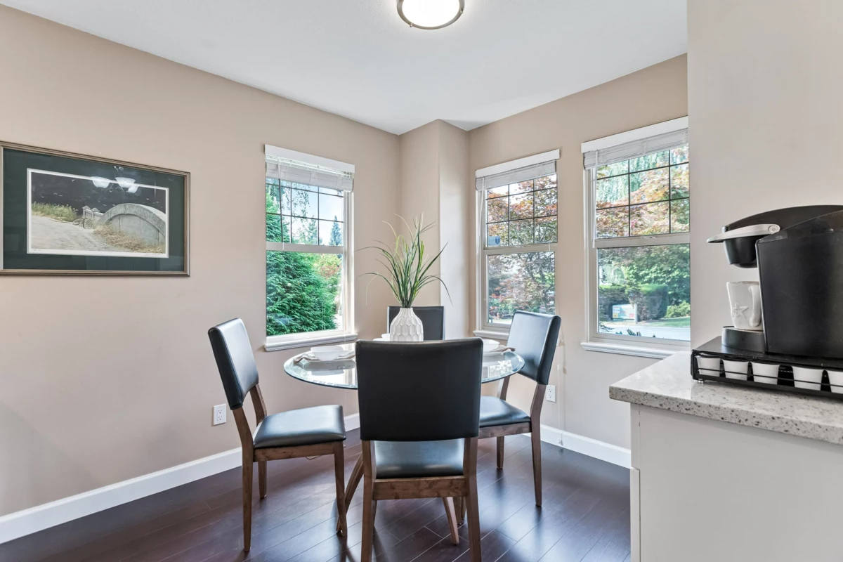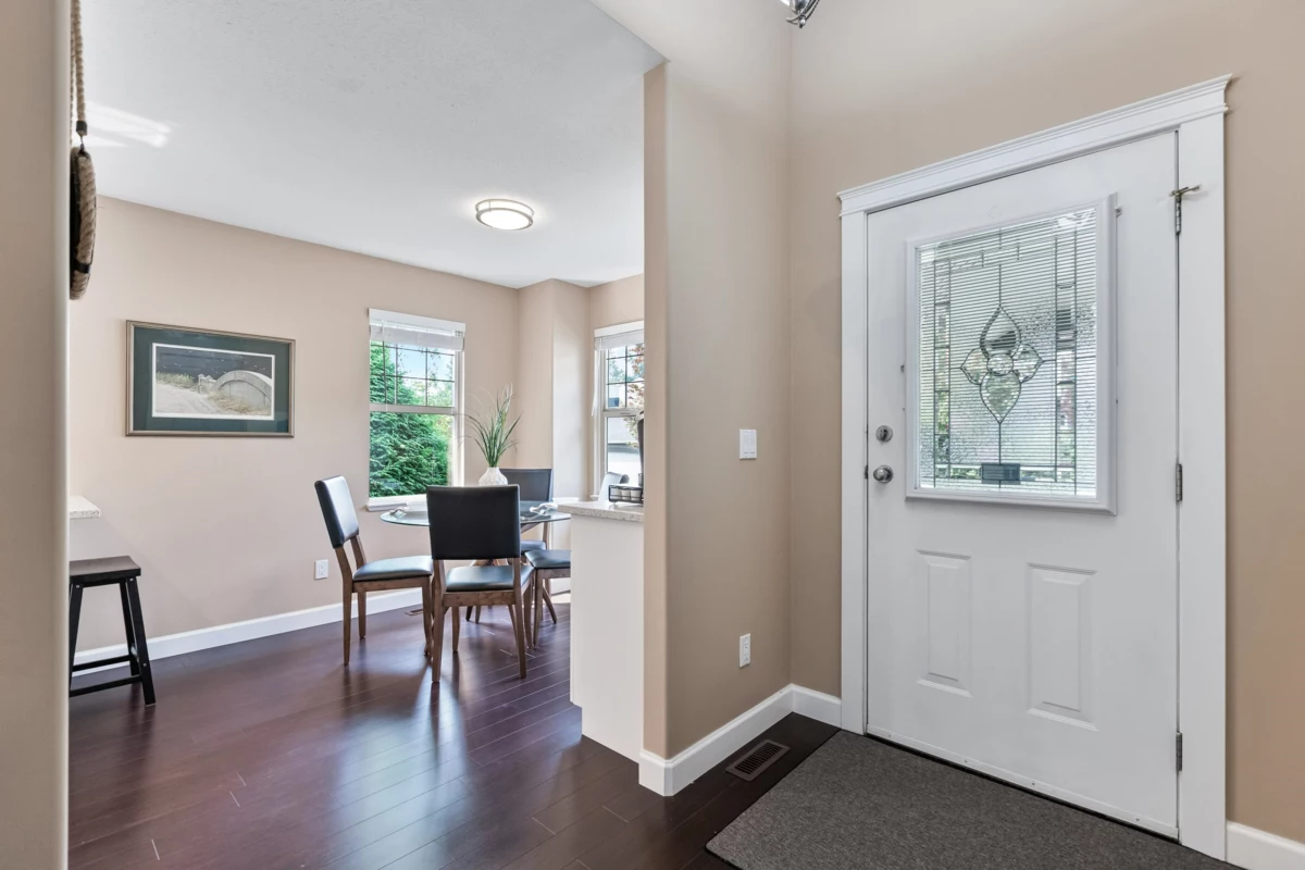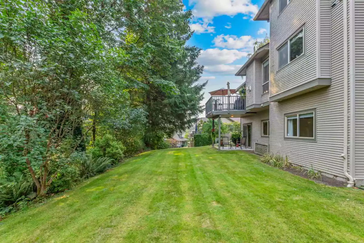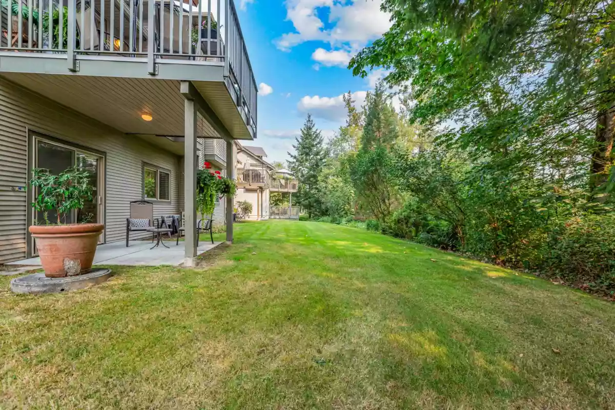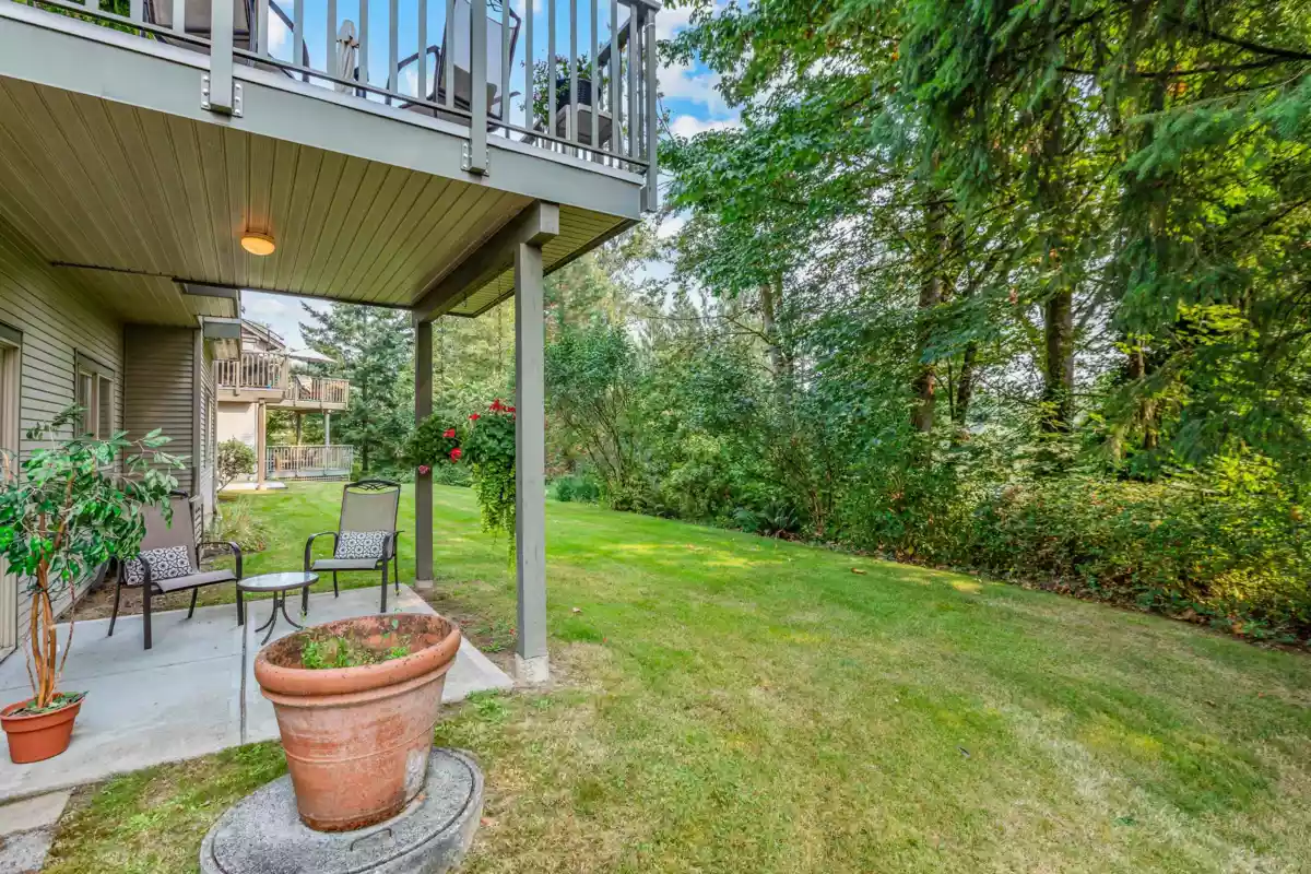 Welcome to Woodridge, one of the area's most sought-after communities! This duplex-styled 2 storey w/ a fully finished bsmt. offers 4 spacious bdrms. & 4 bthrms. And a layout designed for comfort & flexibility. Soaring ceilings in entry area & gas f/p in lvgrm. with sliders out to deck overlooking greenery &Kanaka Creek. Main floor primary suite or fam rm. Oversized upstairs primary suite with 2 W.I. closets with a spa-styled ensuite. Finished bsmt. with high ceilings, rec rm, 2 large bdrms, plus an office space & walk-out to covered patio from rec.room. Double garage PLUS xtra prkg. spot on d/way. This home combines the feel of a detached residence w/ ease of t/h living. Peaceful, private, & perfectly located- Woodridge is where lifestyle meets convenience. OPEN HOUSE Sunday 1-3pm