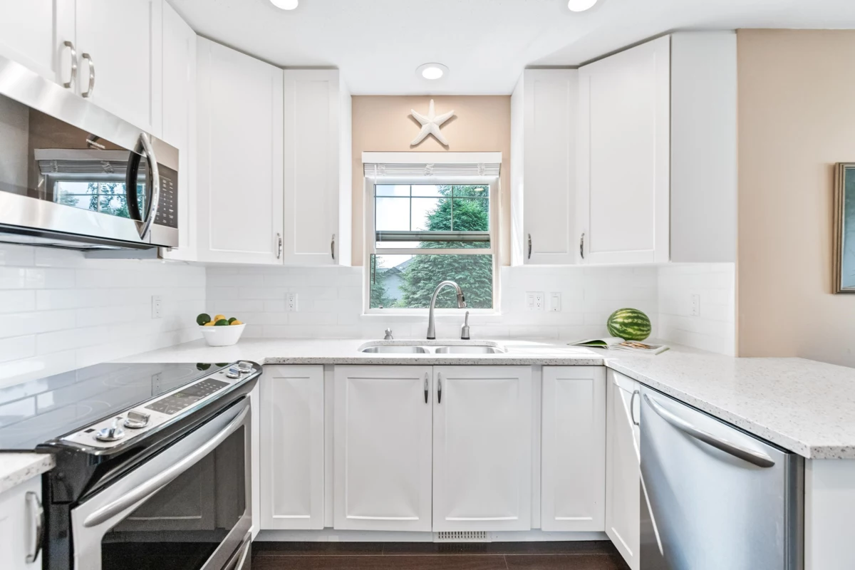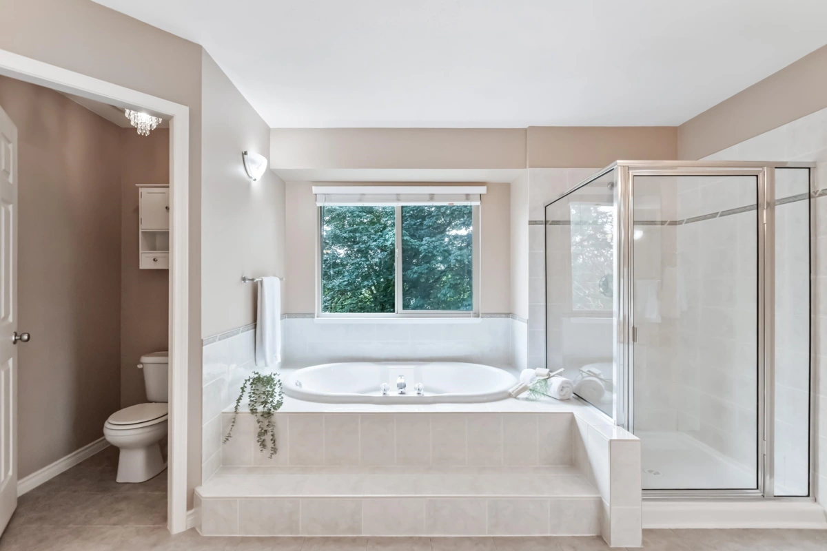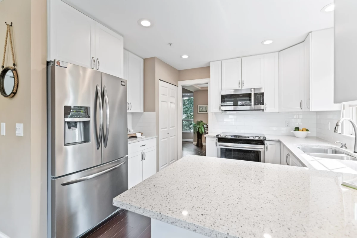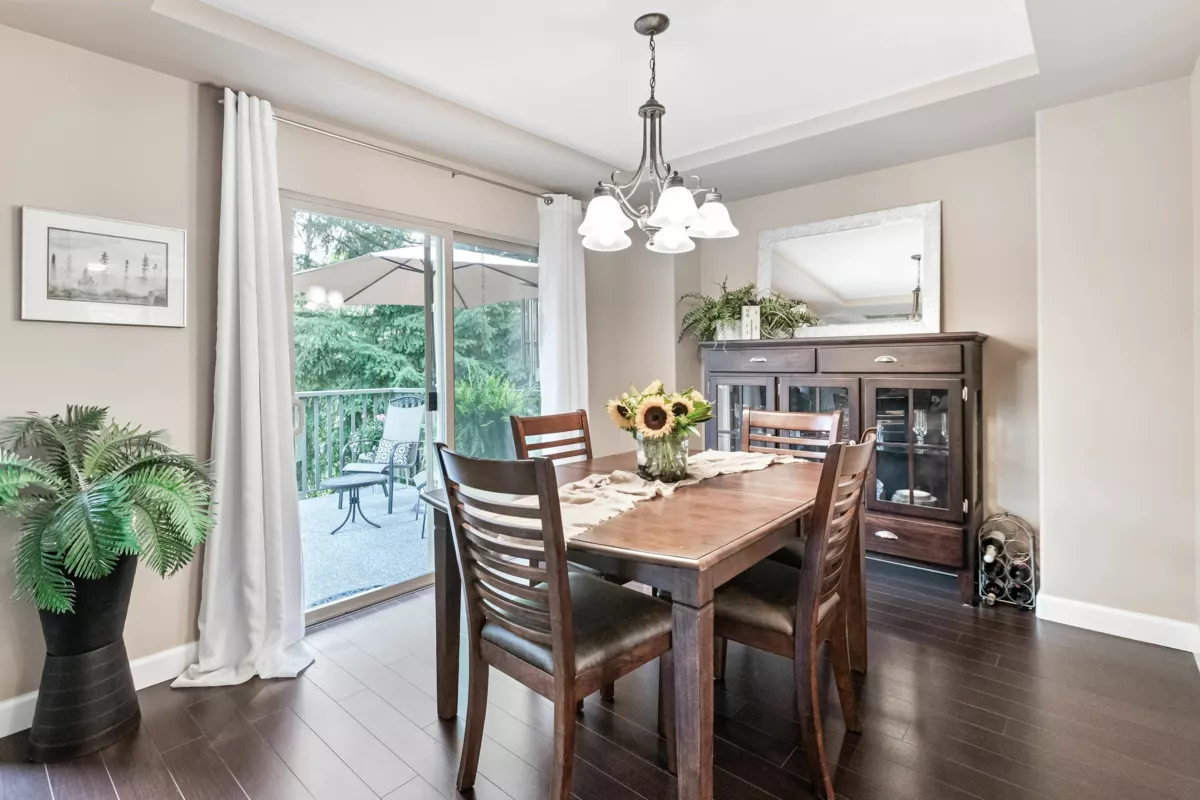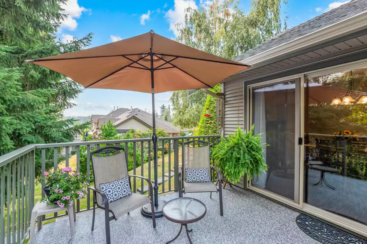 Welcome to Woodridge, one of the area's most sought-after communities! This duplex-styled 2 storey w/ a fully finished bsmt. offers 4 spacious bdrms. & 4 bthrms. And a layout designed for comfort & flexibility. Soaring ceilings in entry area & gas f/p in lvgrm. with sliders out to deck overlooking greenery &Kanaka Creek. Main floor primary suite or fam rm. Oversized upstairs primary suite with 2 W.I. closets with a spa-styled ensuite. Finished bsmt. with high ceilings, rec rm, 2 large bdrms, plus an office space & walk-out to covered patio from rec.room. Double garage PLUS xtra prkg. spot on d/way. This home combines the feel of a detached residence w/ ease of t/h living. Peaceful, private, & perfectly located- Woodridge is where lifestyle meets convenience. OPEN HOUSE Sunday 1-3pm