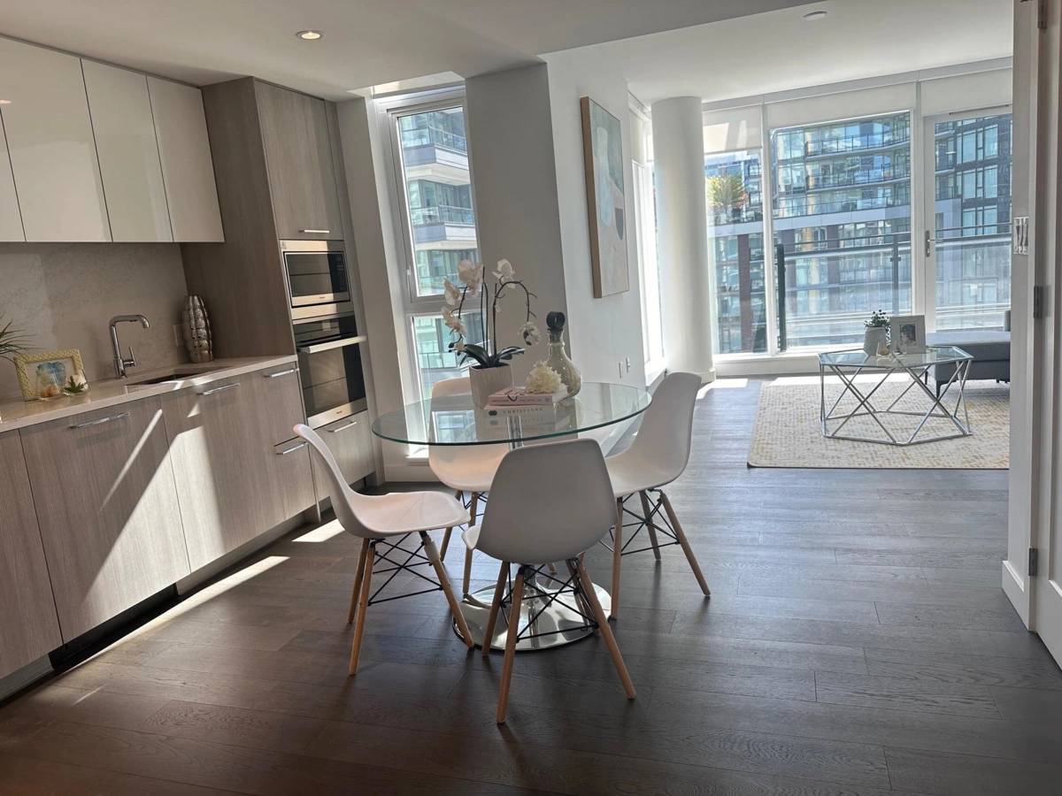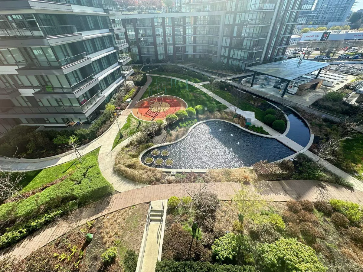 Pay 15% deposit , MOVE IN NOW, COMPLETE IN 2.5 Year! DOWN TO OWN Program! Viewstar, the largest water front community in Richmond. This perfect 2 bedrooms 2 bathrooms floor plan 940SFT with balcony , 1 parking, 1 Locker. Features high ceiling, open floor plan, extensive used hardwood floor thru out, high end cabinetry with Miele appliances, air conditioning, CLUB HOUSE, INDOOR SWIMMING POOL, GYM, Entertainment Room with ROOF GARDEN. Steps away to SKYTRAIN STATION. Close to SCHOOL, COSTCO, YAOHAN CENTRE, T&T, LANDSDOWN & RICHMOND SHOPPING MALL, RESTAURANTS, SEA WALK, COMMUNITY CENTRE, VERY CENTRAL LOCATION. MUST SEE!