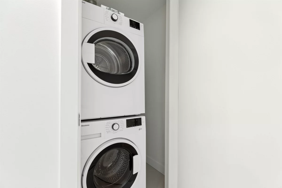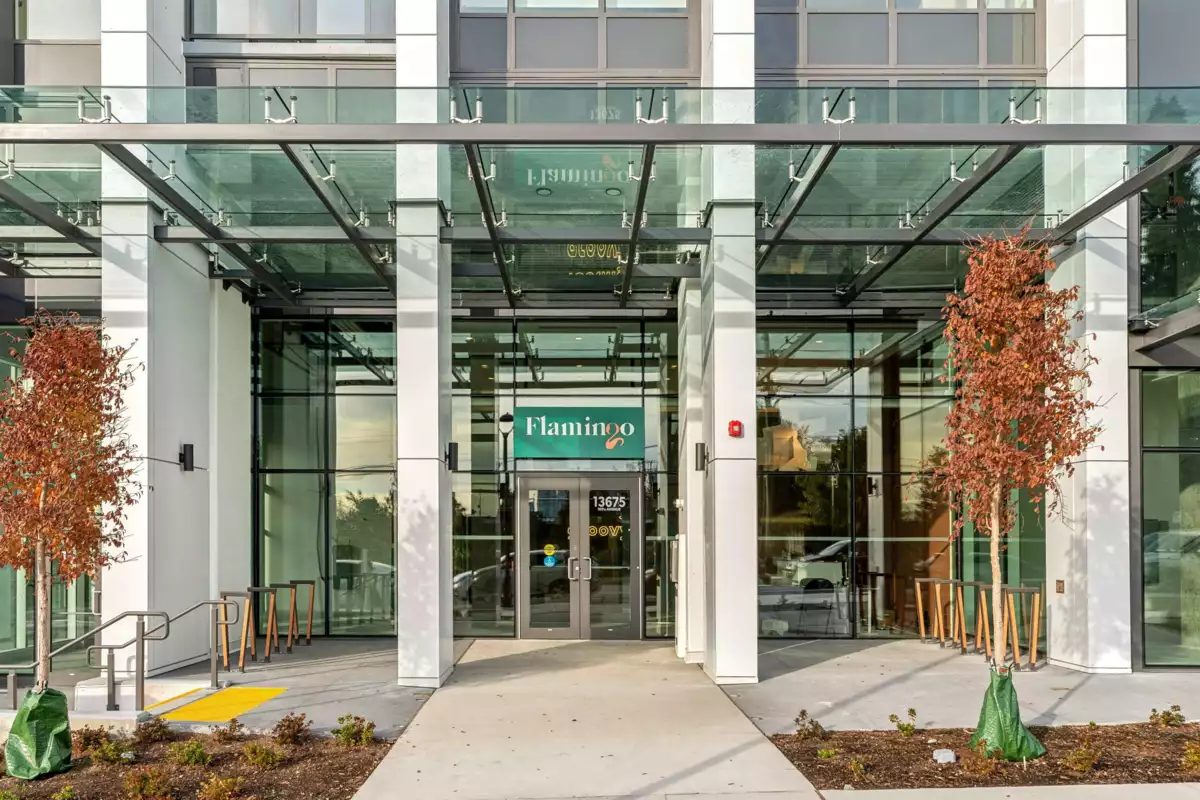 Welcome to Flamingo One, the newest icon in Surrey Central by renowned builder ITC. This bright and beautifully designed one-bedroom residence offers contemporary living with premium integrated appliances, elegant quartz countertops, sleek flat-panel cabinetry, and wide-plank flooring throughout. Enjoy year-round comfort with air conditioning and a heat pump, plus an expansive covered balcony that extends your living space. AMAZING AMENITIES -- curated amenities include a fireside lounge, BBQ terrace, social room with full kitchen, hobby studio, state-of-the-art fitness centre, theatre, children’s play area, and dog park. Ideally located just five minutes from Gateway SkyTrain, shops, 1 EV parking and 1 Storage locker included!