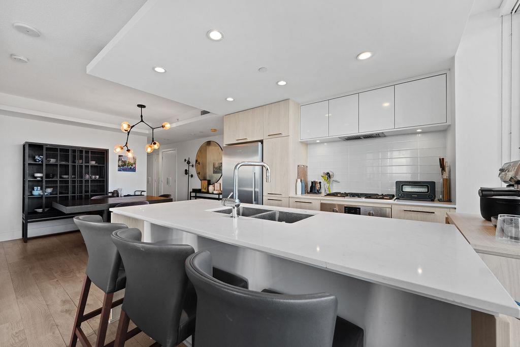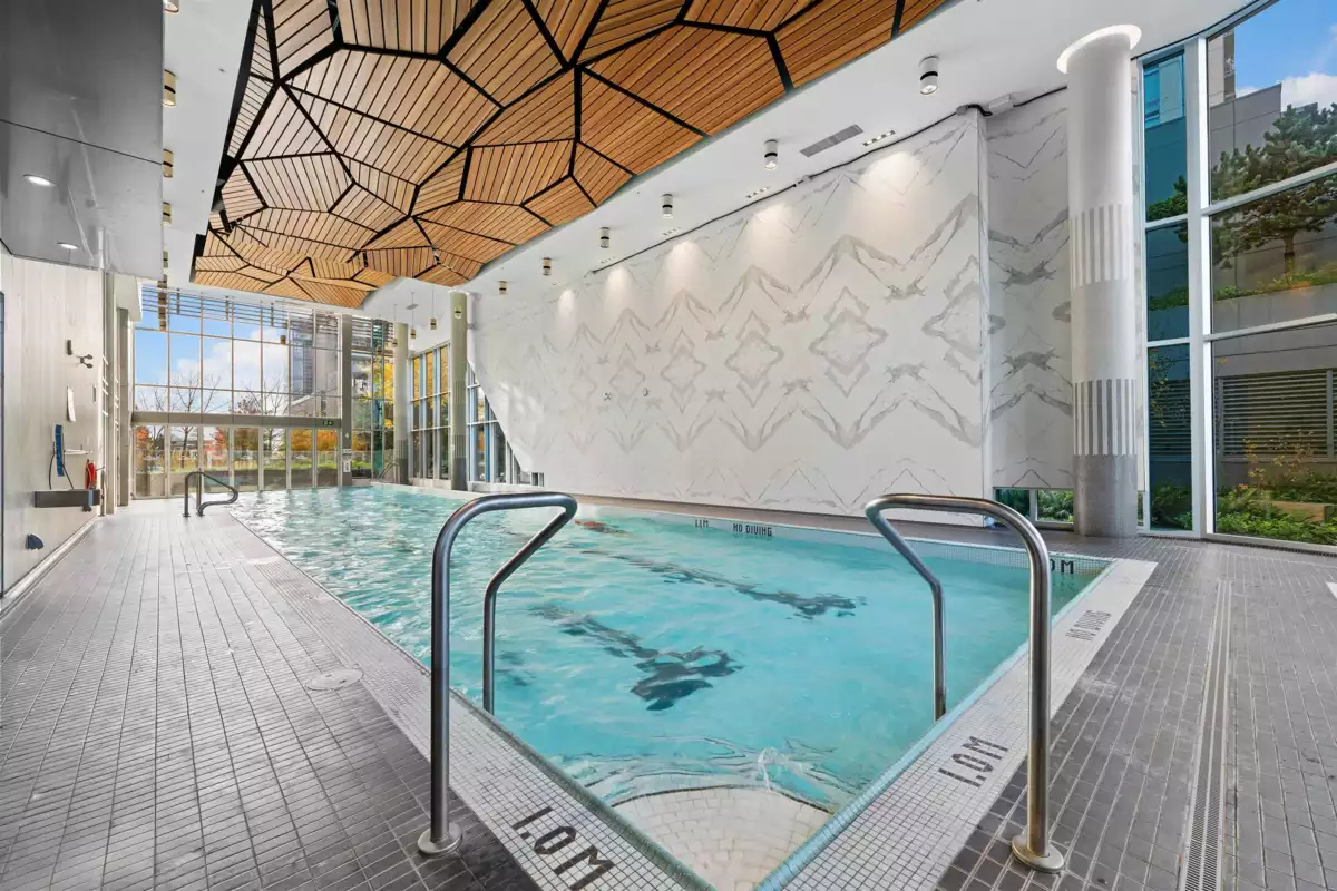 Discover this corner 2-bedroom residence offering bright multi-directional light and privacy. An open layout with wide windows showcasing city and mountain views, a modern kitchen with quartz counters, a gas cooktop, and a generous island, plus a welcoming dining area. The primary suite features ample closets and an ensuite with a walk-in shower, while the second bedroom is bright and flexible, paired with a full bath with a deep soaker tub. You get A/C, in-suite laundry, storage, underground parking, and a covered balcony with gas for BBQ. Residents enjoy the Denna Club’s state-of-the-art gym, 25m indoor pool, sauna, steam room, and lounge, offering resort-style comfort every day. All of this places you moments from trails, shops, and transit, making daily life effortless!