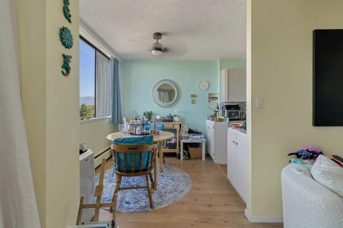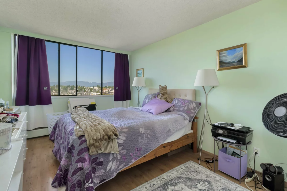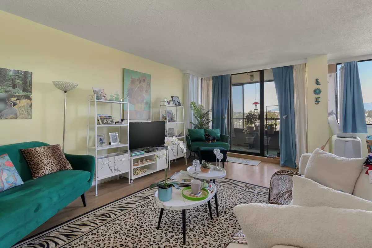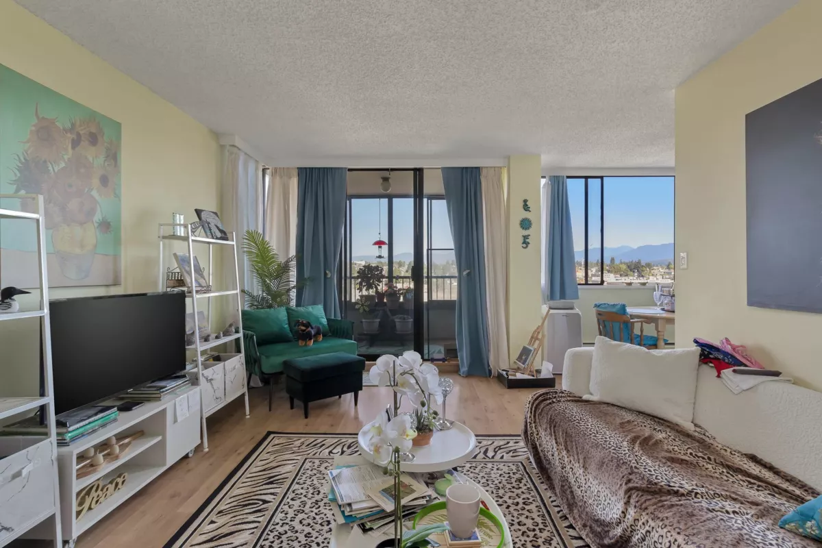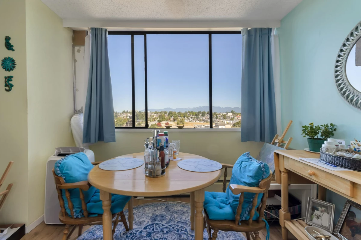 WELCOME TO THE STATESMAN – Built by BOSA, in the heart of New Westminster! This solid concrete high-rise offers peace of mind and unbeatable value. Your gorgeous 1-bedroom + large glass-enclosed solarium/den (nearly 700 SF total) sits high on the 10th floor, showcasing sweeping panoramic views. Enjoy a bright, open layout and a central Uptown location right next to Moody Park—walk to shopping, restaurants, grocery stores, and transit in minutes. Includes secure underground parking and a large storage locker. Well-managed, friendly building! Heat, hot water, and on-site caretaker included in the maintenance fee. Urban convenience meets solid investment! Book your private showing today!