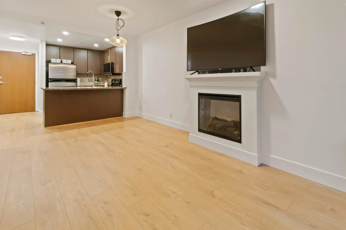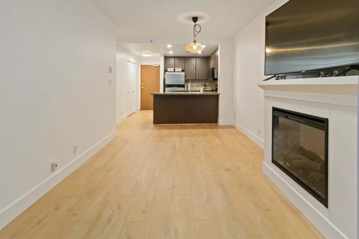Modern living in this beautifully designed condo featuring a spacious open-concept layout that maximizes comfort and functionality. Enjoy peaceful views of the lush garden terrace right from your private balcony-your own tranquil escape in the city. This well-maintained building, built in 2009, offers fantastic amenities including a fully equipped gym, relaxing sauna, landscaped garden, and a party room perfect for gatherings. The unit comes with one parking stall and one storage locker. Pet lovers are welcome-two small pets allowed, and investors will appreciate unrestricted rentals. Ideally located within walking distance to transit, Douglas College, recreation centres, restaurants, and shopping. renovated with new laundry, fireplace, blinds, toilet,micr, in2025.open house Nov 29th 2-4pm