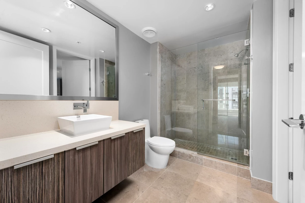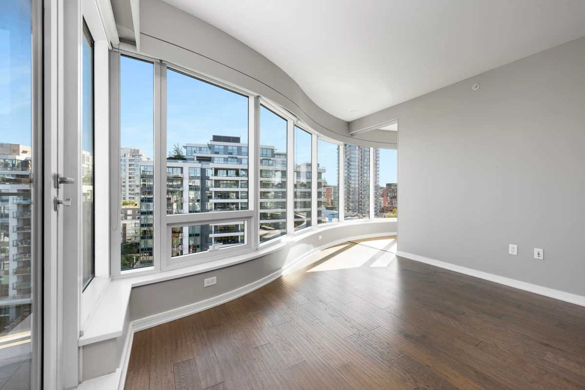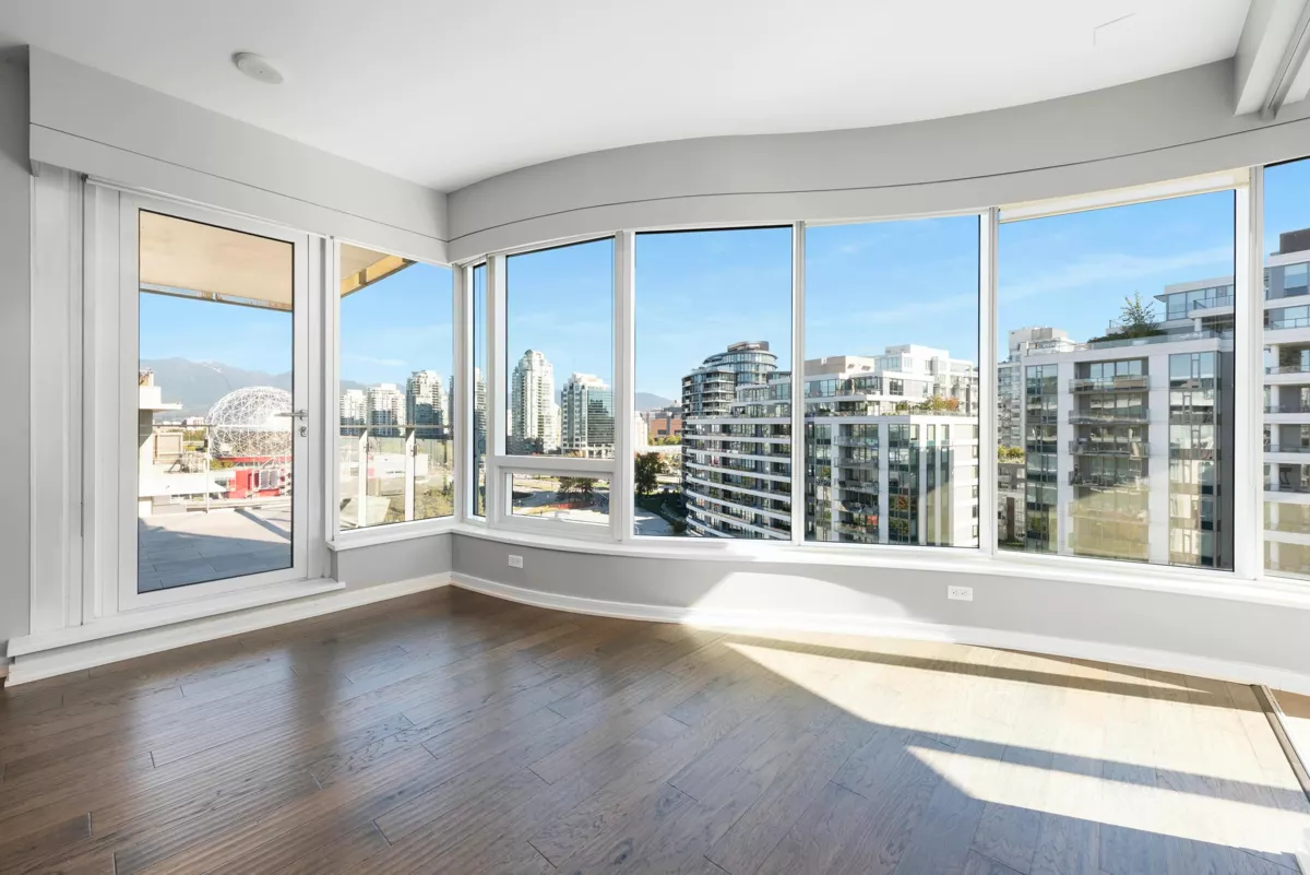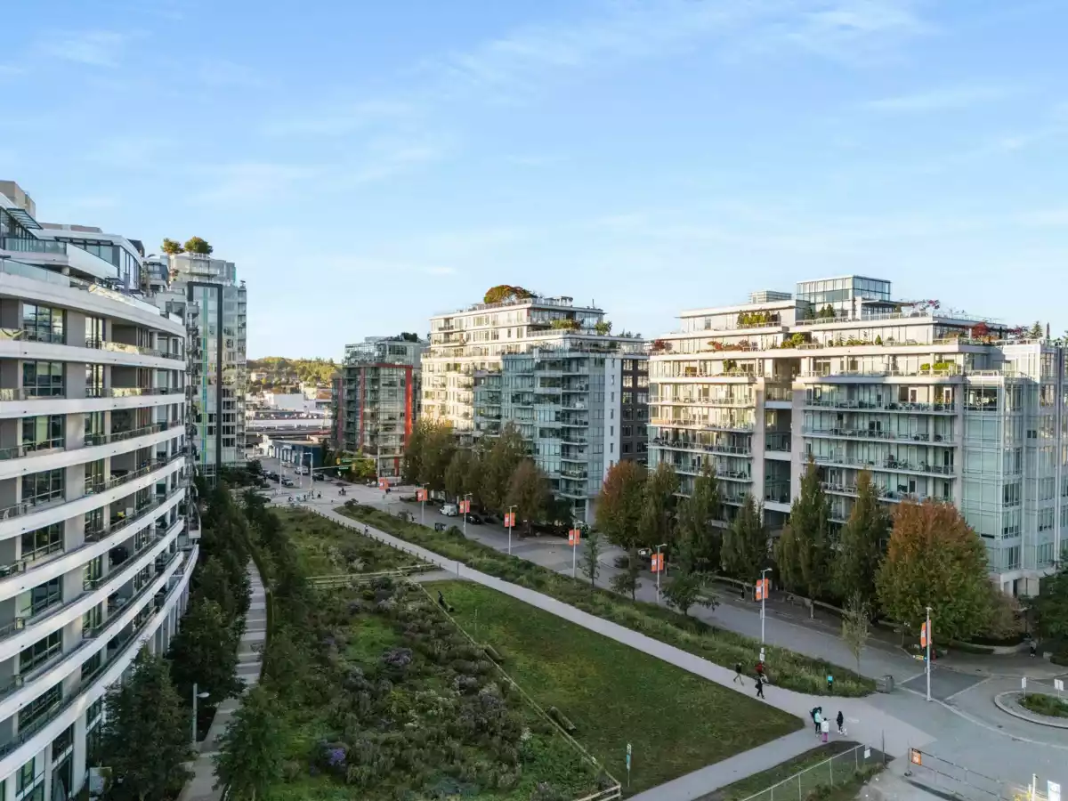 Spacious 1,200 sq. ft. northeast corner home with panoramic views of the park, seawall, Science World, and North Shore mountains. This home offers two generously proportioned and well-separated bedrooms, two full bathrooms, an office adjacent to the living room, and a versatile in-suite storage area off the kitchen. Expansive principal rooms comfortably accommodate full-size furnishings, while abundant windows invite natural light throughout. A spacious corner balcony provides the ideal setting for outdoor dining or relaxation, and a full-size parking stall. Residents enjoy exclusive access to the Gold Medal Club with pool, hot tub, steam room, sauna, gym, and yoga studio—plus the seawall right at your doorstep. OPEN HOUSE: Oct 25/26 Sat/Sun 2pm-4pm