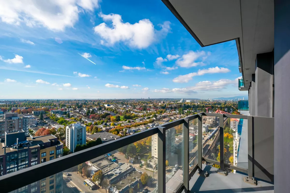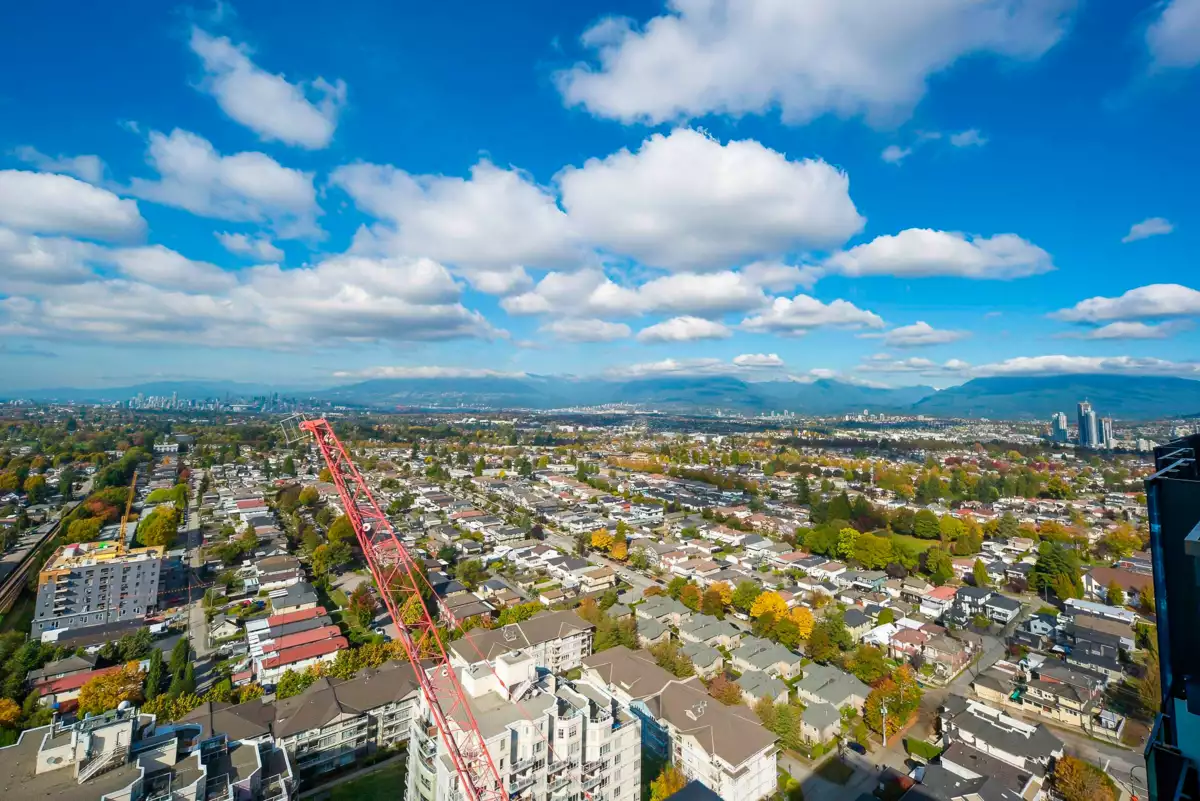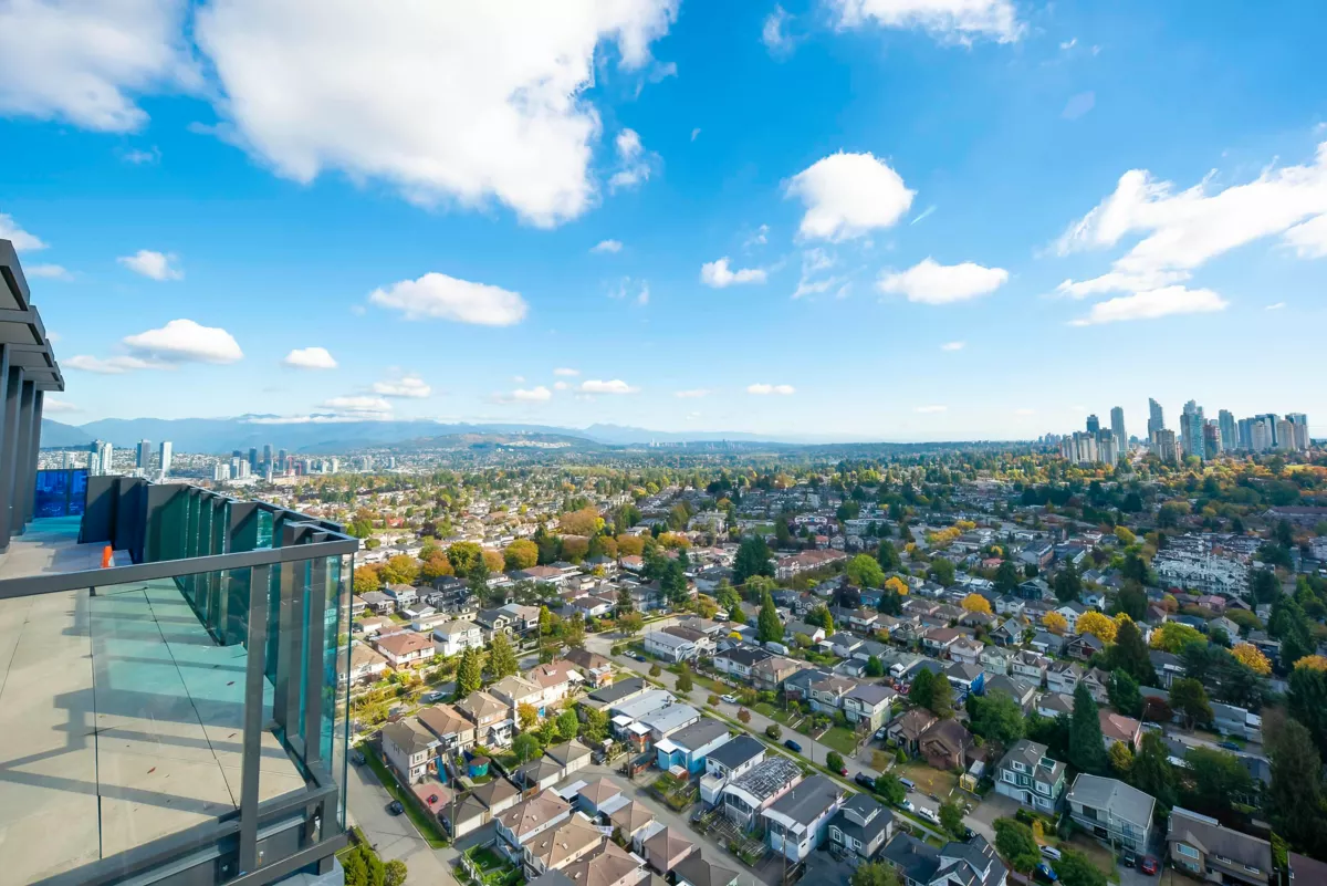 Located in the prestigious JOYCE development by Westbank, this unit boasts partial views of the mountains and city.This 3 year old 2 Bed + DEN is the necessity of your comfortable living. Air-Conditioned Suite offers amazing mountain and city view. Open-concept kitchen with integrated appliances, a gas cooktop,quartz countertops, and laminate flooring. Rooftop {30th floor) amenities include a gym,recreation/dining room, rooftop garden + playground and bbq area, study rooms, music room. Conveniently located near shopping, dining, bus station and Joyce-Collinwood Skytrain station,easy to get to downtown,Vancouver and Burnaby!Don't miss out this amazing opportunity to invest or to live by yourself.Call today for your private showing.Open House,Mar 30,2-4pm.