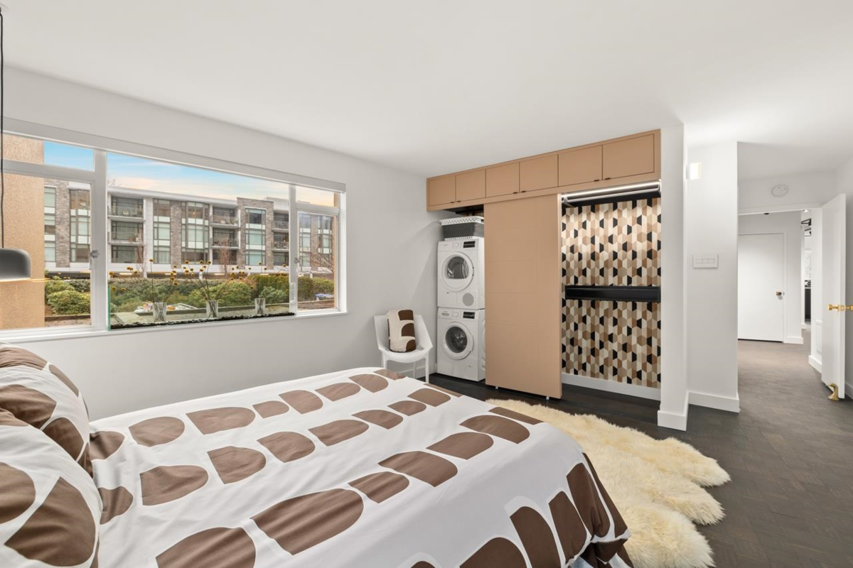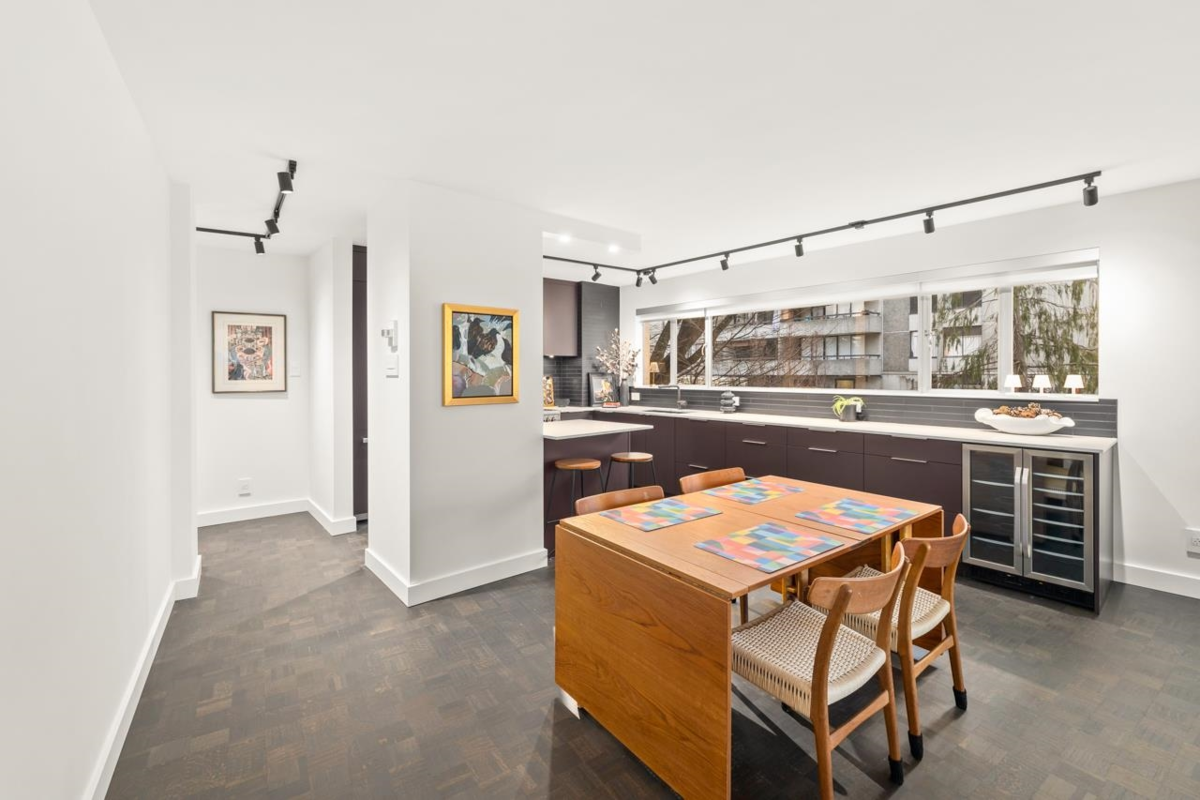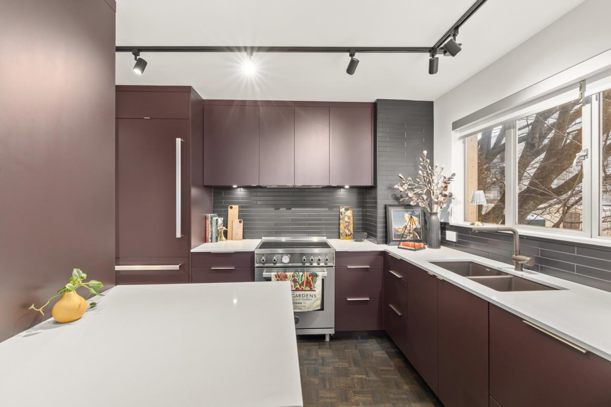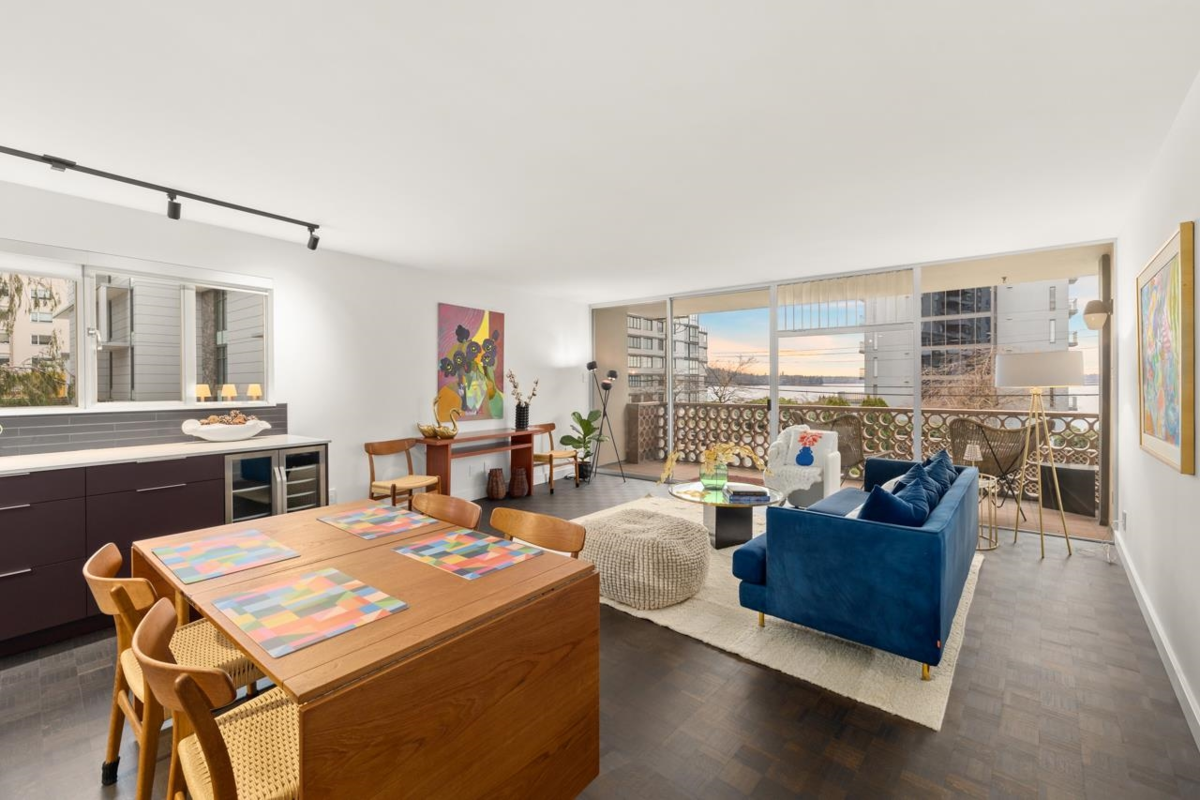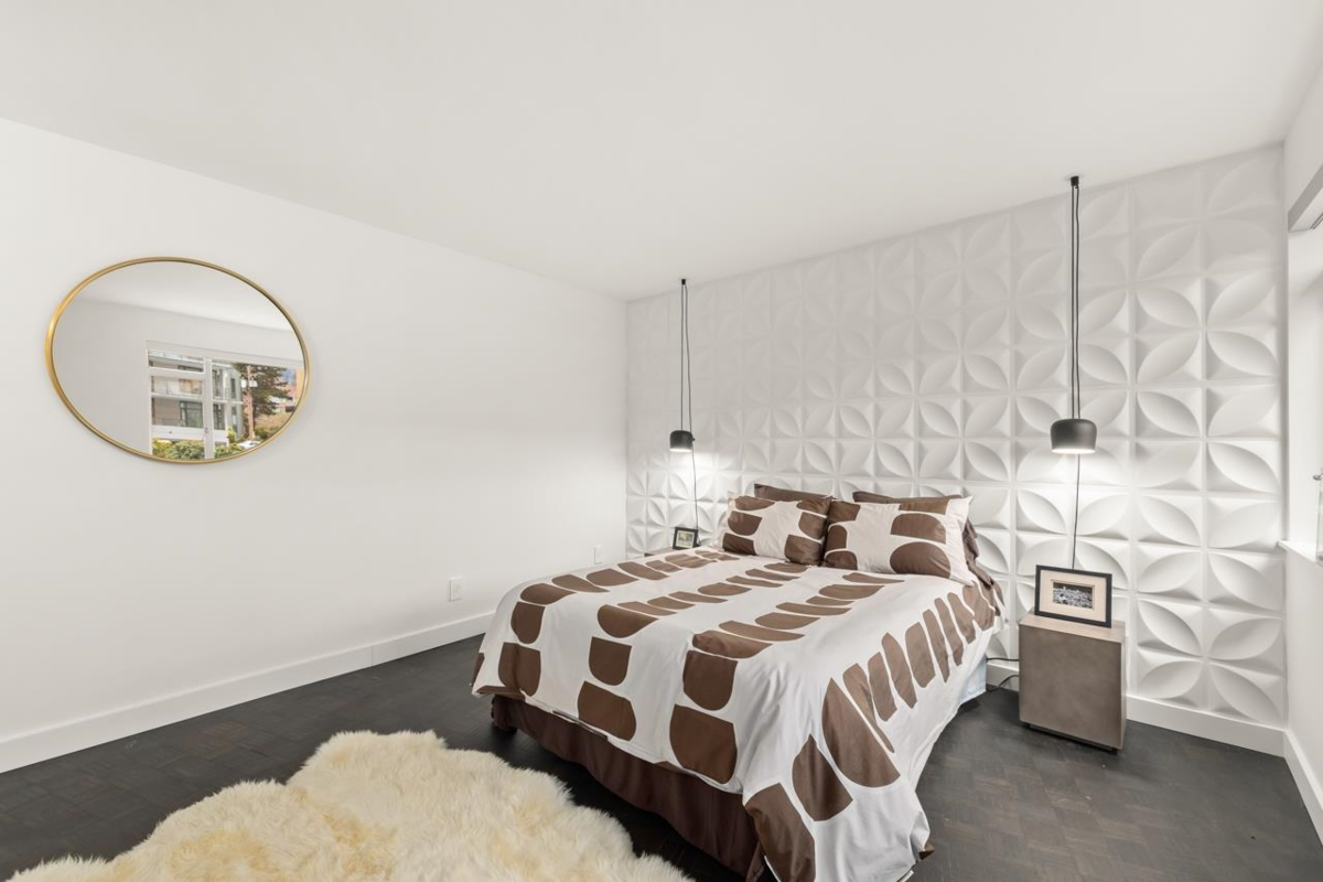 This corner unit gem was FULLY and immaculately reno'd in 2024 to echo the building's 1961 roots. It boasts windows on three sides, gorgeous Italian Bertazzoni appliances (including a built in wine fridge), all new lighting, Emtek Hardware, an opened up and expanded kitchen, two fully redone ensuite bathrooms, closet built-ins, in-suite laundry, window blinds, re-finished original oak hardwood floors, in floor heat and more! There hasn't been a detail missed in this renovation. New elevator & fully re-piped bldg. Views to the ocean are spectacular from the unit and from the massive roof top deck. Concrete-built, The Crescent is a unique jewel along the West Van waterfront. Close to the Seawall, shops, restaurants, beach! Opens: Thurs, Oct 30, 10-12 & Sun, Nov 2, 2-4