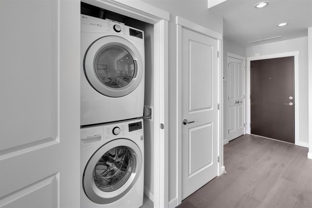 Eton by Polygon! A rare ground level large 1 bed, 1 bath unit with patio facing the beautiful garden and park. Spacious and open design with high end appliances. Step out to enjoy the private garden and sunshine! Easy to show!