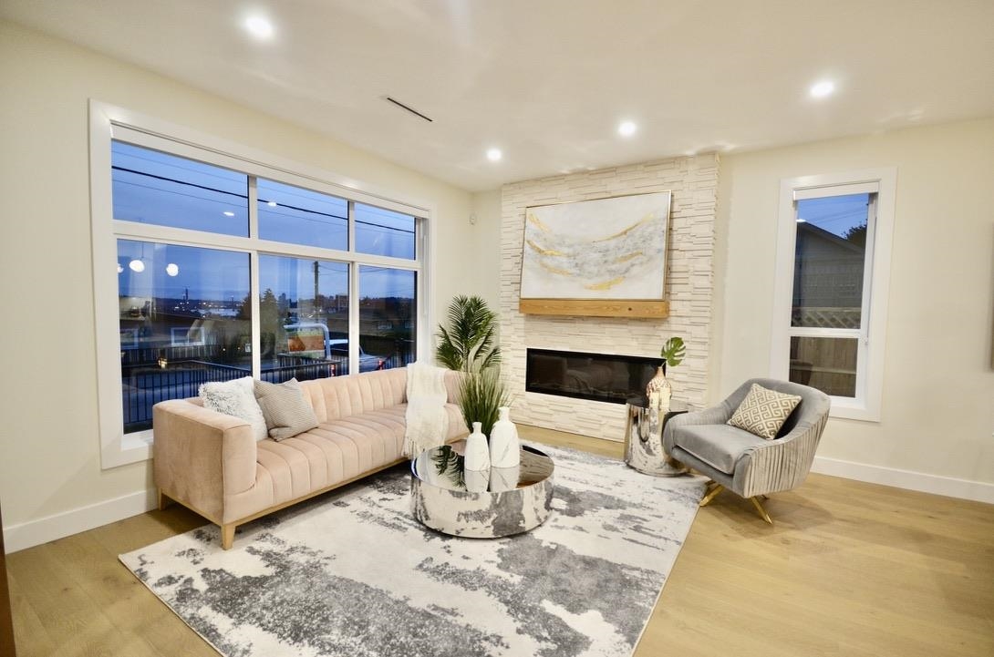 ROOF TOP WITH PANORAMIC FRASER RIVER VIEW !! Experience modern elegance in this brand-new 3-bedroom, 3-bathroom home with an open-concept layout, view of South Fraser from all levels , radiant hot water heating, and air conditioning for year-round comfort. The chef’s kitchen features quartz countertops, stainless steel appliances, and sleek cabinetry. Enjoy stunning Fraser River views from all levels, ideal for entertaining or relaxing. Large windows fill the space with natural light, highlighting the home’s craftsmanship and stylish finishes. Conveniently located near parks, schools, shopping, and transit — this home blends luxury, comfort, and location perfectly. Two side by side parking plus huge crawl space.