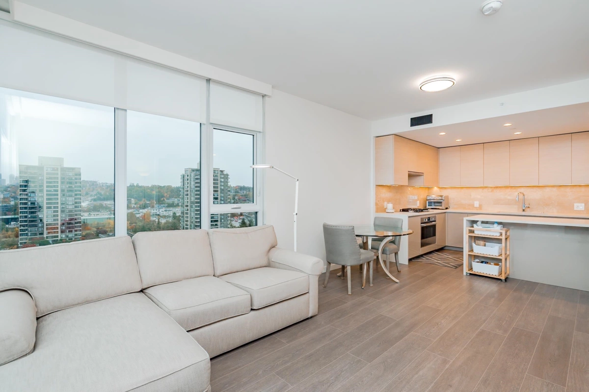 Gilmore Place by award winning developer Onni is home to this Corner Unit 2 BED + 2 BATH with city and mountain view. You will love the increased privacy & space thru this very efficient floor plan. 180-degree East-facing views create a stunning backdrop for the exquisite details throughout, including quartz countertops, white oak floors & integrated Fulgor Milano & Blomberg S/S appliances. Access Top-tier amenities: 24hr concierge, indoor/outdoor pool, fitness, bowling alley, theatre room, kids' playrooms, club/lounge/games area, work/study pods, rooftop bbq terraces & even a separate pet-friendly park. This home includes 1 parking, a Storage & a bike storage. Located steps from the Brentwood skytrain station, Shops, Cafes, Grocery, Restaurants and T&T Super Store.