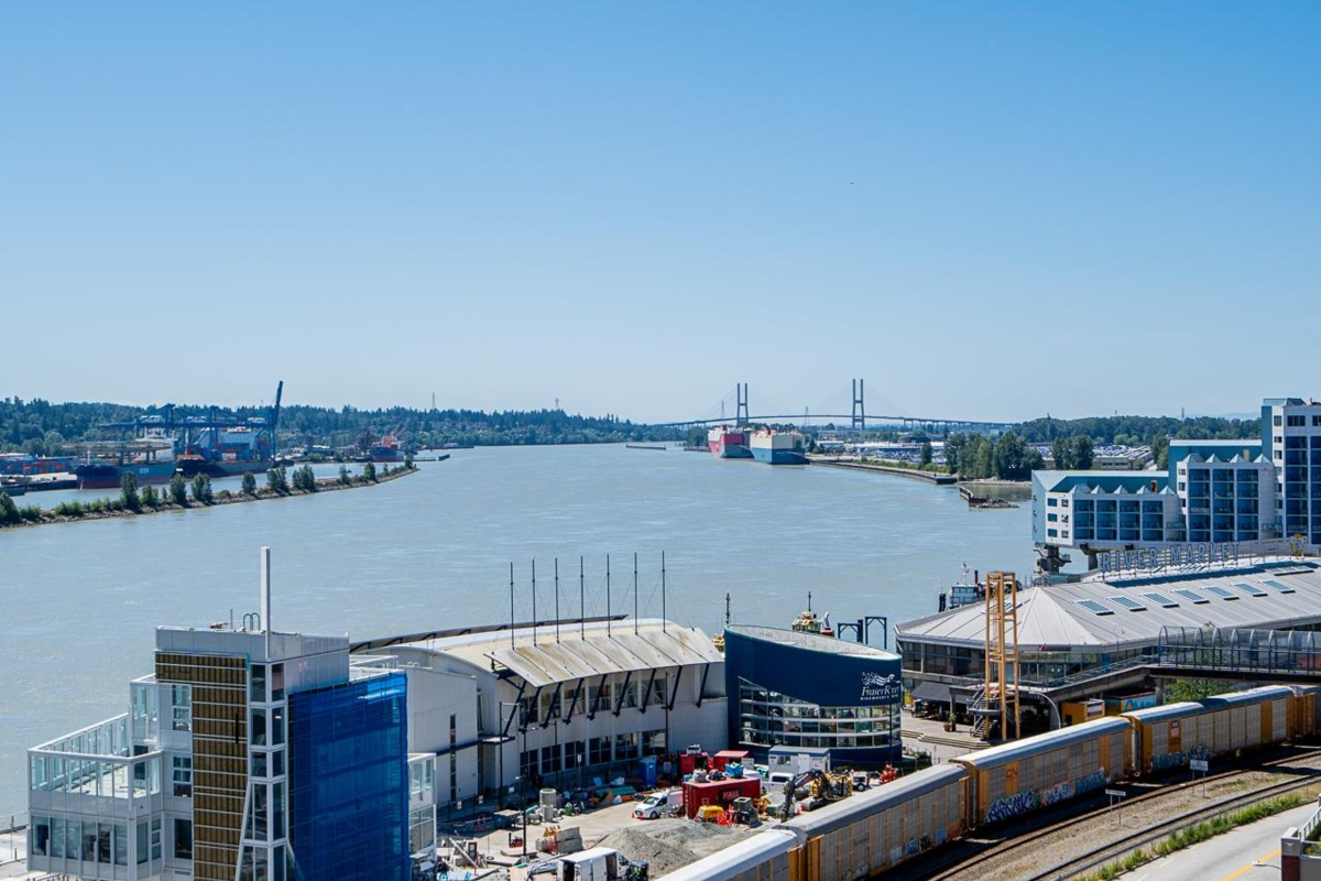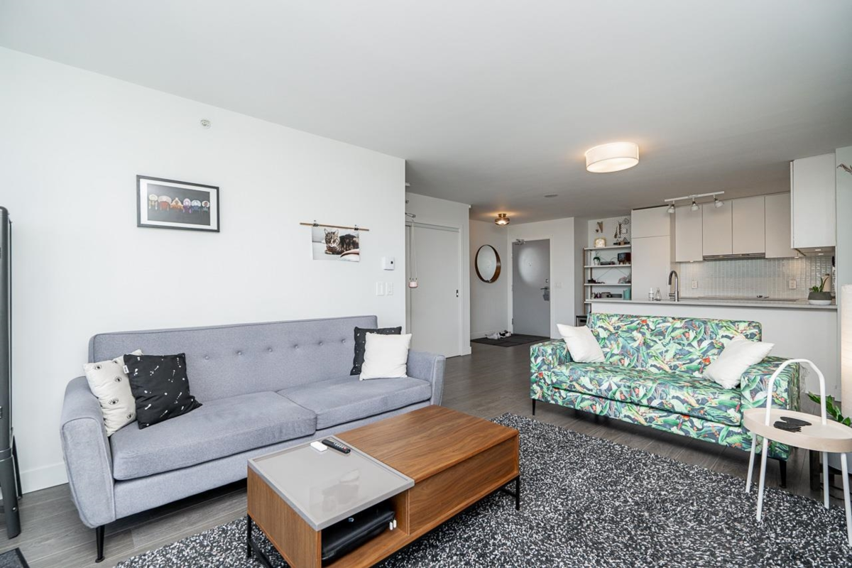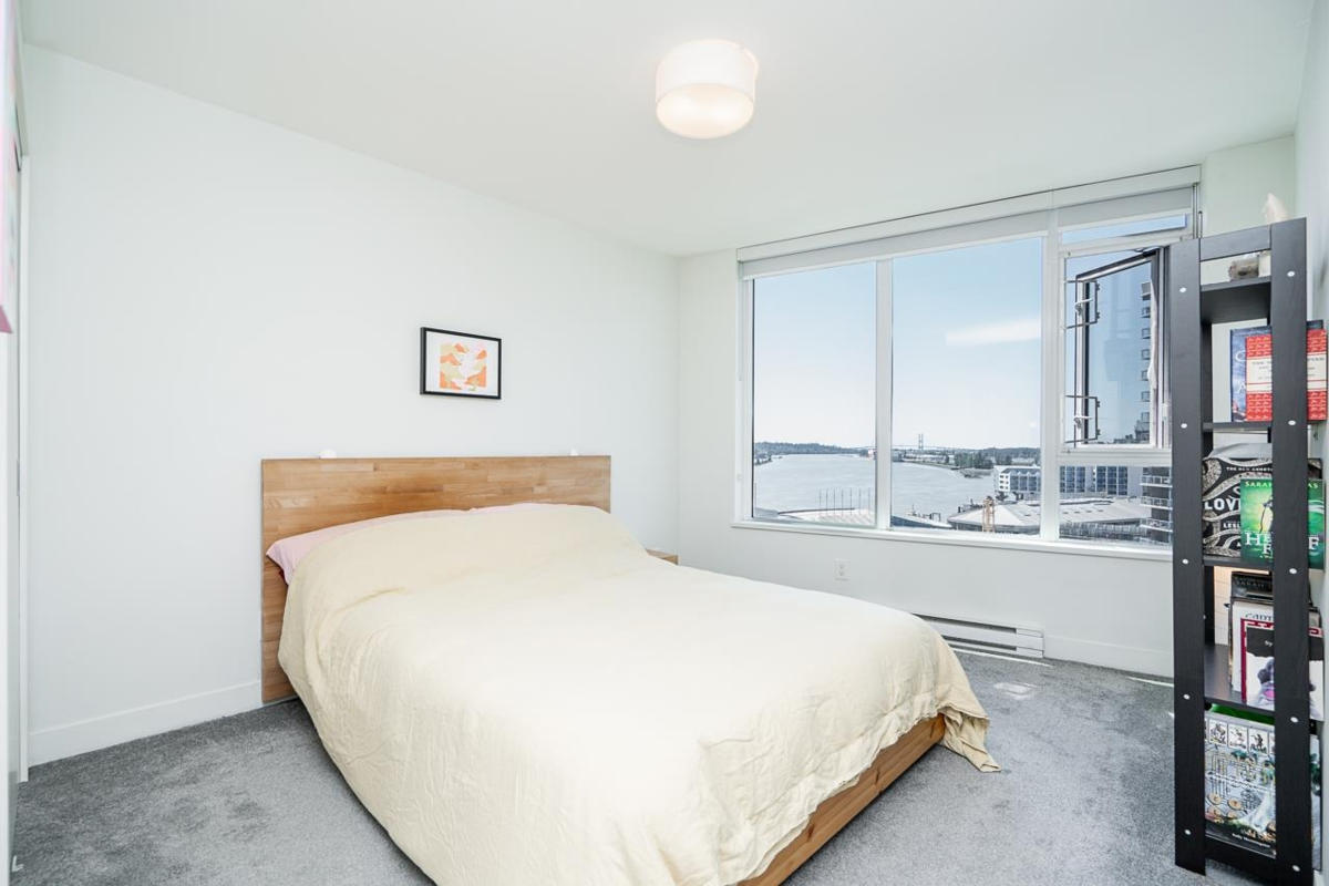 Ready to level up your living situation? Step into this rarely available, fabulous 2-bed, 2-bath condo at Trapp + Holbrook, right in the city?s heart! Perfect layout w/ separated bedrooms for privacy, stunning river & city views, and an open kitchen/dining/living area with a huge island perfect for parties. The master suite boasts double sinks, while both bedrooms have ample closet space. Enjoy the amenities room, gym, rooftop garden, parking, and storage. Pet-friendly and rental-friendly policies make it easy to live your best life. Walk to the skytrain, shops, and more. On-site luxuries include dining at El Santo's, a coffee bar, spa, and pet care. This isn't just a condo; it's a lifestyle upgrade. Make it yours today!