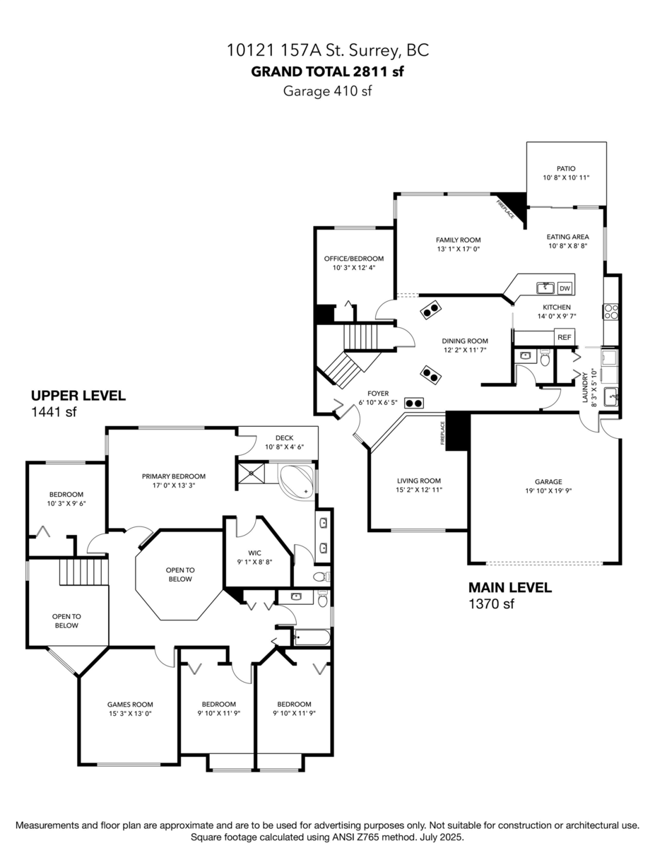 | Above Level | Primary Bedroom | 17' x 17' ft |