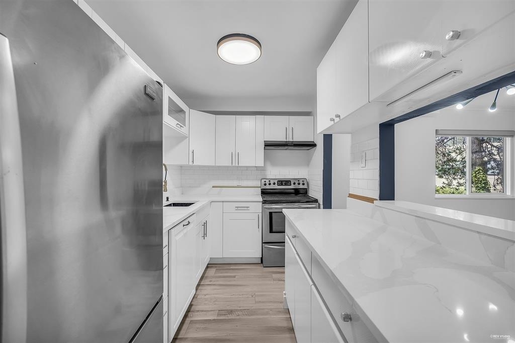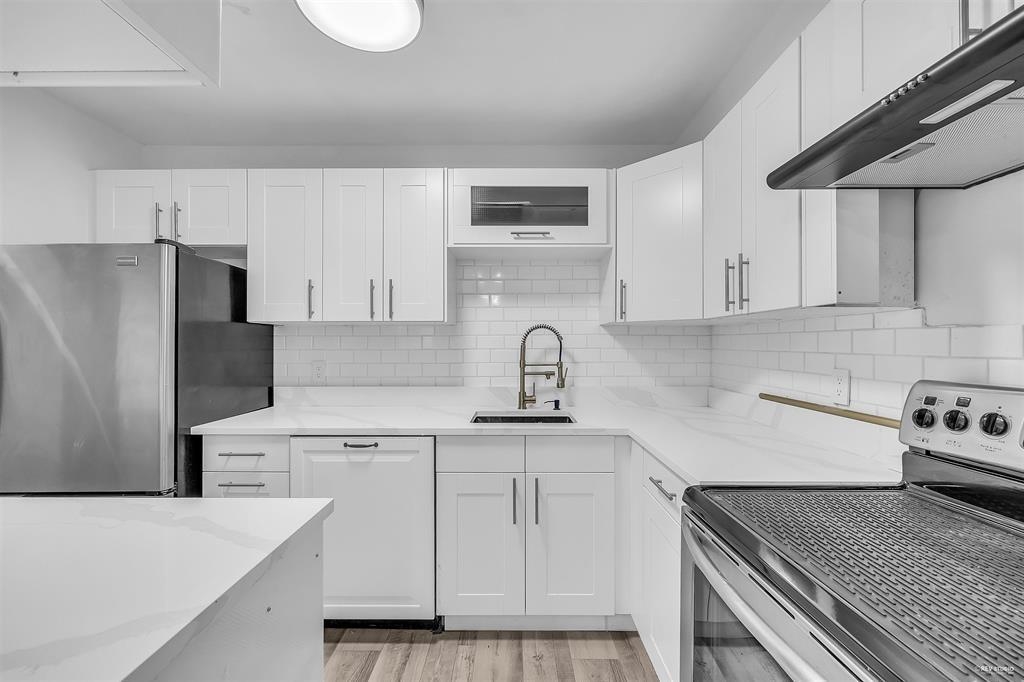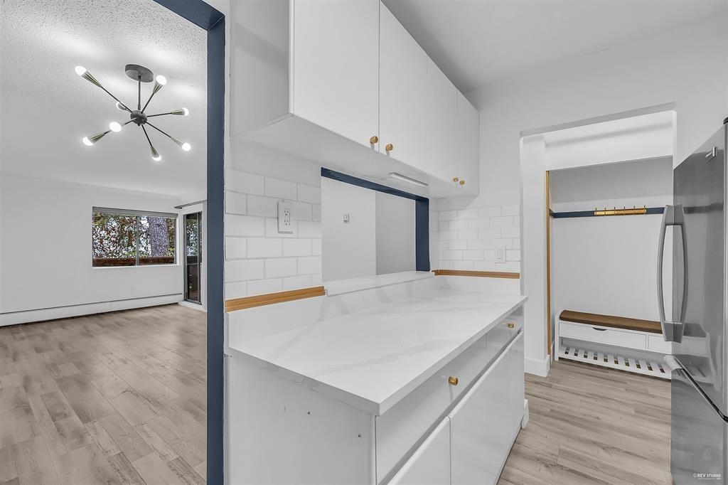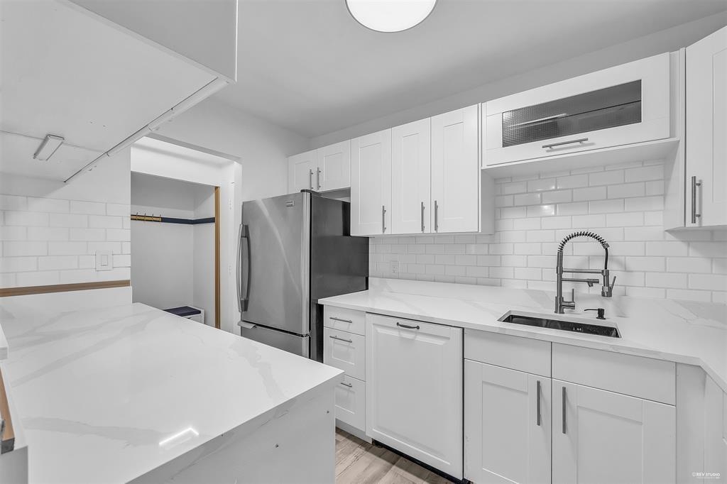 Step into this fully renovated 2 bed, 2 bath ground-floor corner unit offering modern finishes and unbeatable convenience. Upgrades include stainless steel appliances, brass fixtures, fresh paint, new flooring, and fully redesigned kitchen and bathrooms. Enjoy private entry via the nearby strata exit and relax on the spacious 236 sq.ft. patio. Located steps from restaurants, bars, White rock hospital, and top schools in the Semiahmoo Secondary catchment. Close to the waterfront for scenic strolls and recreation. An open public parking lot beside the building adds extra convenience. Photos are virtually staged.