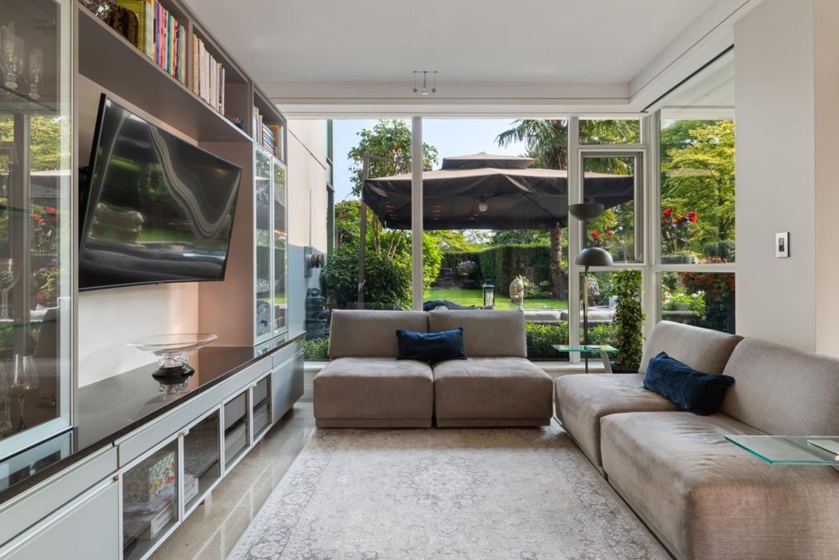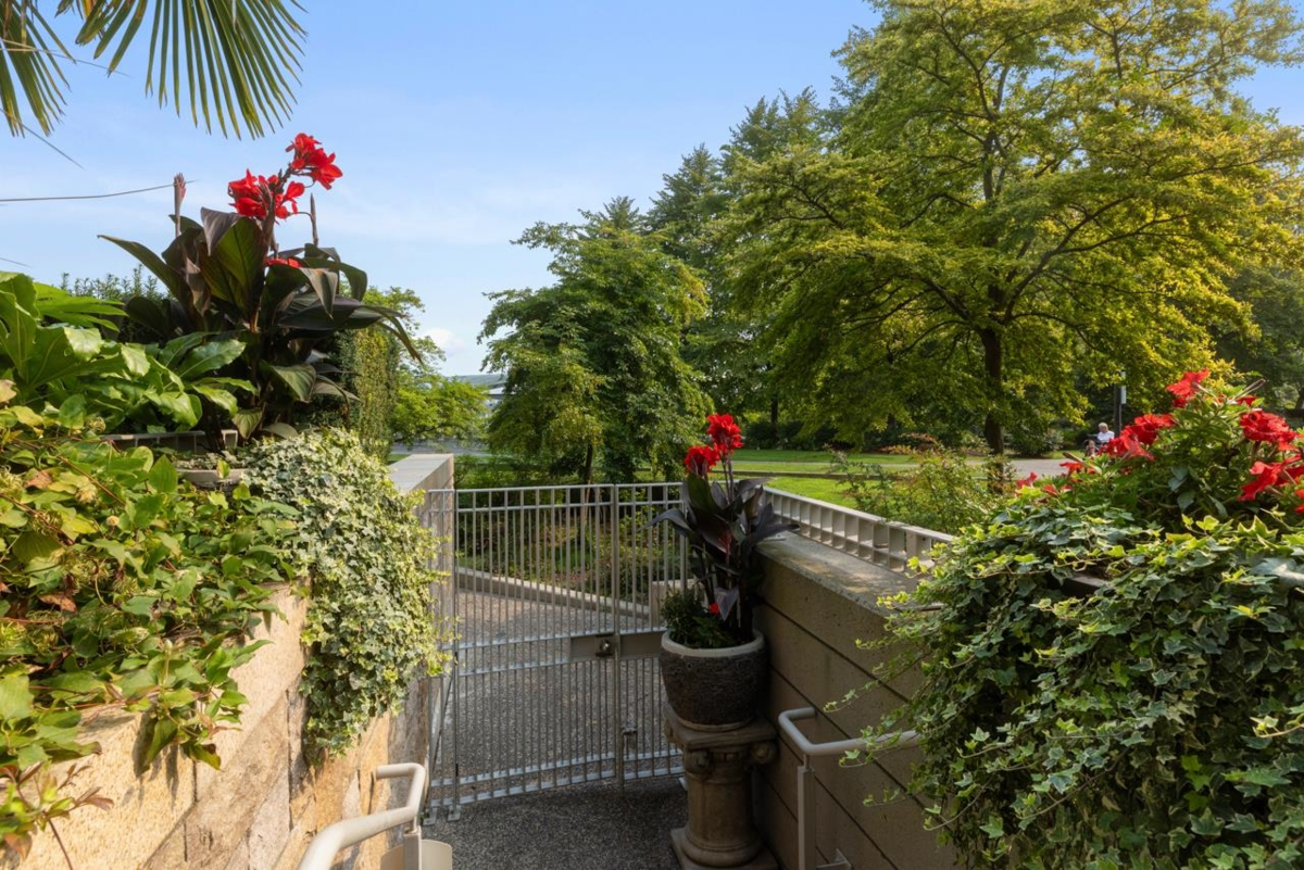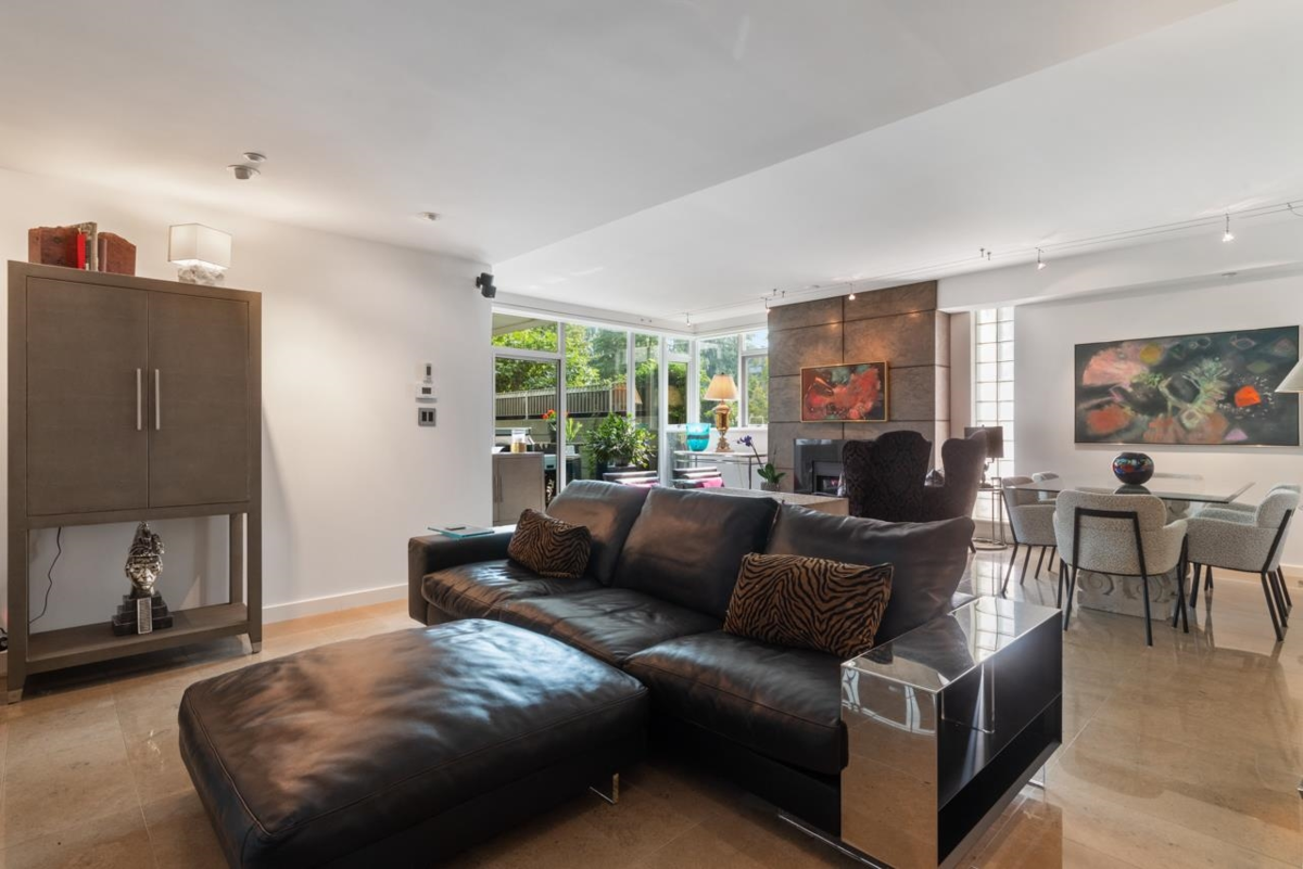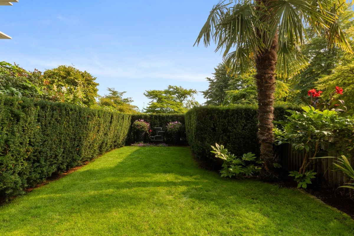 EXCLUSIVE WATERFRONT TOWNHOUSE AT BAYSHORE GARDENS II, JUST STEPS TO STANLEY PARK. Hard to believe this exists but it does! Imagine having your own private garden gate leading directly into parkland and onto the Seawall. You're surrounded by trees, away from the hustle and bustle, yet within easy walking distance of every imaginable amenity. Downsize without compromise, with 3 PARKING STALLS, 12' x 8' locker, and an incredible 1,300sf+ private patio/garden for your green thumb and your pets (2 dogs/cats). Tastefully renovated and laid out on just two levels, the expansive main floor flows seamlessly out onto the extraordinary outdoor space.The upper level enjoys exquisite park, marina and water views from the stunning primary suite, 2nd bedroom/office and lovely upper deck. SO SPECIAL!