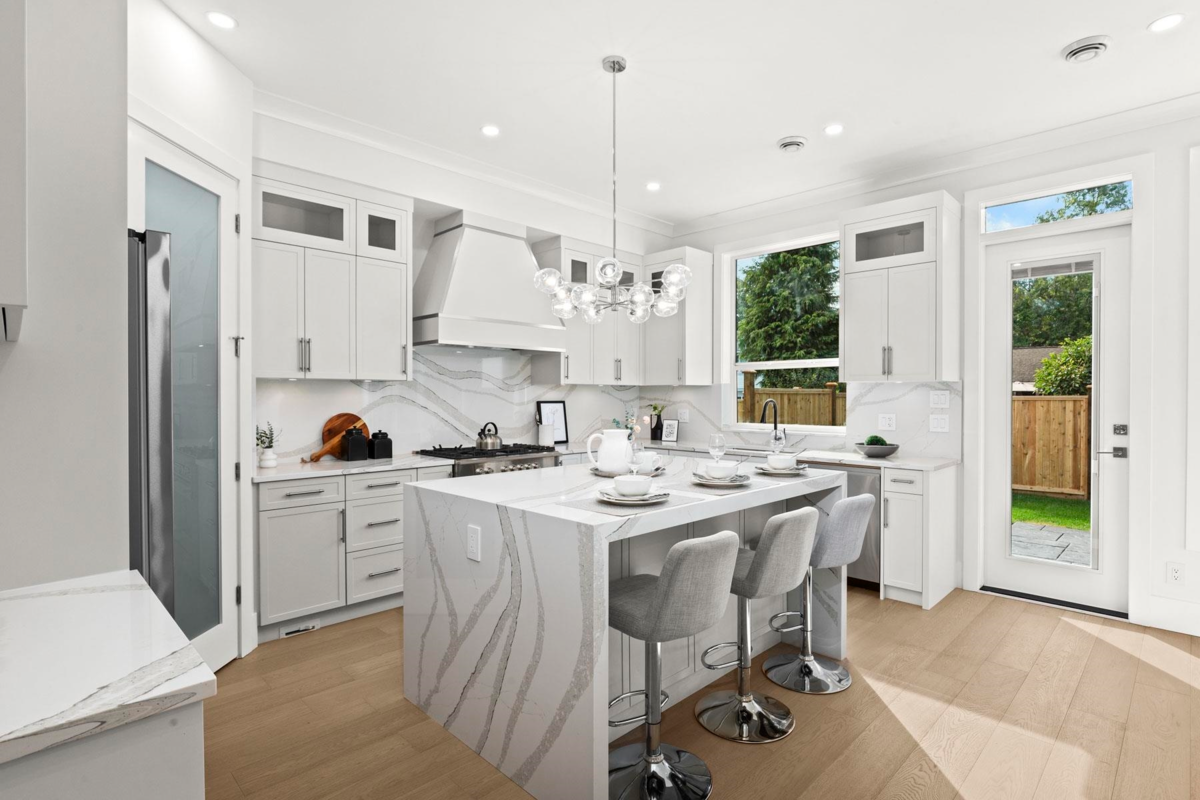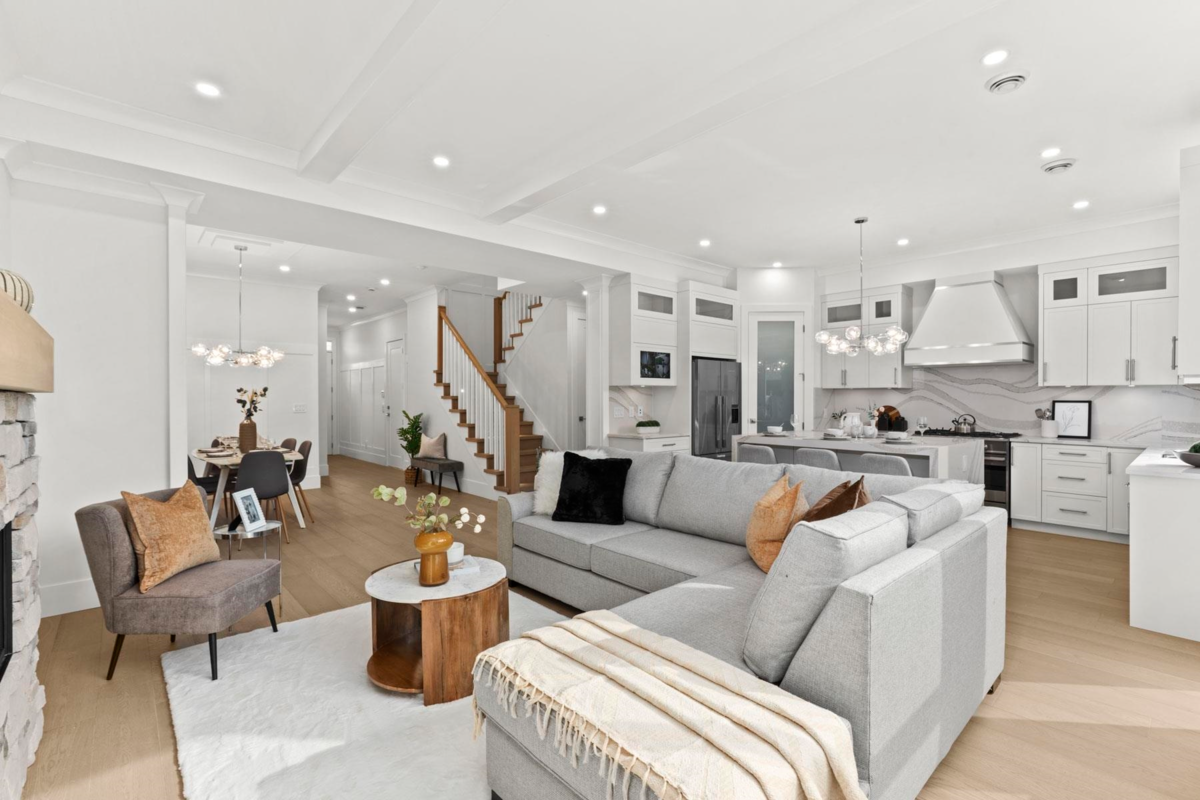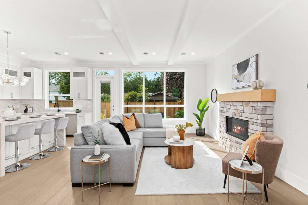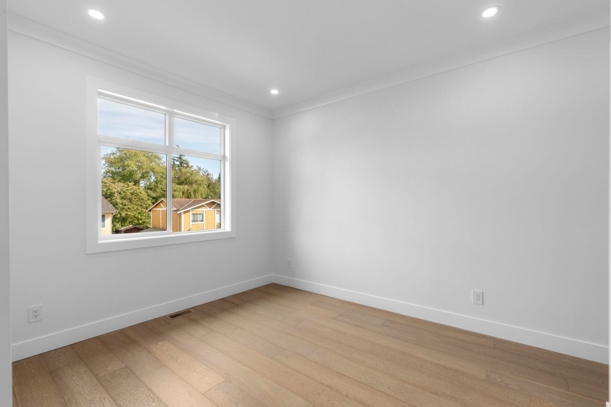 OPEN HOUSE SAT & SUN 2-4 PM (NOV 15, 16) Welcome to Semiahmoo Living – a brand-new, beautifully designed DUPLEX offering space, privacy, and value. Featuring 5 bedrooms and 4.5 baths, this home boasts 4 spacious upstairs bedrooms plus a large bonus living area, and a main floor bedroom with ensuite – ideal for multi-generational living. Enjoy a private, fenced backyard perfect for family gatherings. Stylish architecture, hardwood flooring throughout, A/C, and a thoughtful layout complete the home. Located in the coveted Semiahmoo Secondary (IB) catchment. All the benefits of a new detached home at a much more affordable price. Built by award-winning DVL Homes with 2-5-10 warranty. A rare find — don’t miss out!