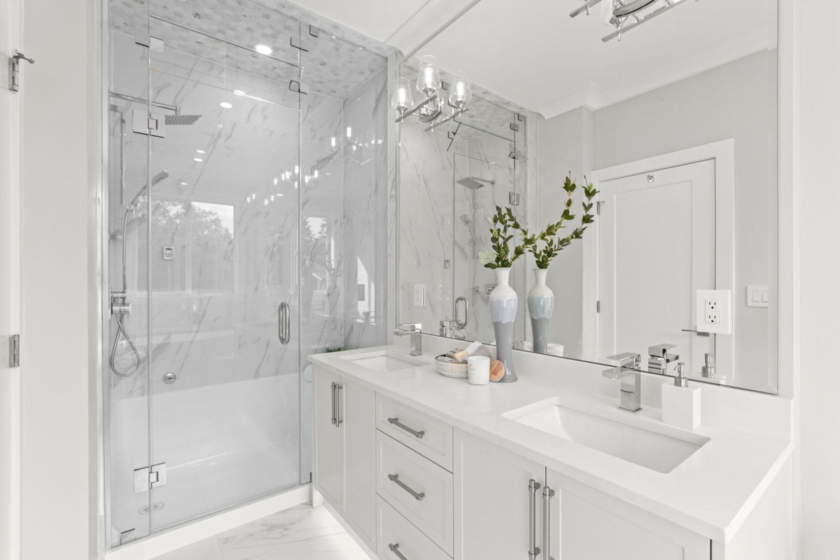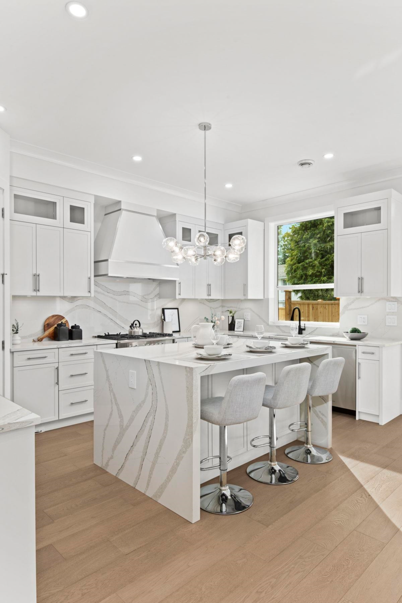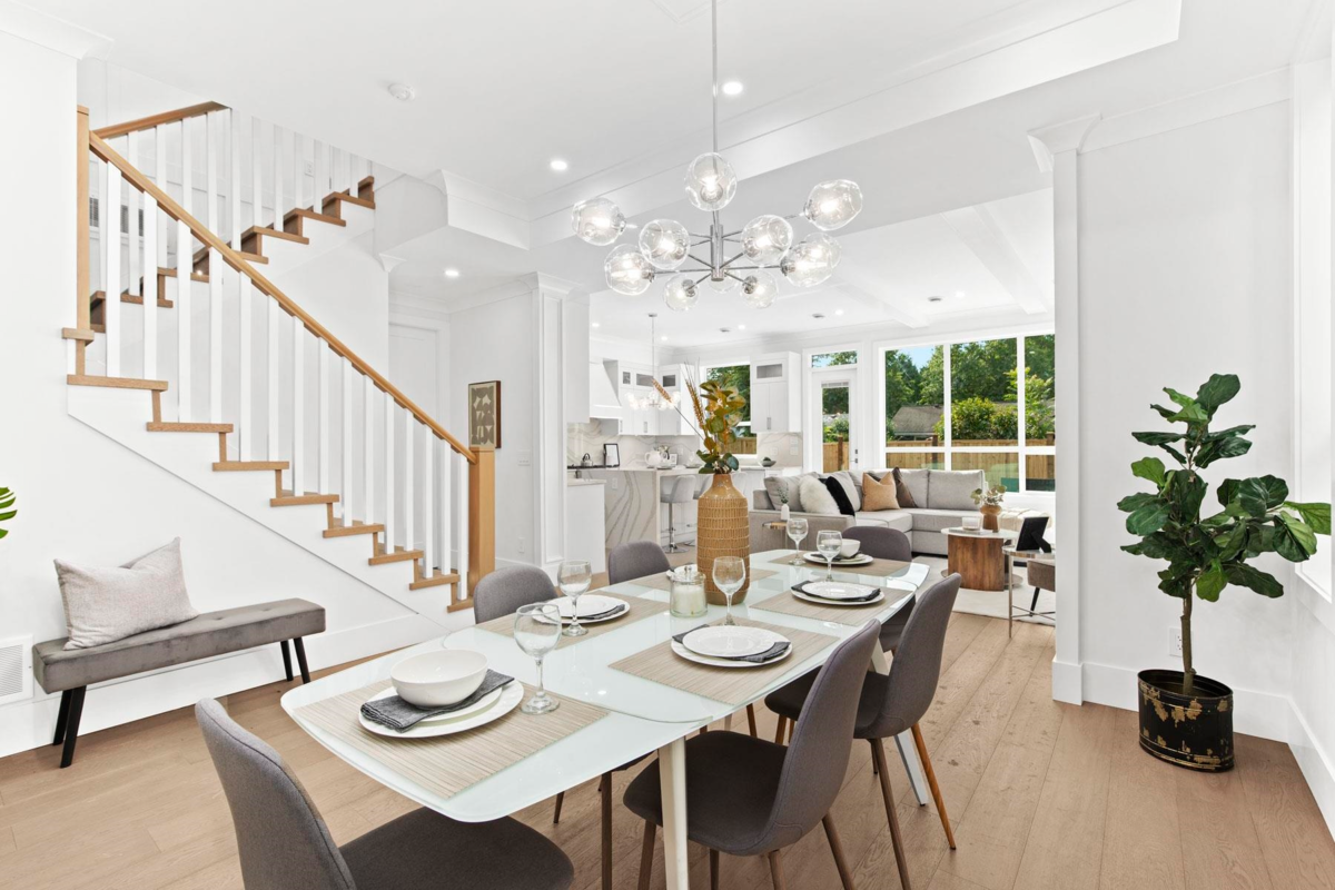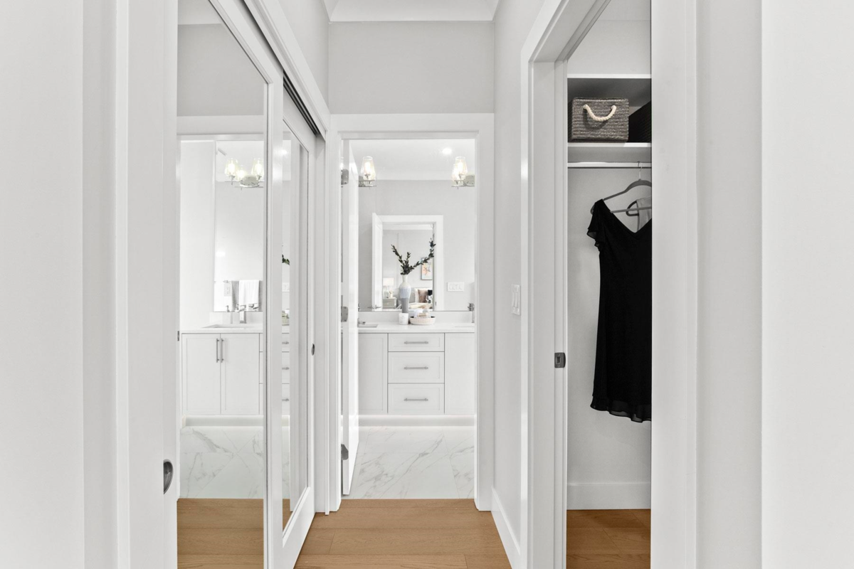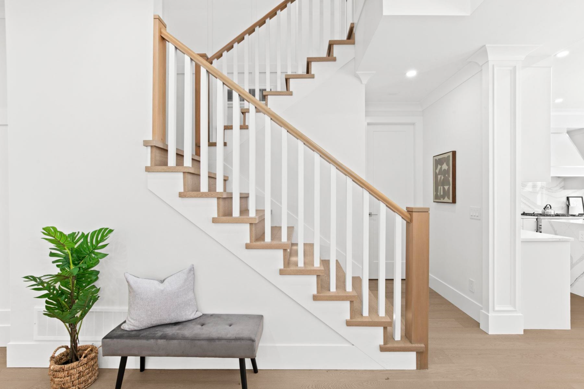 OPEN HOUSE SAT & SUN 2-4 PM (NOV 15, 16) Welcome to Semiahmoo Living – a brand-new, beautifully designed DUPLEX offering space, privacy, and value. Featuring 5 bedrooms and 4.5 baths, this home boasts 4 spacious upstairs bedrooms plus a large bonus living area, and a main floor bedroom with ensuite – ideal for multi-generational living. Enjoy a private, fenced backyard perfect for family gatherings. Stylish architecture, hardwood flooring throughout, A/C, and a thoughtful layout complete the home. Located in the coveted Semiahmoo Secondary (IB) catchment. All the benefits of a new detached home at a much more affordable price. Built by award-winning DVL Homes with 2-5-10 warranty. A rare find — don’t miss out!