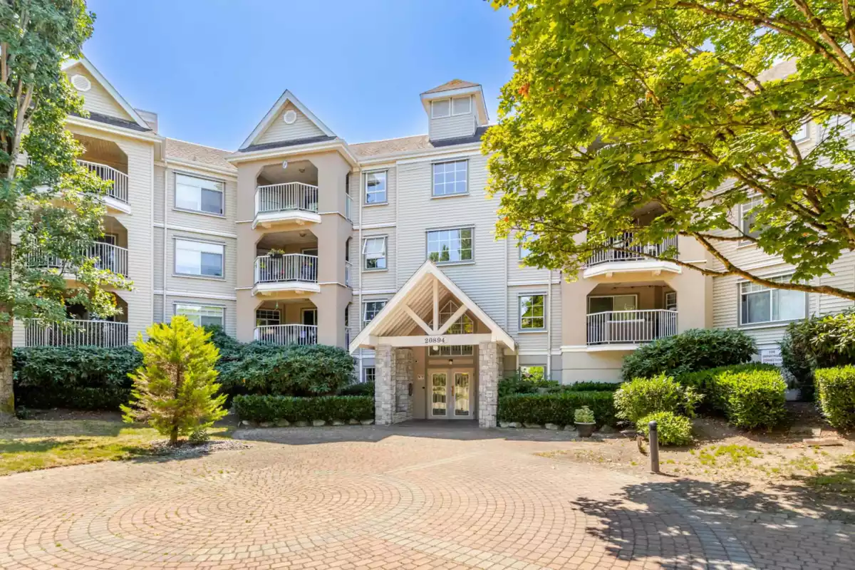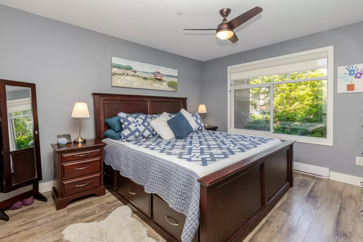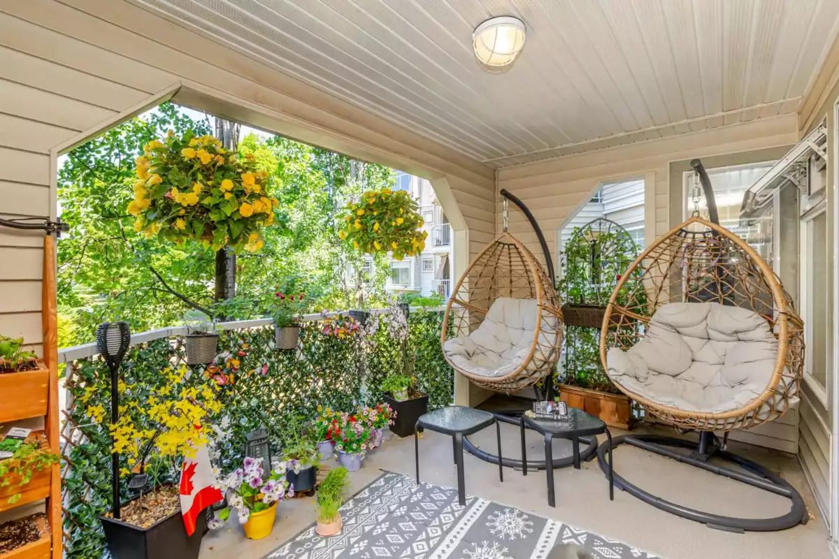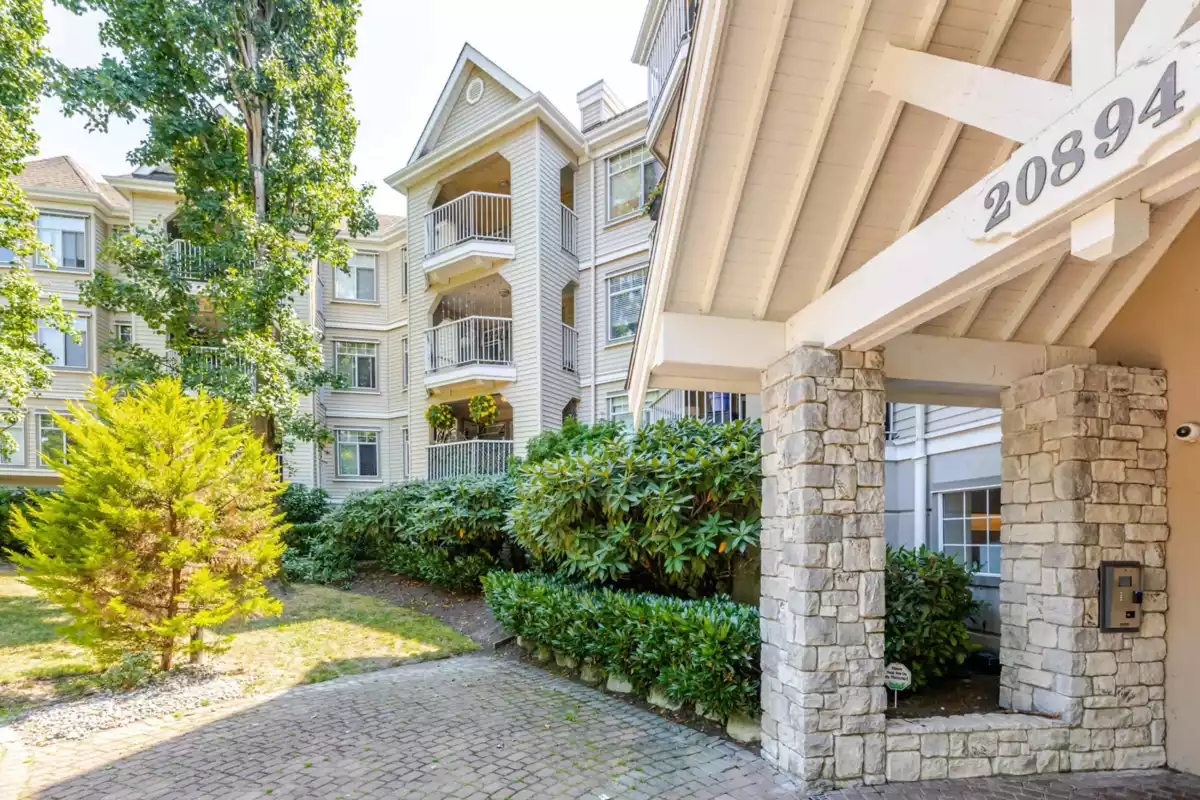 Welcome to Bayberry Lane! Nestled in a quiet Langley City neighbourhood walk to shops, amenities & close to several parks & walking trails. Elevated above ground condo with over 1000 sq ft of living space with Primary & 2nd bed & bath at opposite ends for total privacy. Primary easily fits a king bed, has his/hers walk through closets & ensuite with DBL shower. Totally renovated with a showstopper kitchen featuring S/S appliances, elegant 2 tone shaker cabinets, tons of quartz counters including huge peninsula. Kitchen extends to the large laundry with additional cabinets & side by side modern washer/dryer. Open plan dining & living room with cozy gas fireplace & access to the large balcony, perfect for entertaining, overlooking the courtyard & water feature. Pet friendly for dogs & cats.