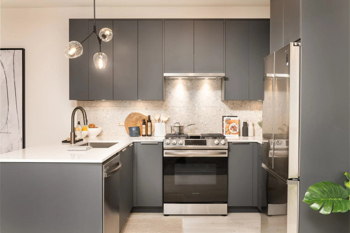 Welcome to the Hive2 built by award winner Apcon Group. Located in Willoughby Town Centre steps a-y from restaurants & shopping. This brand new, move in ready, large, 2 bedroom home is North facing, built with high quality materials and mod.ern design touches. Wide plank lamiJ:late flooring in living room and kitchen and tile in bath.rooms. ContE!IJ!POrary roller blinds filter natural light. Full size front stacking in-suite laundry, functional kitchen with full size stainless steel fridge, gas range and dishwasher. Beautiful bathroom with stylish hardware and undermount sink. Shared amenities with fitness center, party room, co-working space and outdoor BBQ area. Full 2/5/10 year new home warranty. 2 parking, 1 storage locker &1 bike locker included.