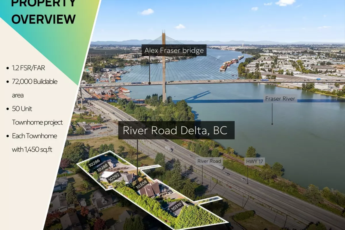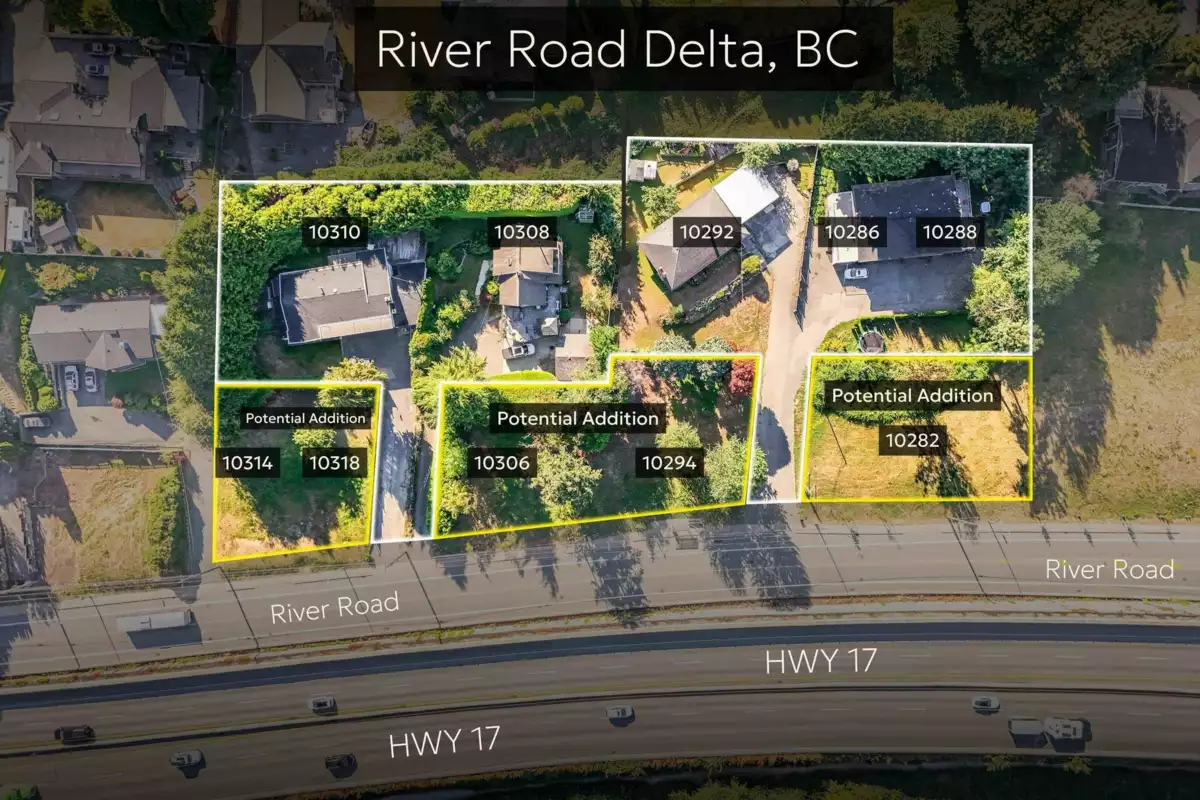 Excellent development opportunity in North Delta! Three adjacent properties on River Road total approx. 1.37 acres with potential rezoning to support ~50 townhomes (subject to City approval). Tentative rental income of ~$25,000/month helps offset holding costs. Future assembly with front lots could expand the site to ~2 acres for 75+ townhomes. Preliminary drawings and reports are available for qualified buyers. Prime location near the Fraser River with access to highways 91, 99, 10 & 17, transit, schools, shopping, and recreation. Buyers to verify with City of Delta. Showings by appointment only. Increased density is encouraged here to address housing needs—an attractive opportunity for developers and investors. Amenities include parks, community centres, dining, and employment hubs near.