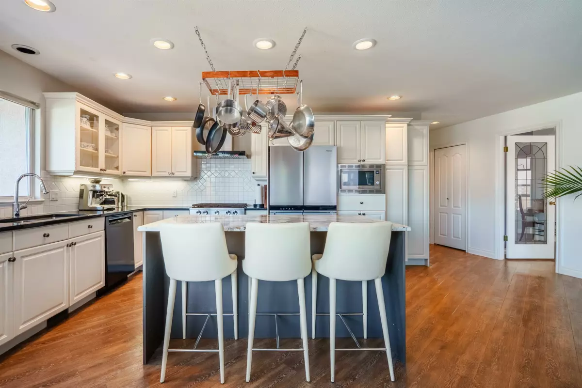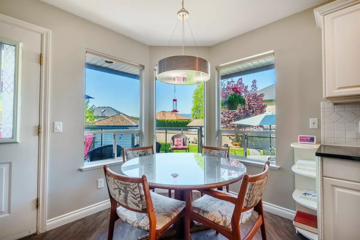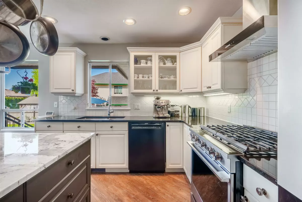 Welcome to this beautifully maintained home in the highly sought-after Fraser Heights community! Nestled on a generous lot with stunning mountain views, this property offers the perfect blend of comfort, elegance, and convenience. Just a short walk to one of the area's most prestigious private school, and easy highway access, the location is ideal for families. Pride of ownership shines throughout, with numerous recent upgrades including a NEW ROOF, high-efficiency furnace with A/C and luxurious vinyl plank flooring on the main. Cozy up with any of the three gas fireplaces in the cooler months, and enjoy summer evenings with a natural gas BBQ hookup on the patio. The meticulously landscaped yard features an in-ground irrigation system with metered water for easy maintenance.