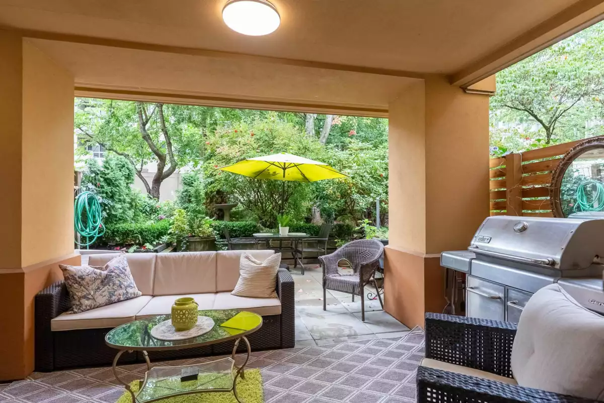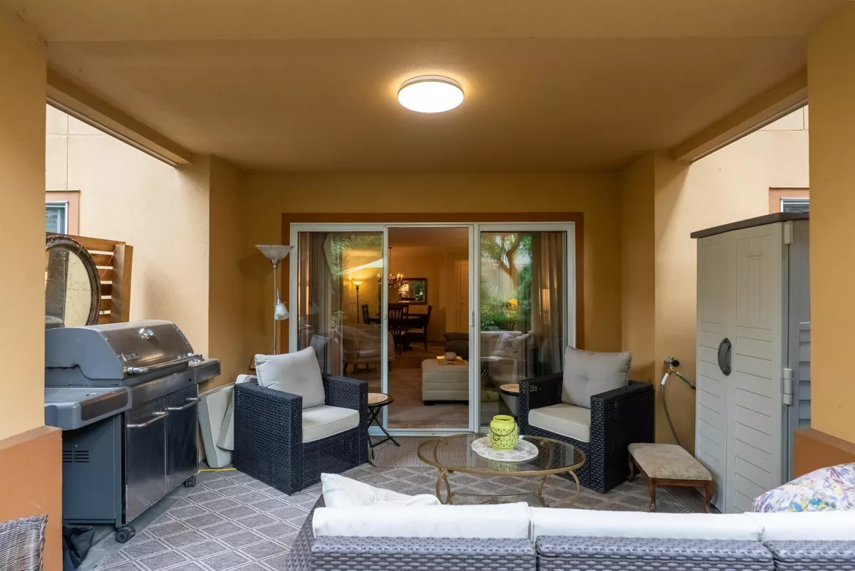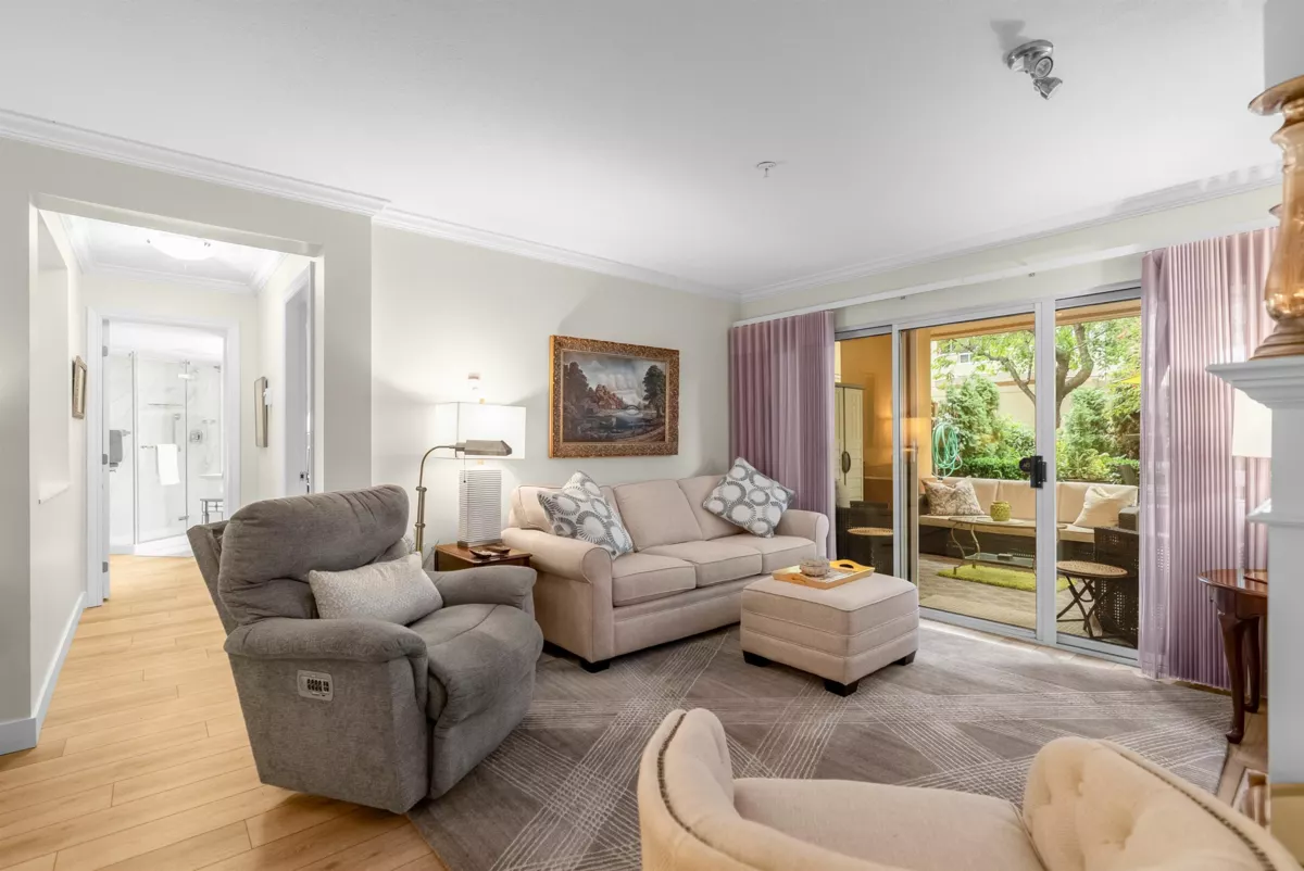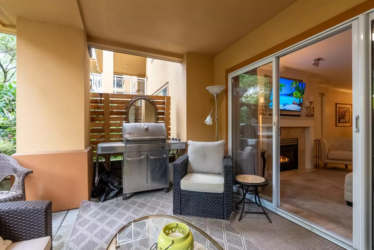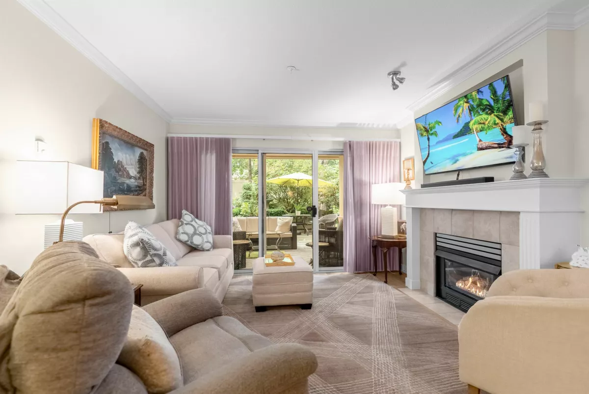 Discover this spacious, beautifully updated ground-level home in the highly desirable Villa Pacific community. Bright and inviting, it features large windows, elegant vinyl flooring, a cozy gas fireplace, and a modern kitchen with high-end LG appliances and refreshed bathrooms. The smart floor plan offers two well-separated bedrooms: a king-sized primary suite with refined ensuite and a generous queen-sized second bedroom. Step outside to your expansive, private covered patio, perfect for year-round enjoyment. The proactive strata has completed major upgrades and maintains a robust $681K contingency fund. Enjoy premium amenities—fitness centre, workshop, library, lounge, bike storage, and car wash—plus secure parking and storage locker. Set in a peaceful, walkable area near Semiahmoo Trail