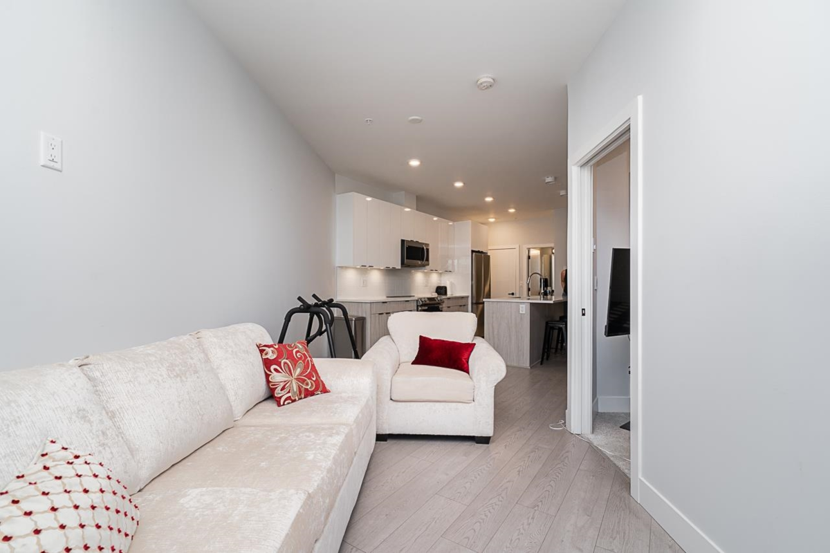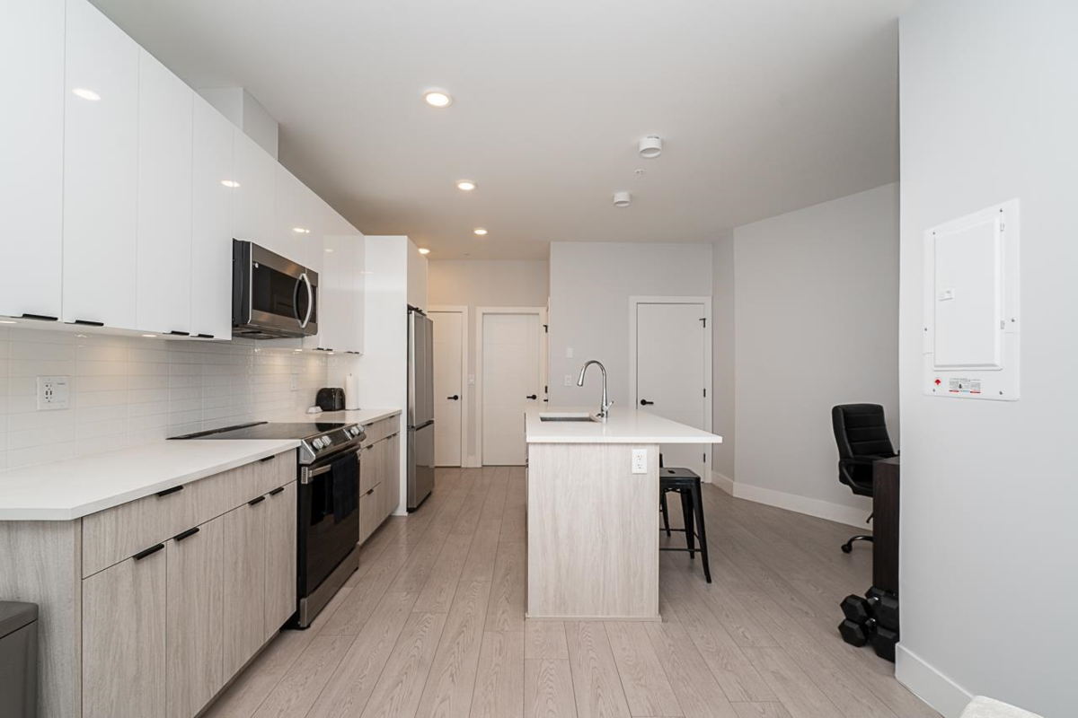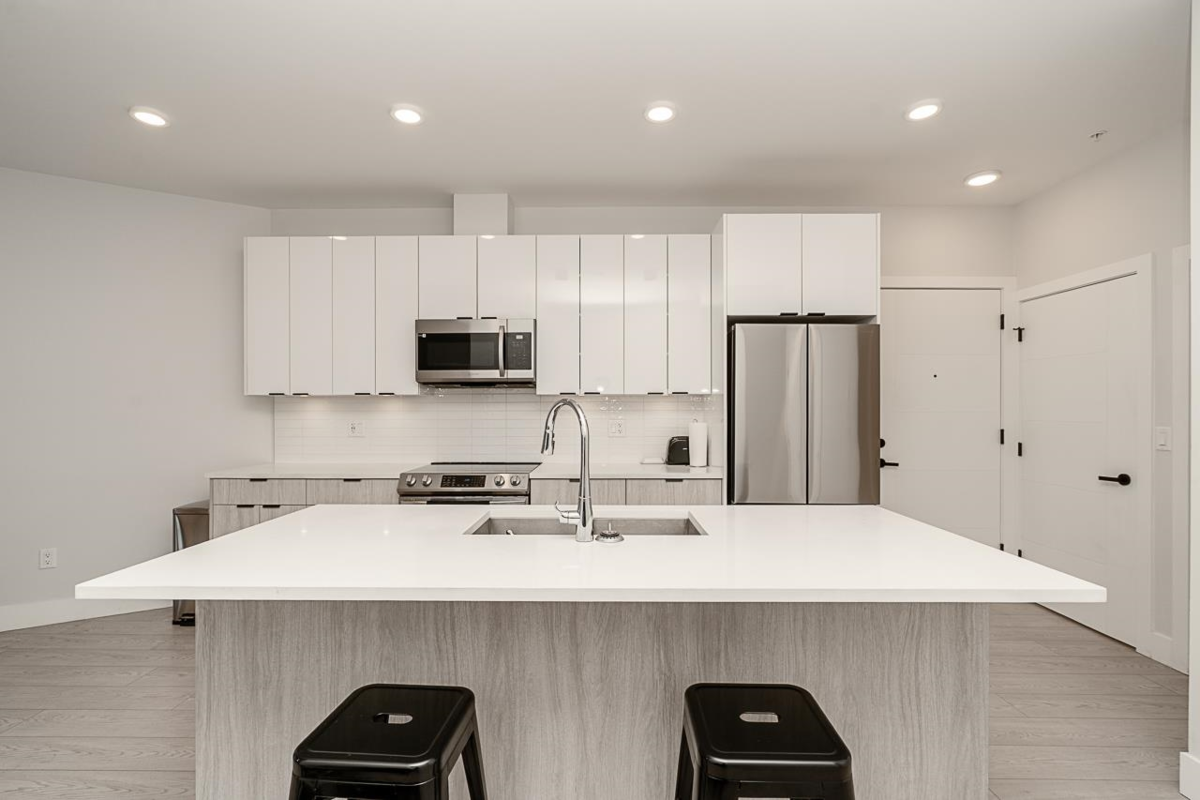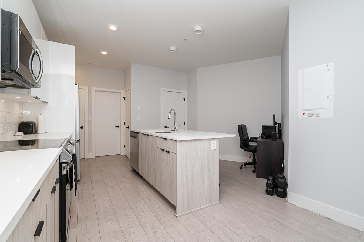 Invest in the future! This immaculate 1 bed, 1 bath home at Genesis offers great amenities and proximity to everything! With Skytrain on the way to the area, this home offers a prime location for commuters. Inside you'll find a roomy kitchen, tastefully designed with tons of storage and S/S appliances, including a large island with eating bar. Nicely appointed bath, a nook for dining or desk and bedroom with good sized closet. Building amenities include a gym, amenity room, putting green and garden area. Close to absolutely everything....transit, breweries, shops and restaurants. City living at its best.