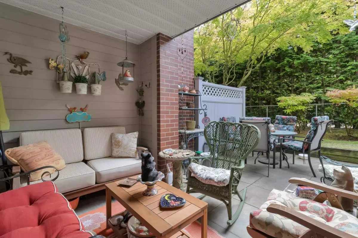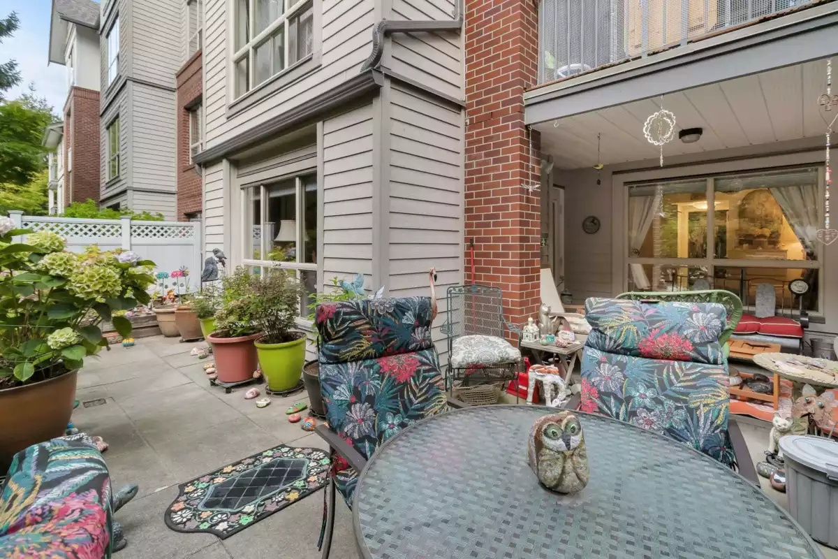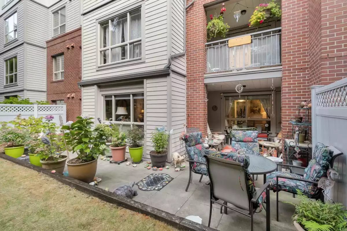 Rarely available 1st floor condo in White Rock with an extra-large patio perfect for gardening, kids, or even a sandbox. Gas is included in the maintenance fee and heats the entire home (home can share low hydro bills). This well-maintained building has a new roof, boiler, and gutters, so no worries about surprise levies. Enjoy 2 parking stalls + storage, with public transit just steps away and Semiahmoo Trail at the end of the cul-de-sac. Walking distance to shops, restaurants, and the beach-- ideal for daily convenience. This property is also pet friendly for your furry friends!