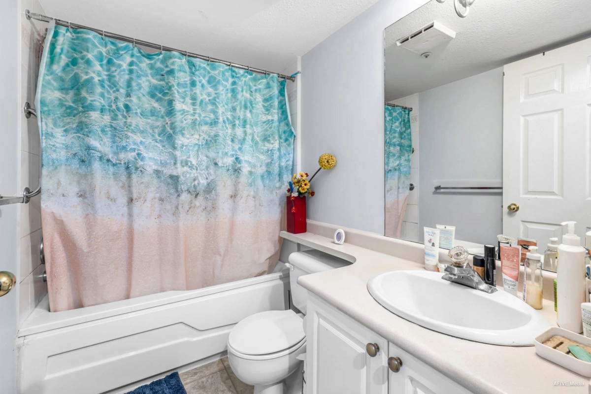 WELCOME to Cardinal Court! BIG 01 BED, 02 BATH unit with 01 under ground parking, Bedroom with luxury ensuite, dining area, beautiful bright corner unit with outdoor area. BONUS : Gas fireplace and Heat included in strata fees. EXCELLENT location, walk to major shopping like Superstore, Save On Foods, Restaurants, transportation and recreation center (new wave pool), Library, parks and much more.