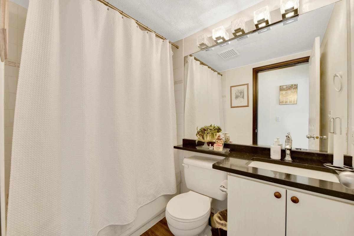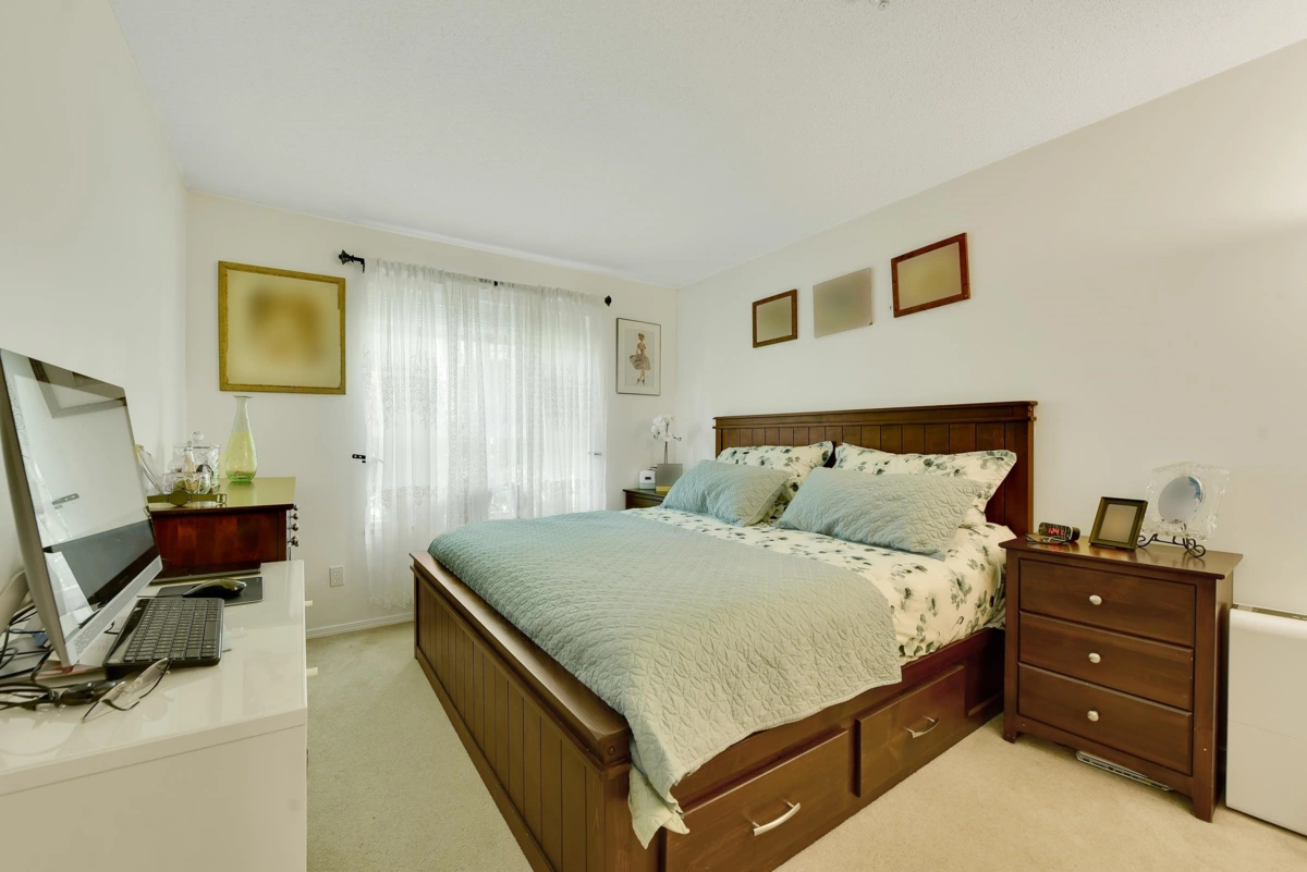 This spacious 2-bedroom, 2-bathroom home boasts a private corner location with a large patio that overlooks tranquil green space. Recently updated, the unit features laminated flooring, and modern quartz countertops in the kitchen and bathrooms. The thoughtfully designed layout offers bedrooms on opposite sides for added privacy. The large master bedroom enjoys peaceful views of the greenspace and includes a stylish ensuite. Located in the well-managed Somerset complex, this home is just steps away from Guildford Town Centre, transit, schools, easy access to Hwy 1 and more. Includes 2 secure underground parking spaces and 1 storage locker.