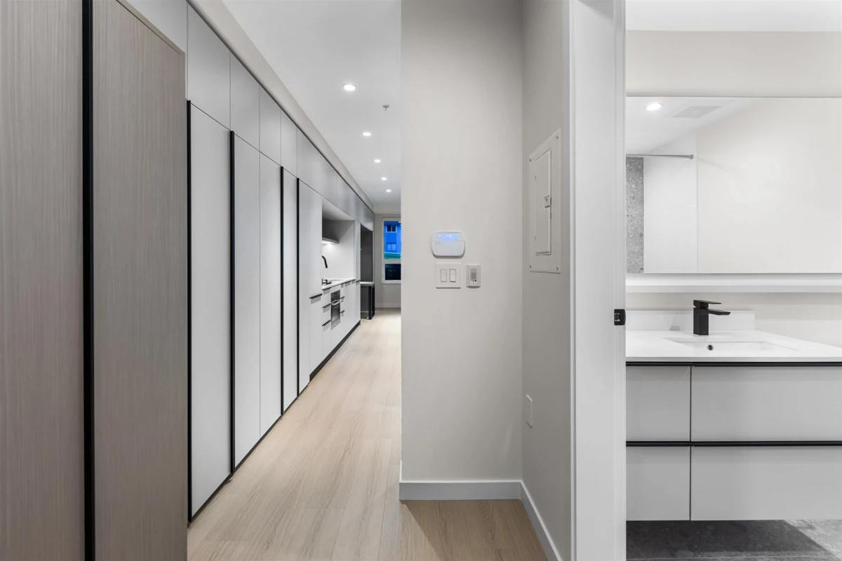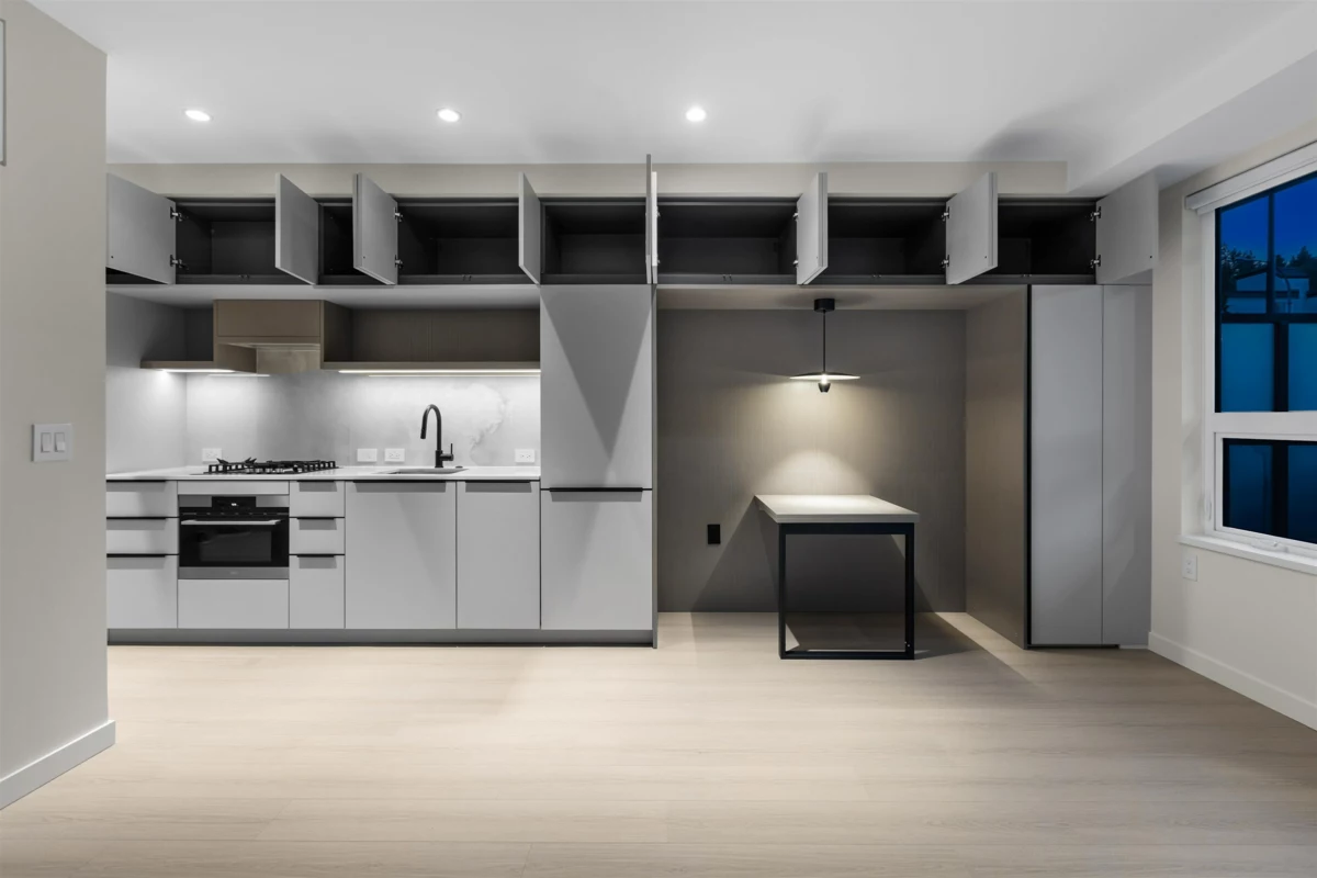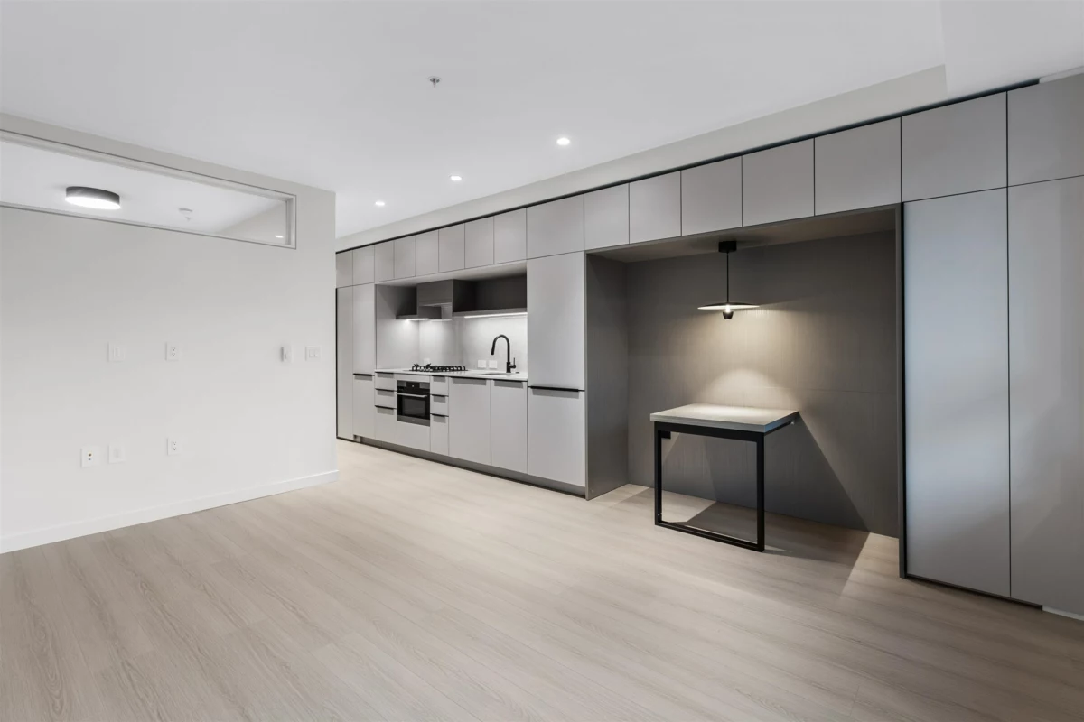 MOVE-IN READY! Discover a new standard of living at Hue by Marcon. This brand-new ground-level one-bedroom home is a serene retreat, where modern sophistication meets the calming beauty of nature. Sunlight pours through floor-to-ceiling windows, highlighting exquisite Italian cabinetry and premium finishes, including an integrated Liebherr fridge, Fulgor Milano dishwasher, and AEG gas cooktop. An oversized locker keeps your paddleboard and bike ready for weekend adventures. Indulge in elevated amenities-rooftop terrace with sweeping mountain and Inlet views, BBQ's, fitness centre, garden plots, co-working lounge, children's play area, dog wash station, EV-ready parking-all set within the vibrant heart of Port Moody Centre. 2-5-10 Warranty included.