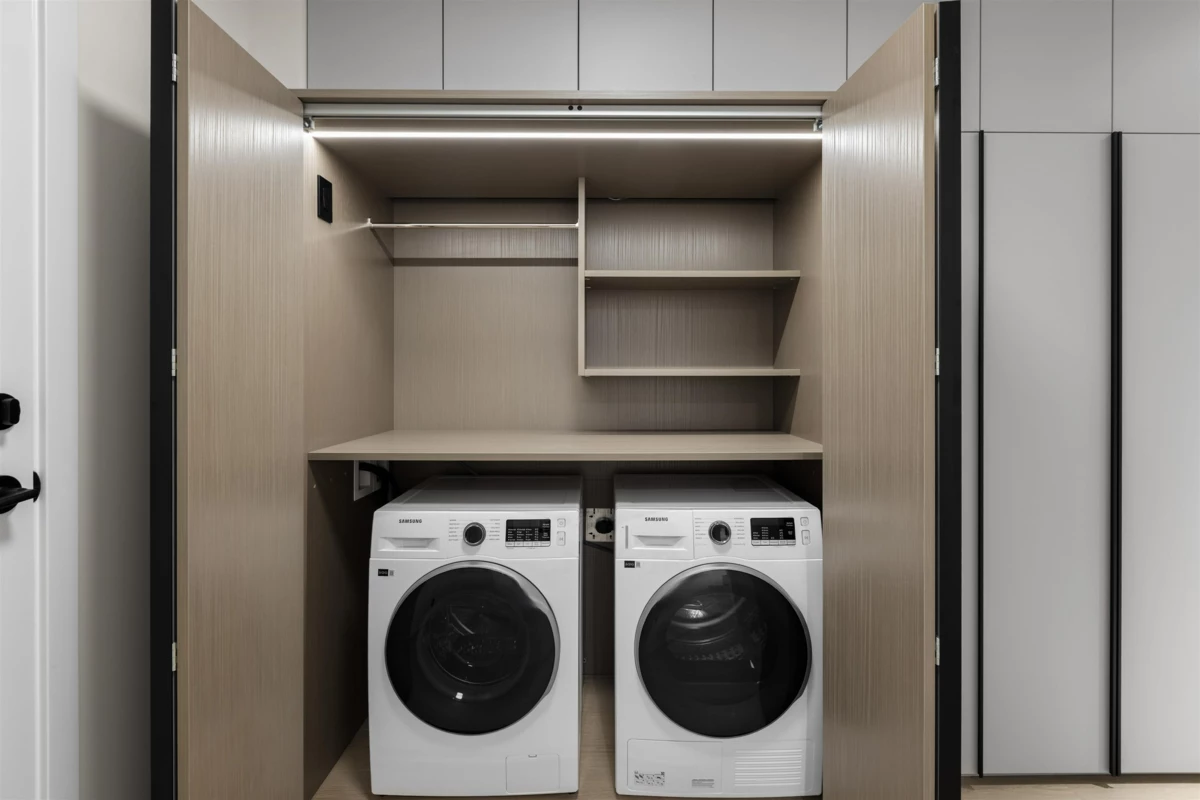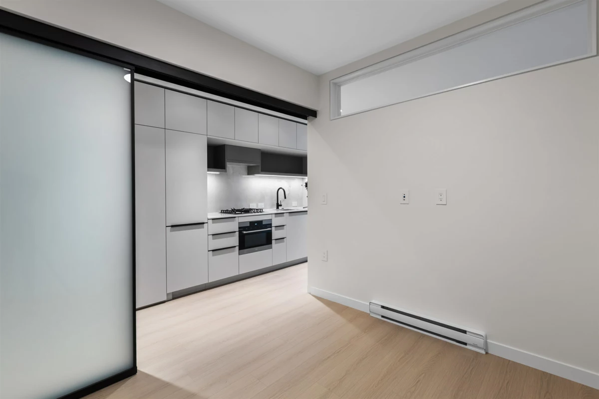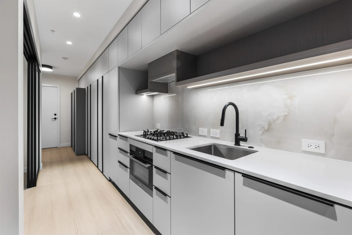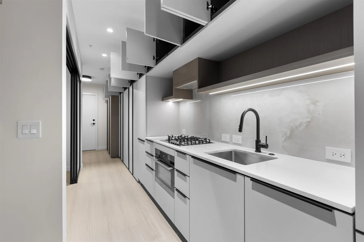 MOVE-IN READY! Discover a new standard of living at Hue by Marcon. This brand-new ground-level one-bedroom home is a serene retreat, where modern sophistication meets the calming beauty of nature. Sunlight pours through floor-to-ceiling windows, highlighting exquisite Italian cabinetry and premium finishes, including an integrated Liebherr fridge, Fulgor Milano dishwasher, and AEG gas cooktop. An oversized locker keeps your paddleboard and bike ready for weekend adventures. Indulge in elevated amenities-rooftop terrace with sweeping mountain and Inlet views, BBQ's, fitness centre, garden plots, co-working lounge, children's play area, dog wash station, EV-ready parking-all set within the vibrant heart of Port Moody Centre. 2-5-10 Warranty included.